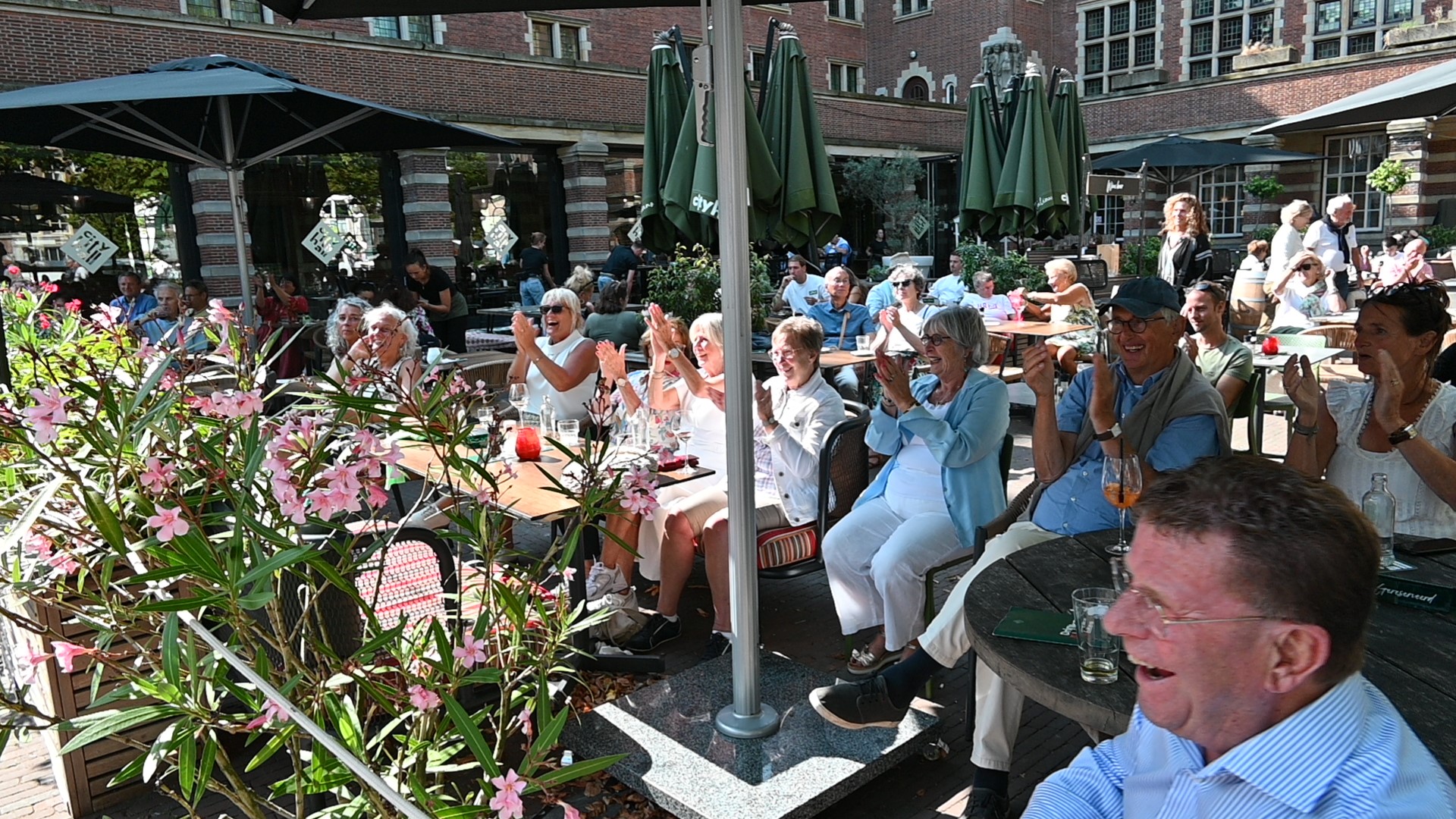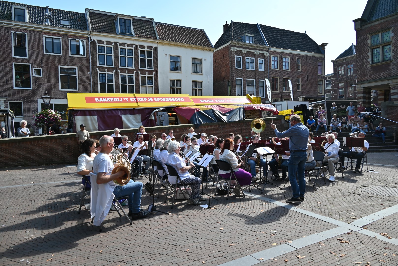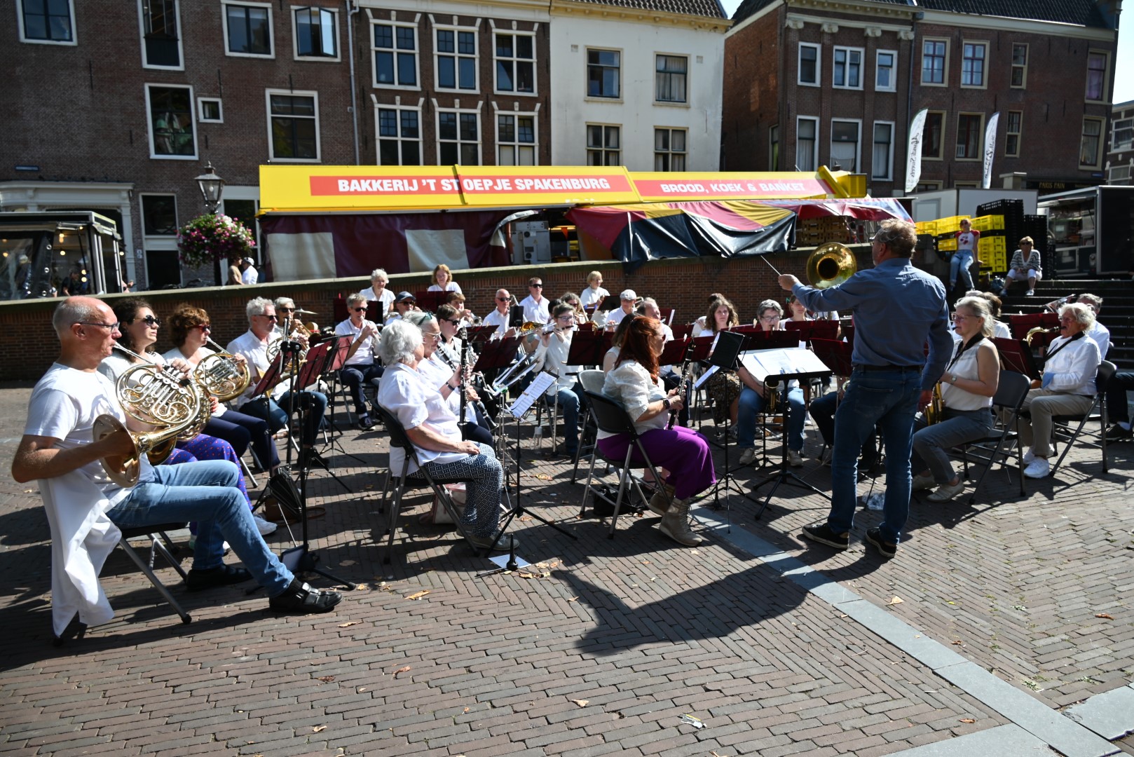 Na het miniconcert ging de harmonie aan boord van twee sloepen voor een rondvaart door Leiden en een lunch in de Burcht.