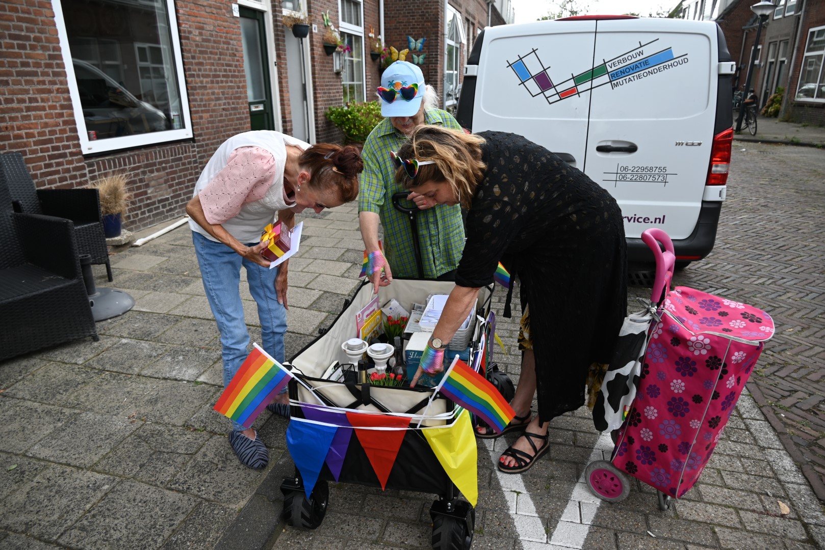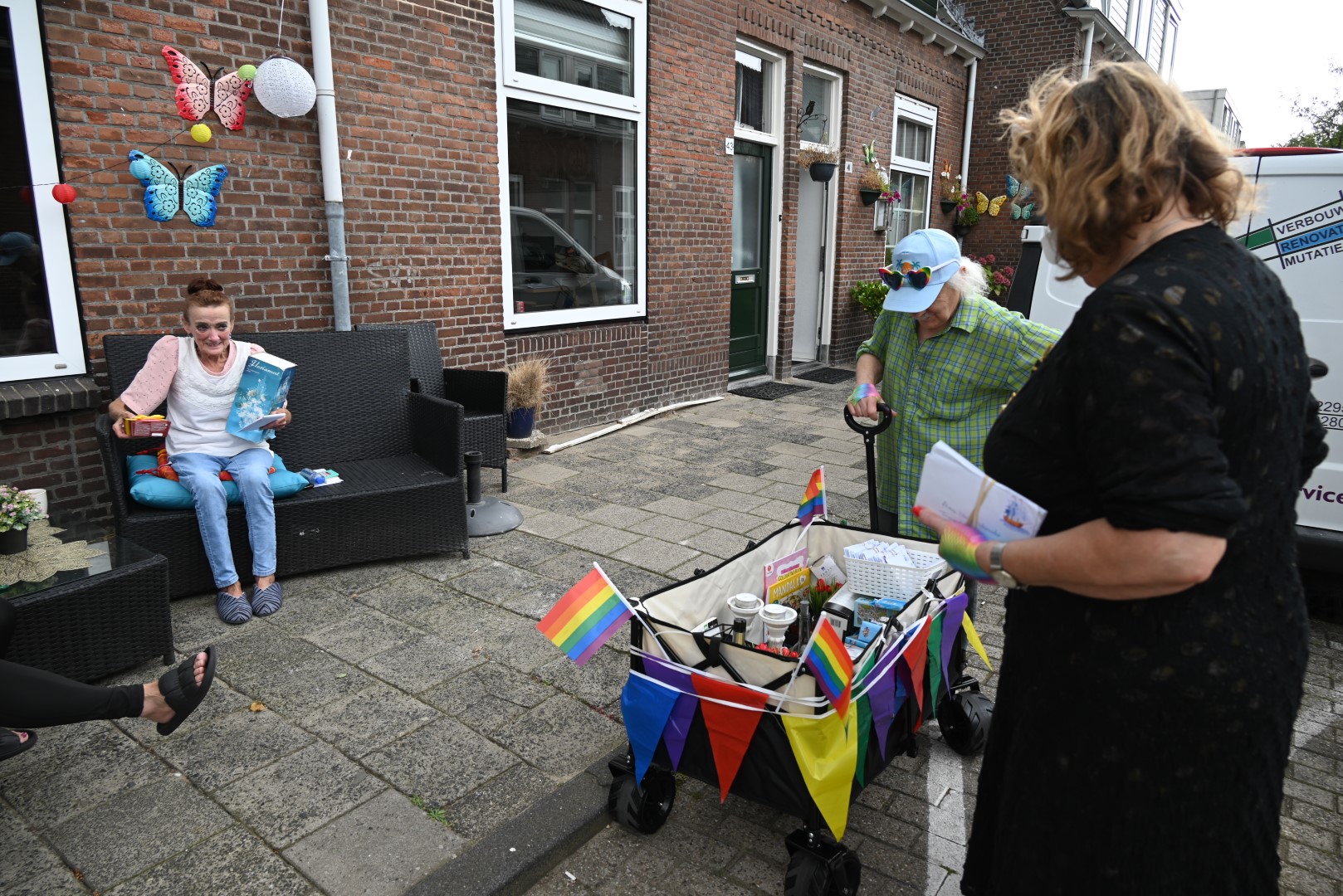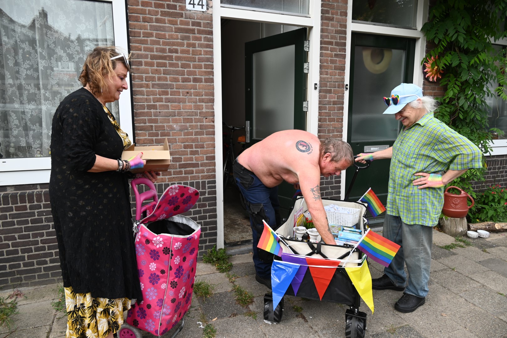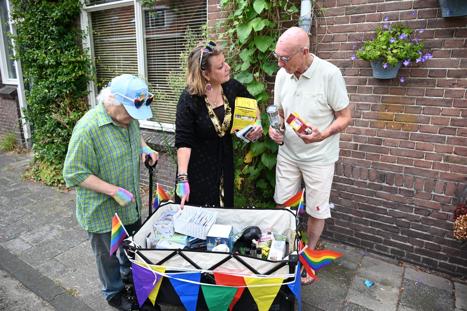 De bewonerscommissie heeft ook een vaste sponsor. “Dat is een voormalige bewoner van de wijk die al jaren anoniem wil blijven. Hij heeft ons deze mooie nieuwe bolderkar gegeven. Iemand anders had op social media gelezen over eerdere acties van ons en wilde graag doosjes bonbons aanbieden en we hadden ook nog wat cadeautjes liggen. Daarom doen we nu een extra ronde. Dit weekend hebben we de kaarten geschreven en nu gaan we de wijk in.” Jo Verhoeven voegt er nog even nadrukkelijk aan toe: “Je mag gerust schrijven dat we niet vanuit subsidie geven, want dat hebben we niet. We doen het vanuit ons hart.”