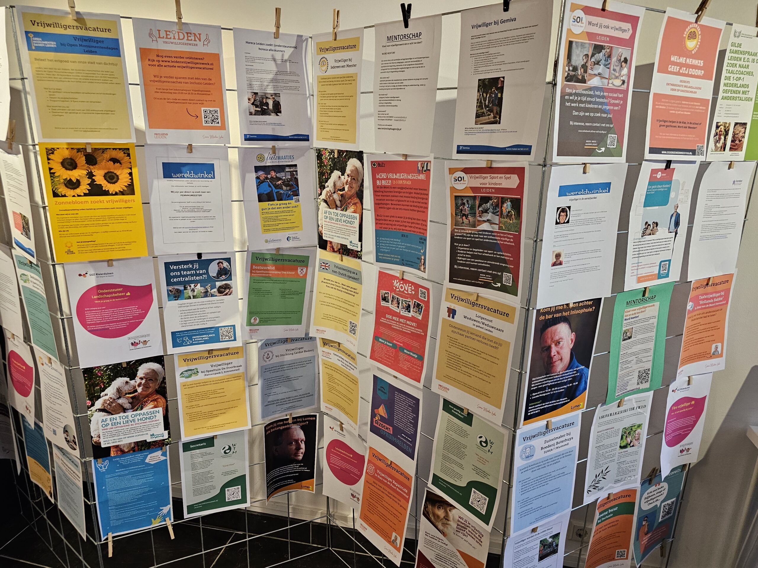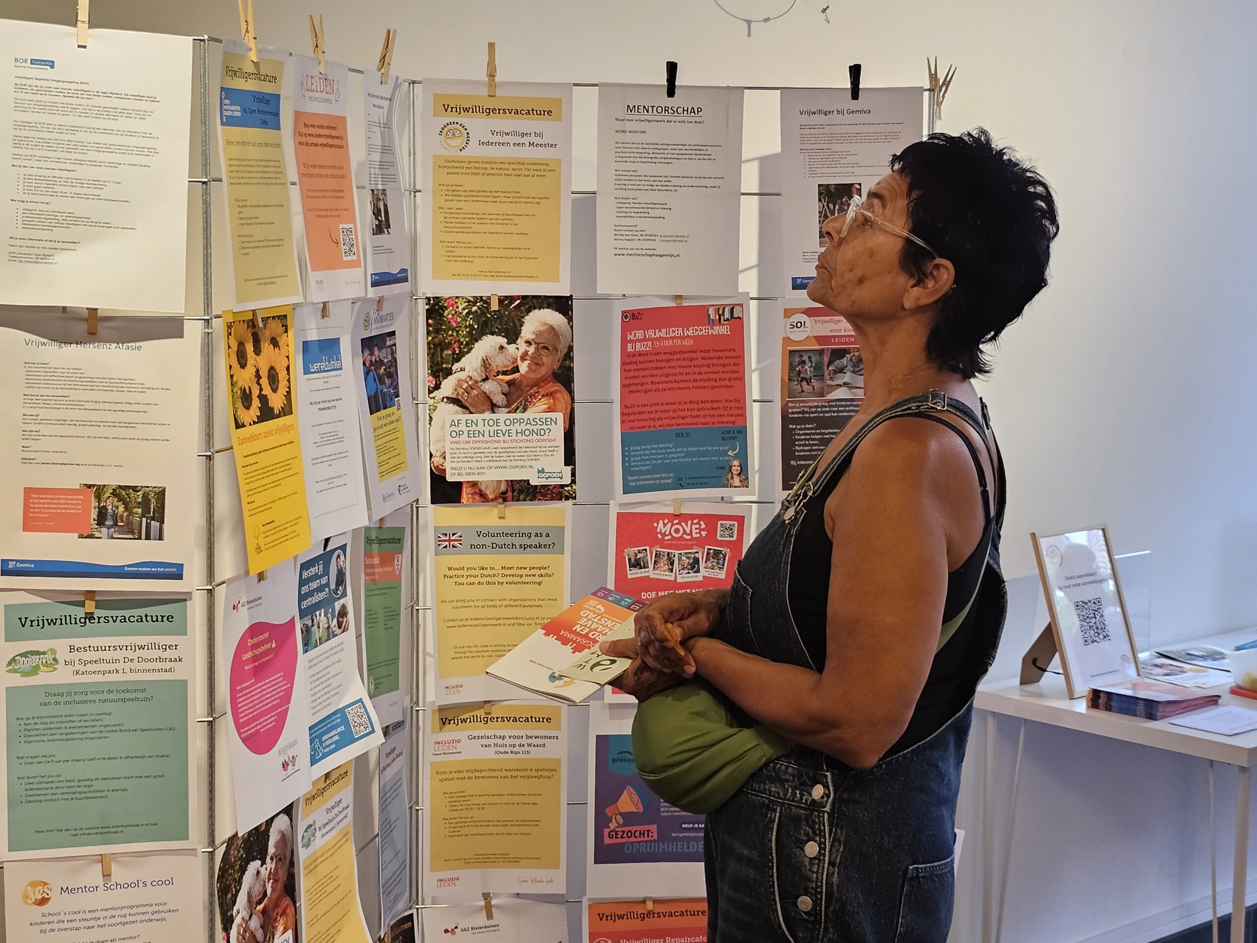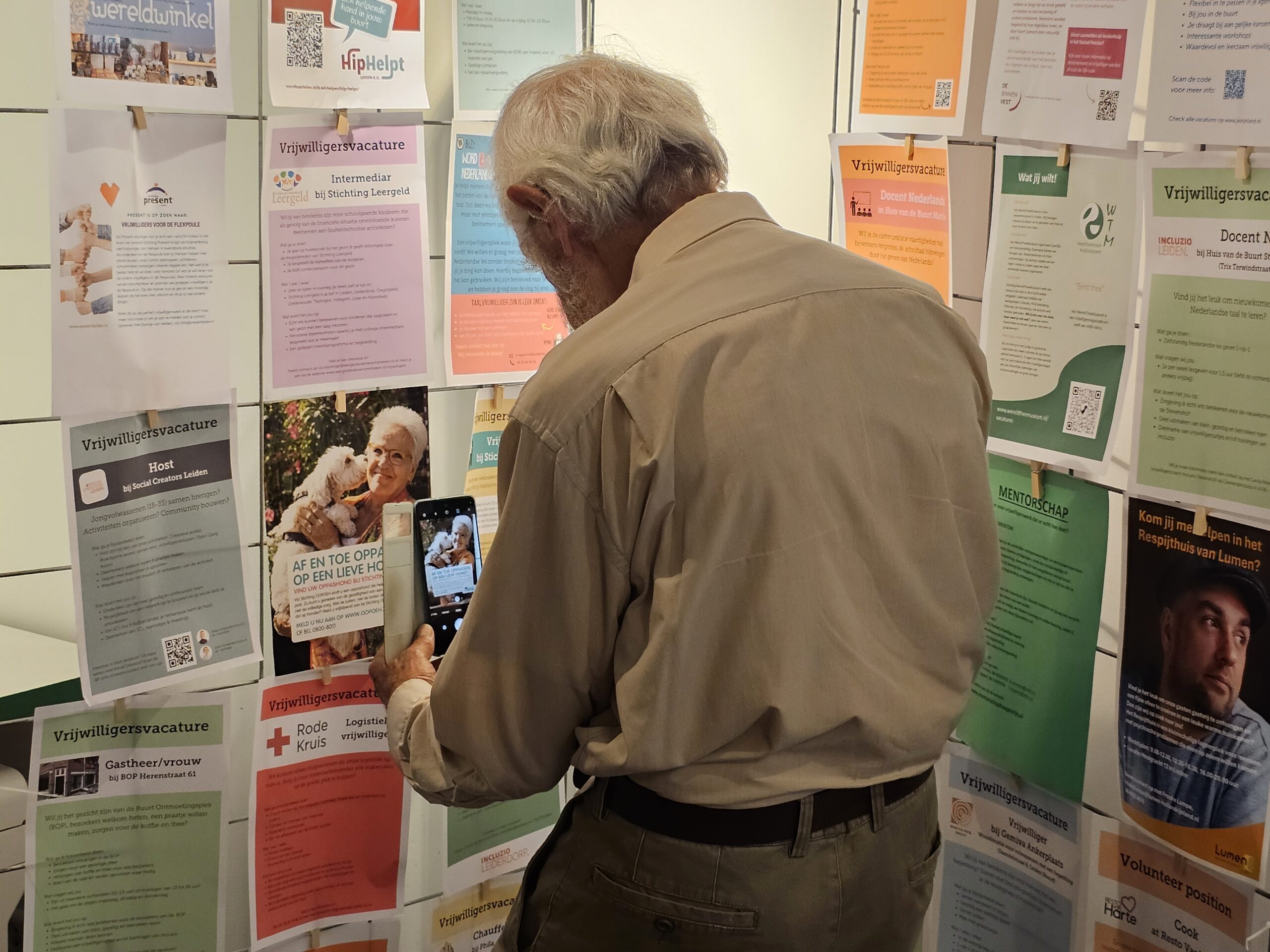 De hele maand september is de Stadskamer elke woensdag- en zaterdagmiddag tussen 13.00 en 17.00 uur het domein van de vrijwilligerscoaches van Incluzio die bezoekers wegwijs kunnen maken. “Tijd voor iets nieuws”, is de slogan die we aan deze maand hebben gegeven”, vertelt Oostdam. De vacatures hangen niet alleen aan de muur van de Stadskamer, maar staan ook op de website www.leidenvrijwilligerswerk.nl van Incluzio.
