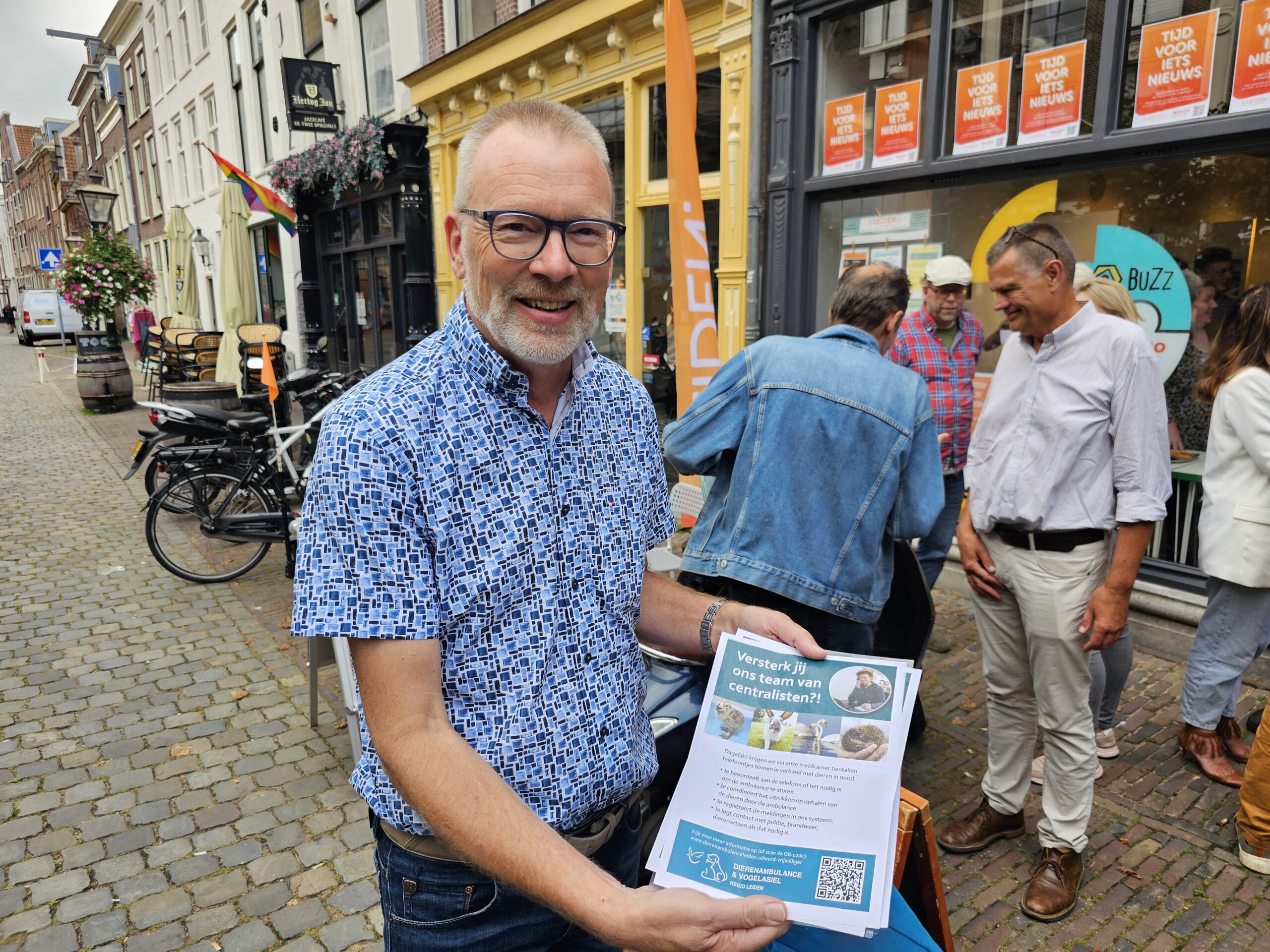 Chris de Waard ging naar de aftrap van de ‘Maand van de Vrijwilliger’ en sprak er achtereenvolgens met wethouder Terpstra, Lisan Oostdam van Incluzio, Hans Tebra van de Dierenambulance en Vogelasiel Regio Leiden en enkele potentiële vrijwilligers.