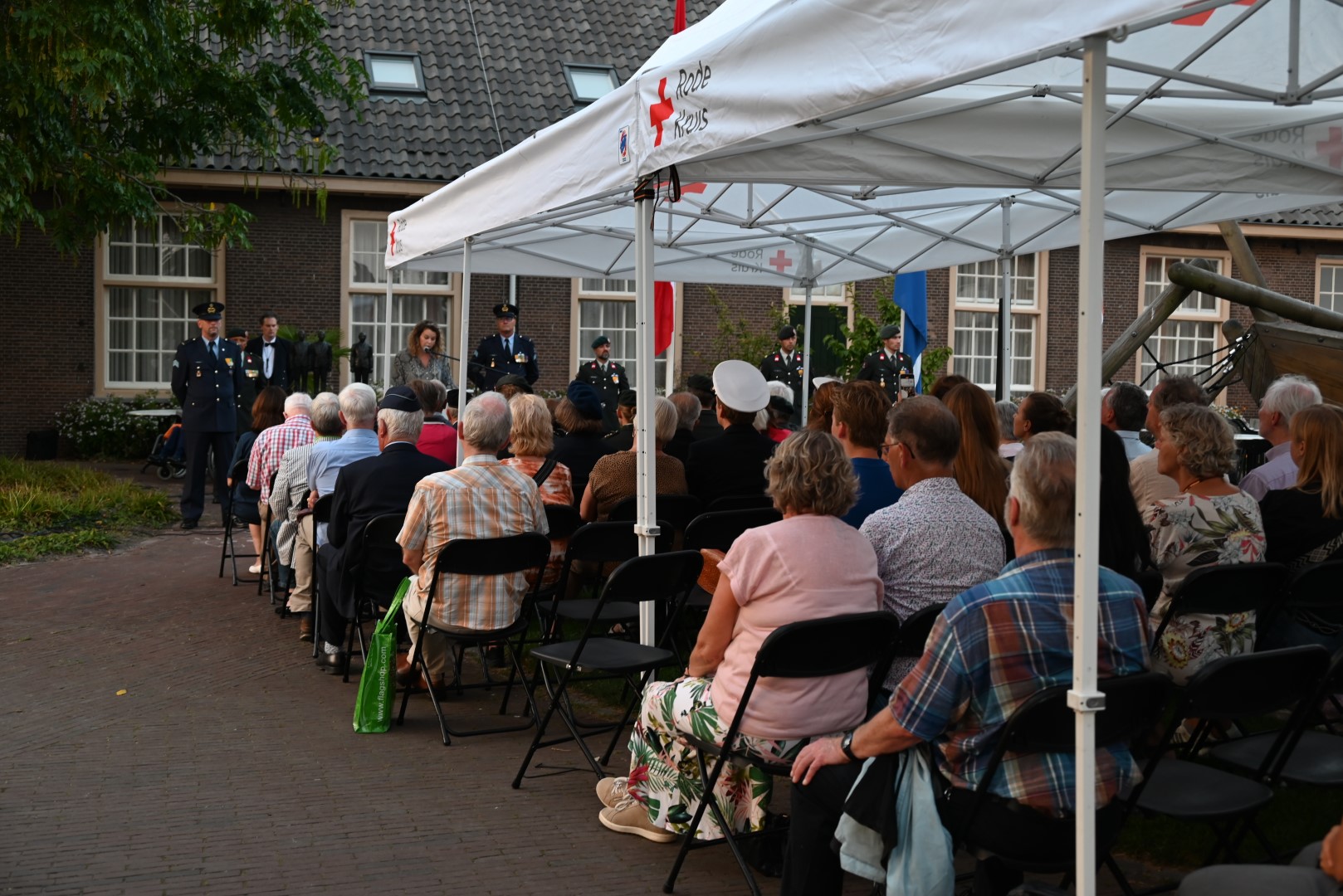 Bij het monument werd het gedicht “Er leven haast geen mensen meer” van Wim Kan voorgedragen. Vervolgens werden de namen van de gevallenen voorgelezen, waarna burgemeester Van der Velden de eerste krans legde. Na een minuut stilte en het Wilhelmus legden ook andere organisaties en instanties kransen. De herdenking werd afgesloten met een kort samenzijn in museumcafé Abel.