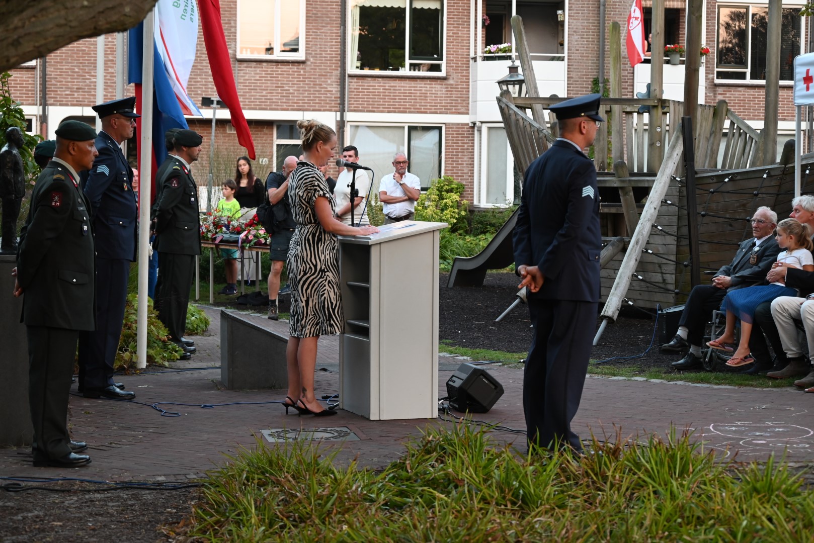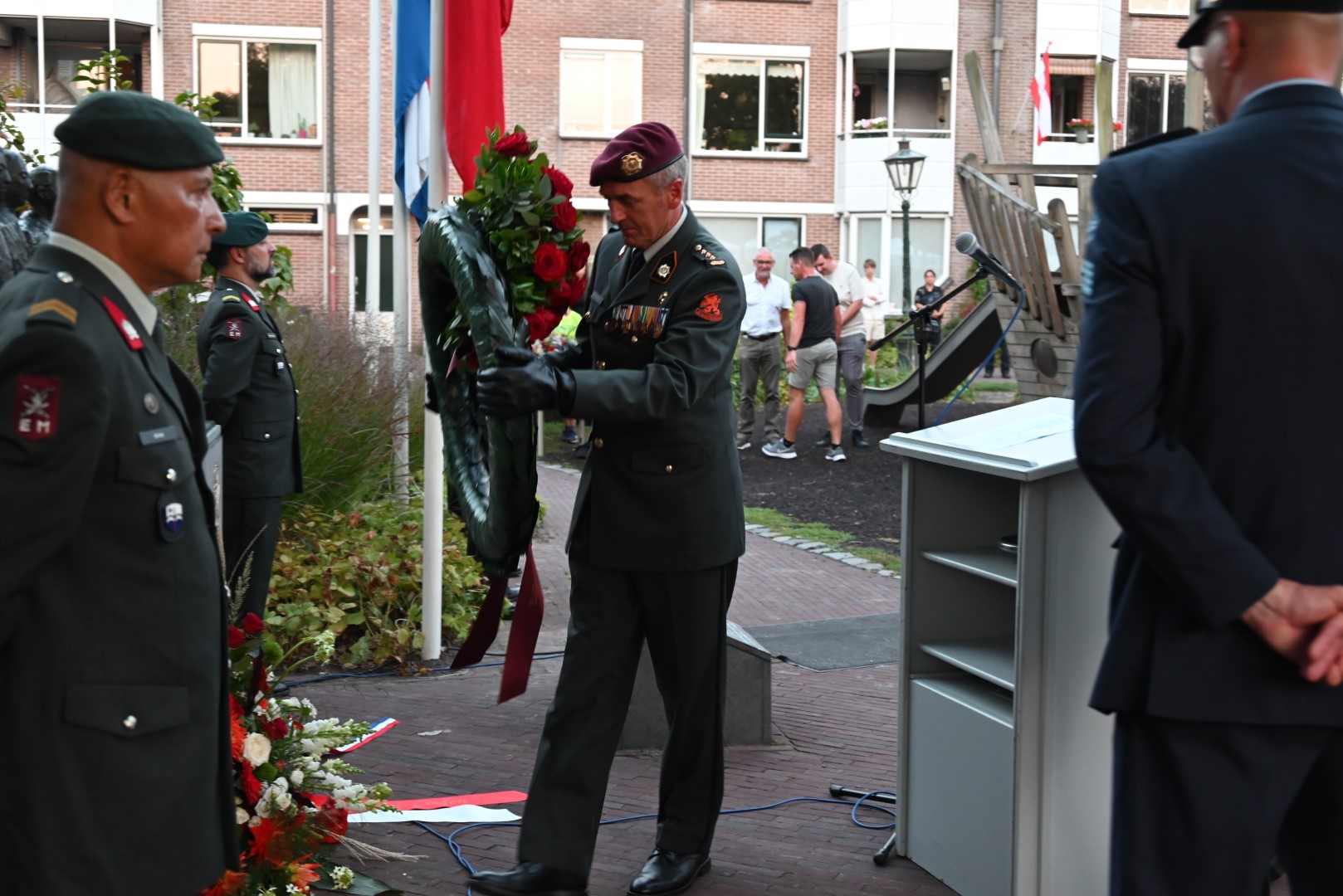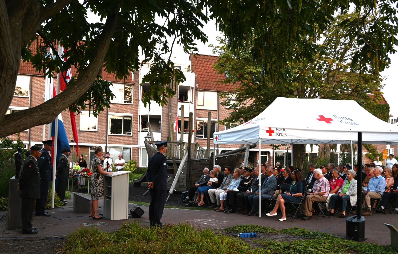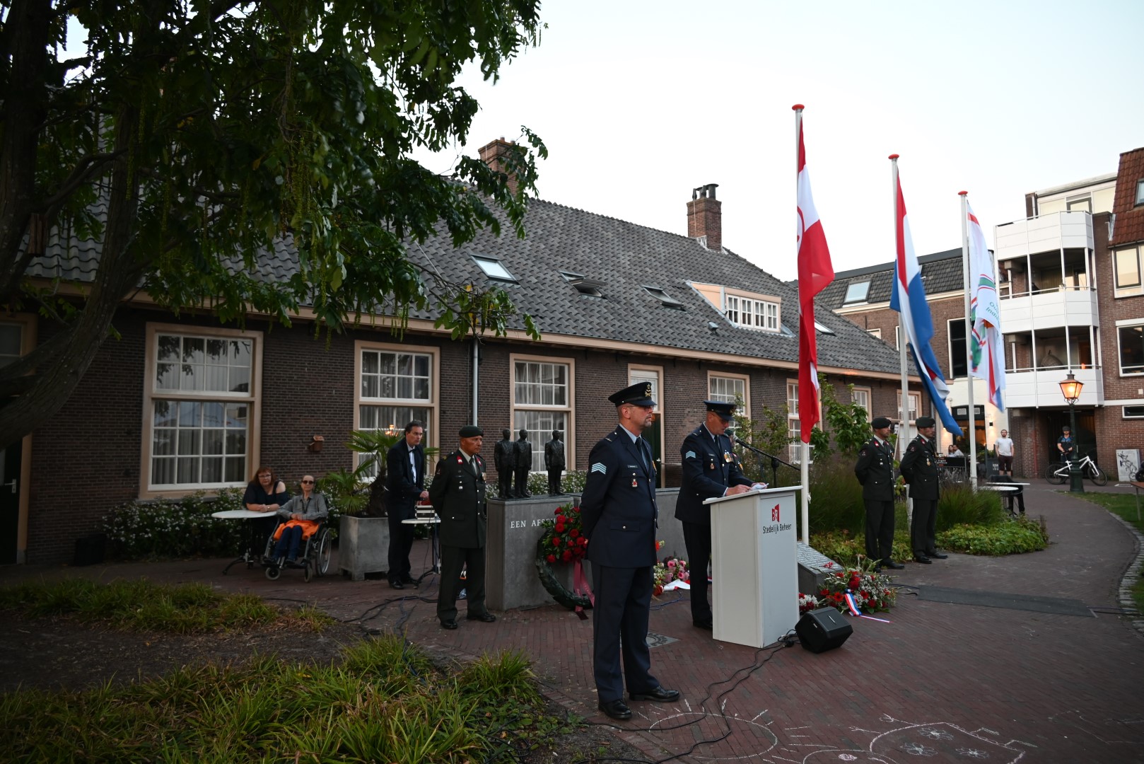 De plechtigheid bij het monument werd voorafgegaan door een herdenking in het Wereldmuseum. De Herdenkingsrede werd uitgesproken door militair historicus Thijs Brocades Zaalberg. K&G verzorgde de muzikale omlijsting van de bijeenkomst op de plek waar ooit de Morspoortkazerne stond.