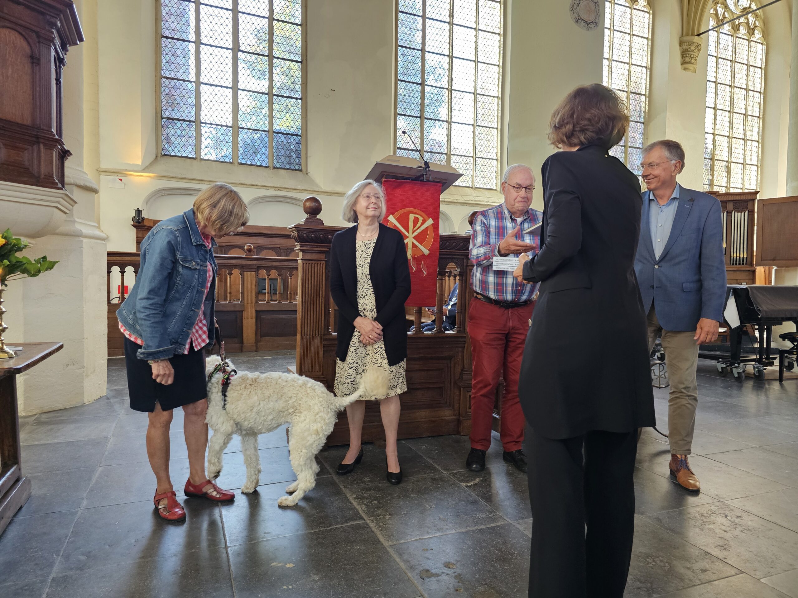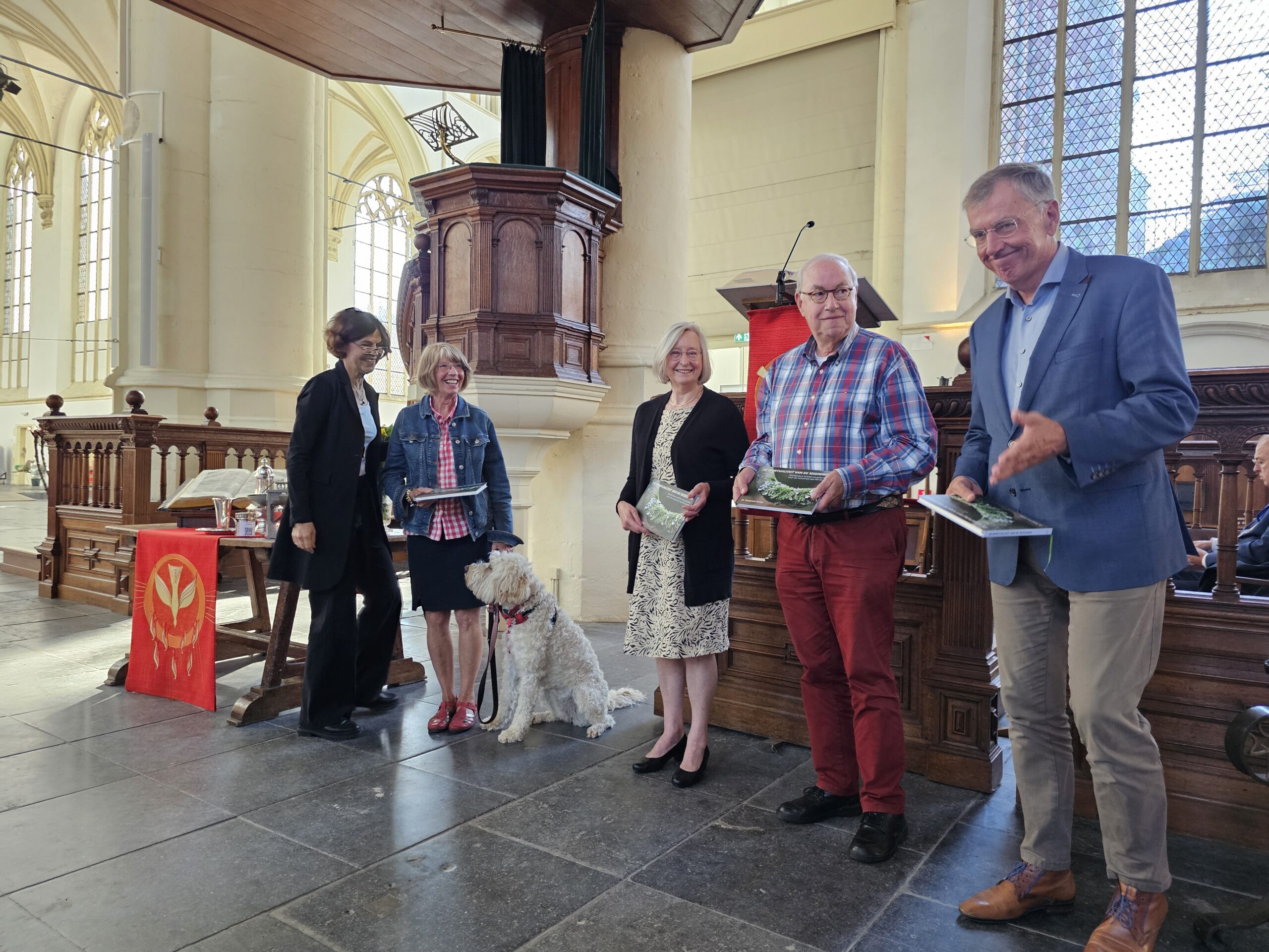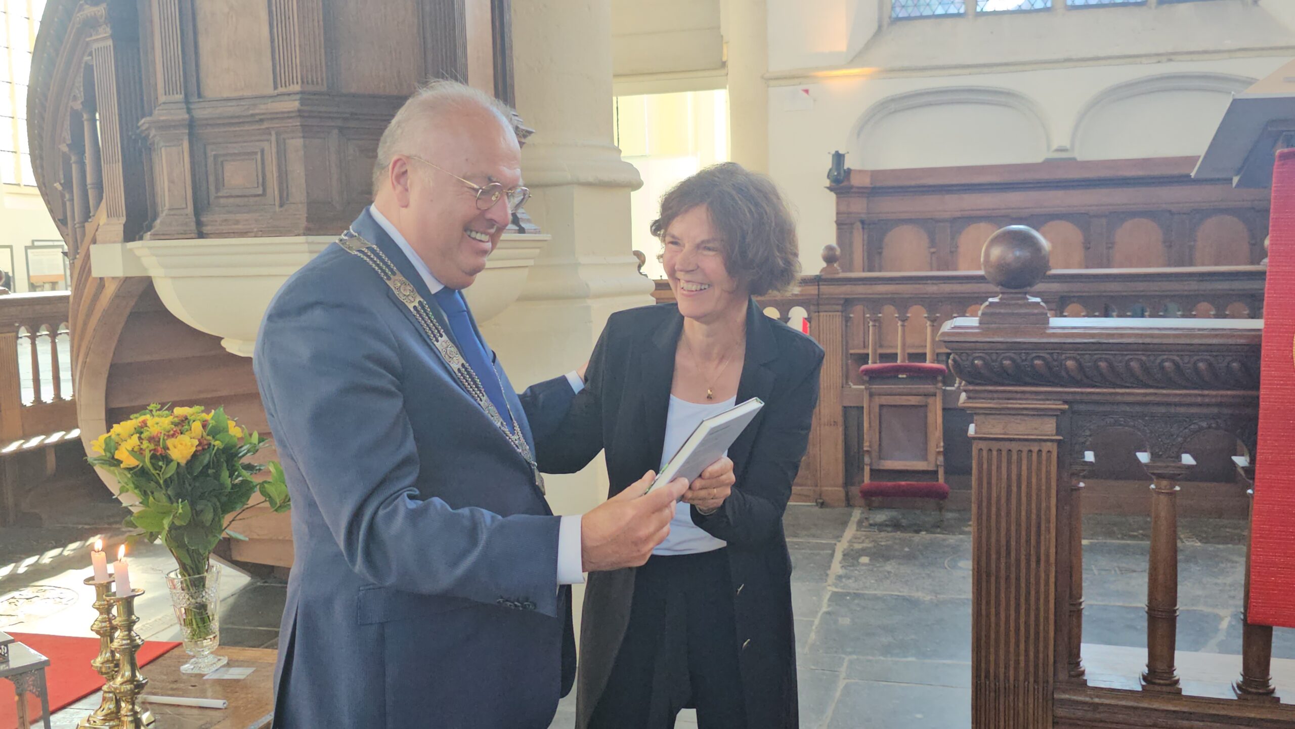 Direct na de dienst overhandigde ze het eerste exemplaar aan de Leidse burgemeester Peter van der Velden. “Het is een voluit Leids gebedenboek. Alle teksten die erin staan, schreef Margreet Klokke met het oog op kerkdiensten in de Hooglandse Kerk. Iedereen die aan de bundel meewerkte deed dit ‘pro deo’, wat betekent dat de baten voor de Hooglandse Kerk zijn.