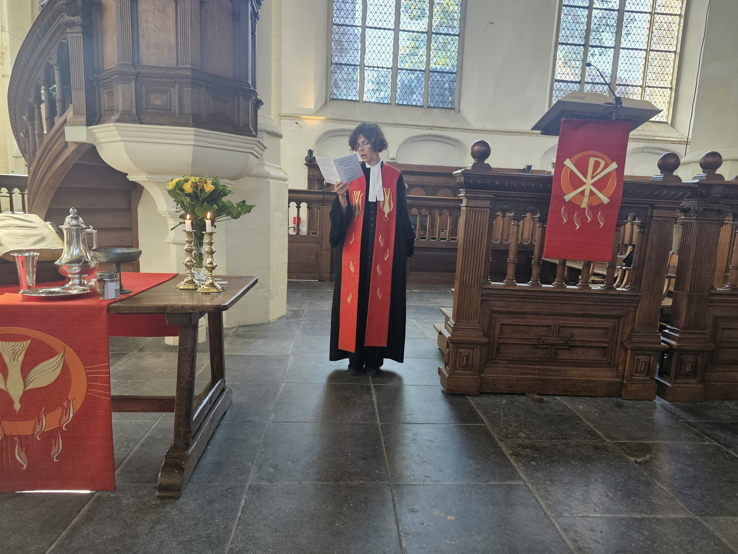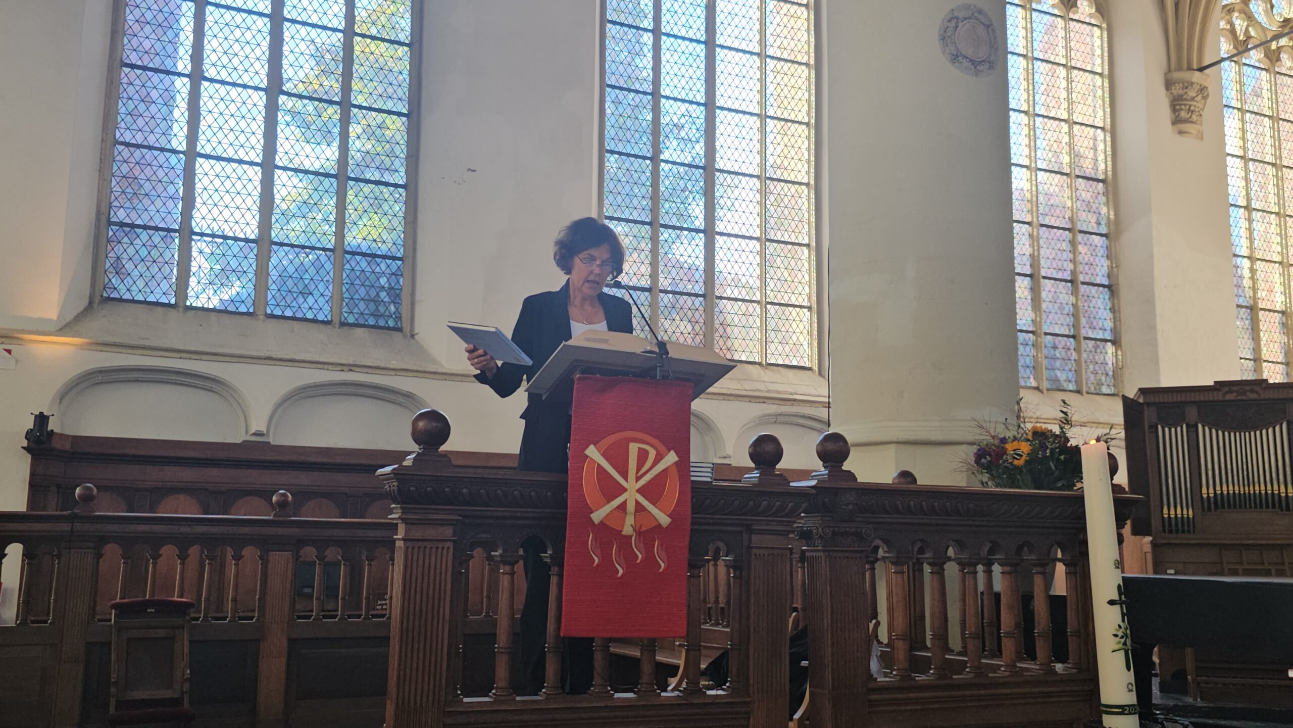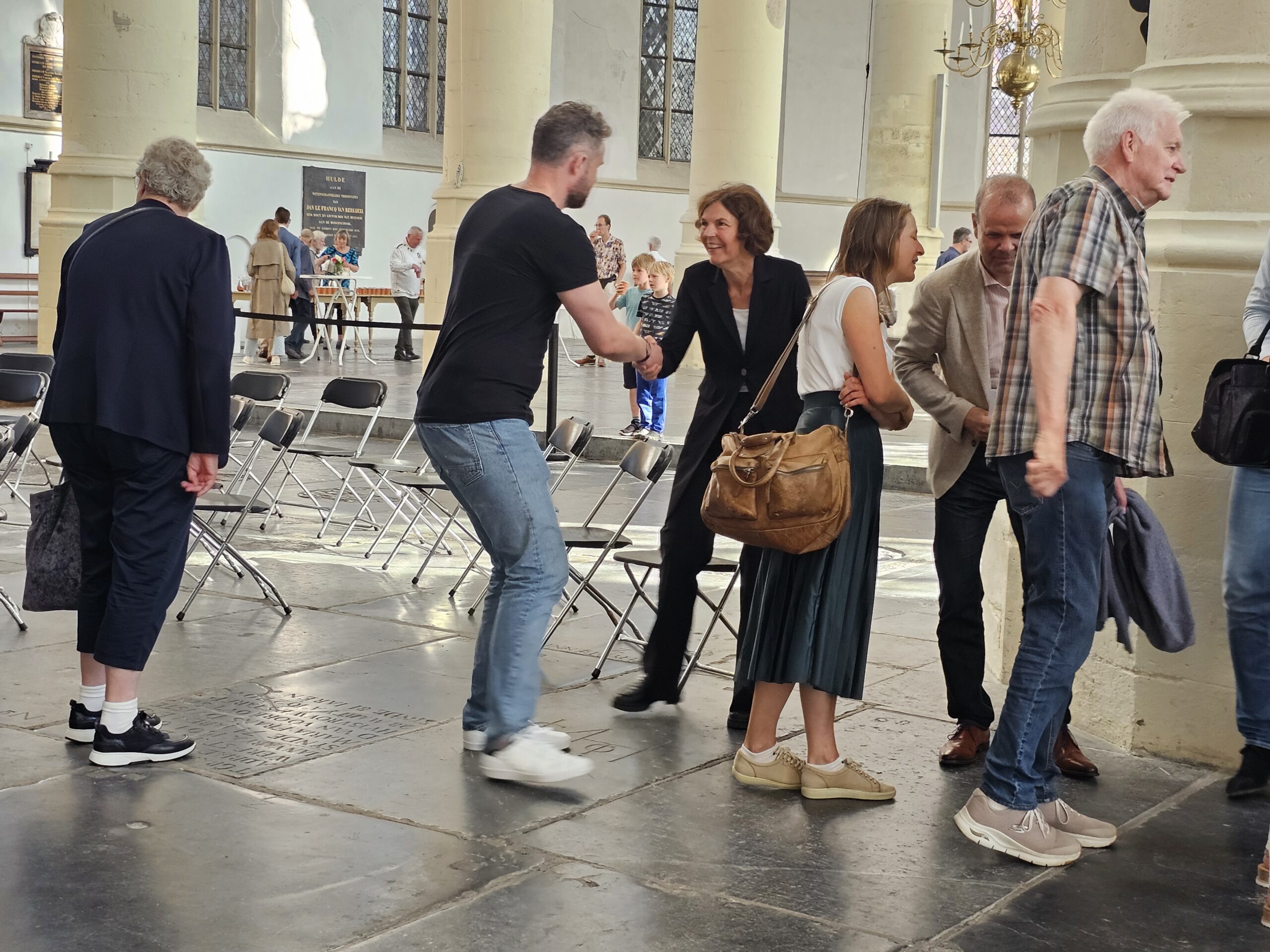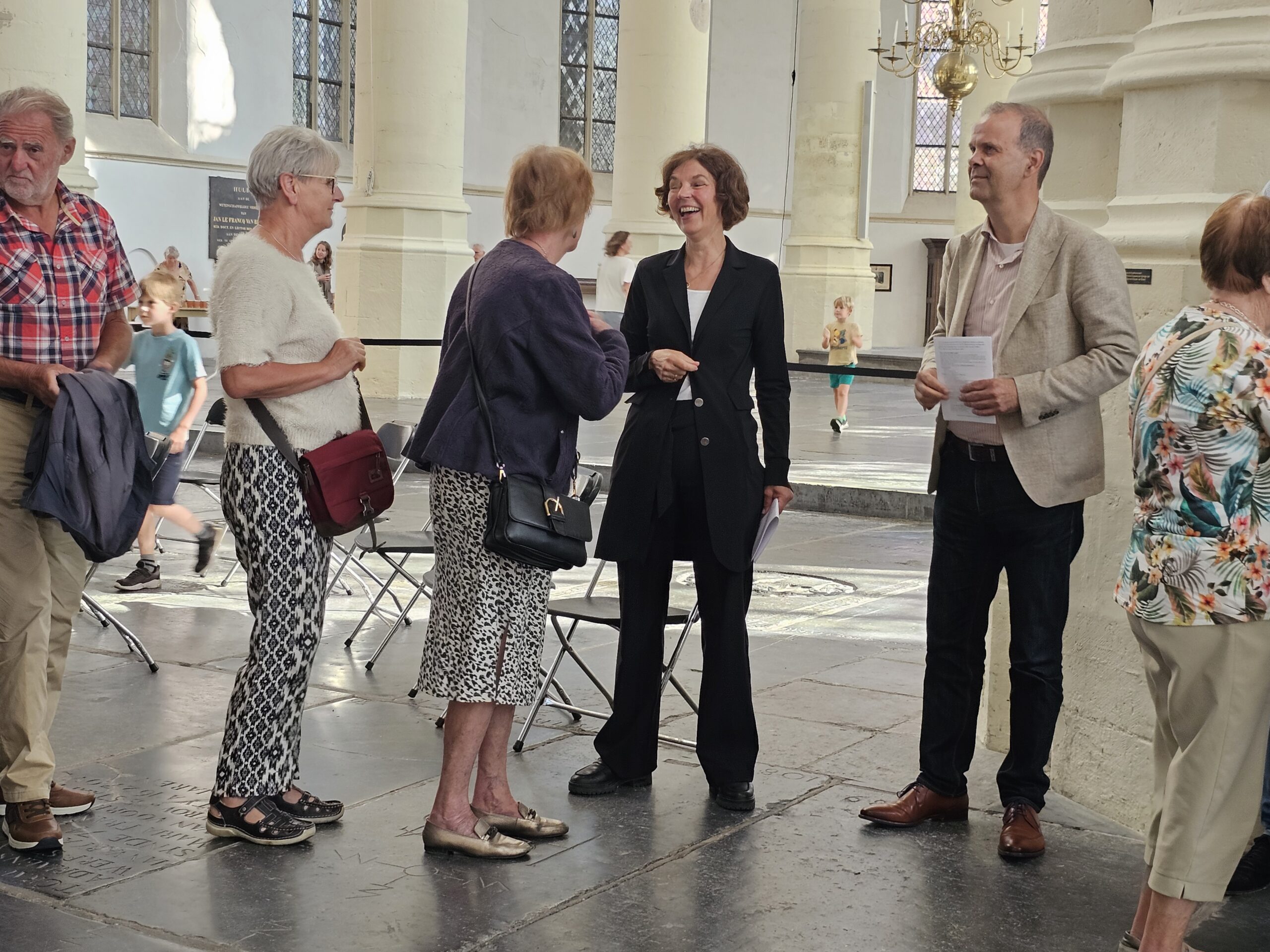 Direct na de dienst overhandigde ze het eerste exemplaar aan de Leidse burgemeester Peter van der Velden. “Het is een voluit Leids gebedenboek. Alle teksten die erin staan, schreef Margreet Klokke met het oog op kerkdiensten in de Hooglandse Kerk. Iedereen die aan de bundel meewerkte deed dit ‘pro deo’, wat betekent dat de baten voor de Hooglandse Kerk zijn.