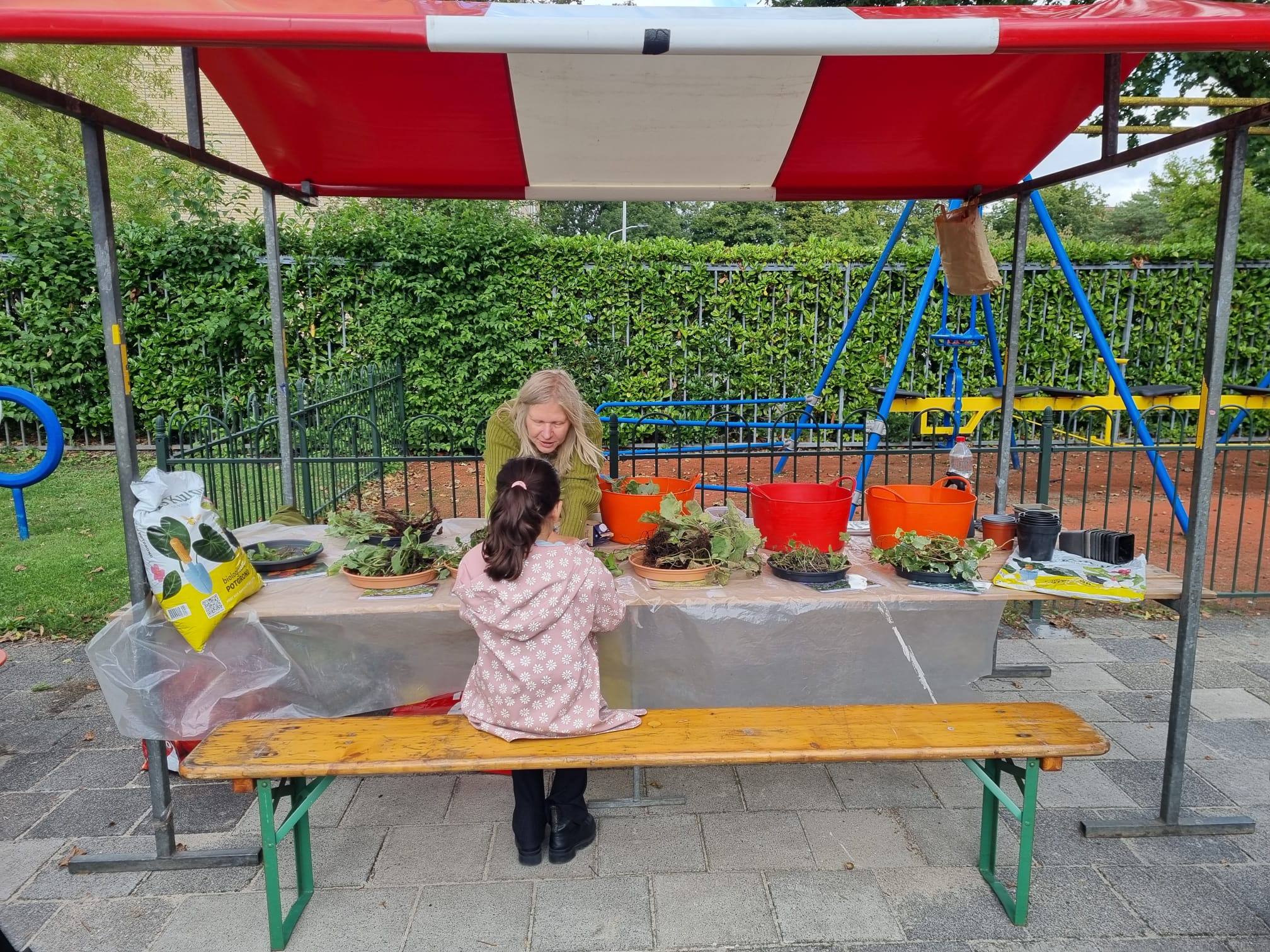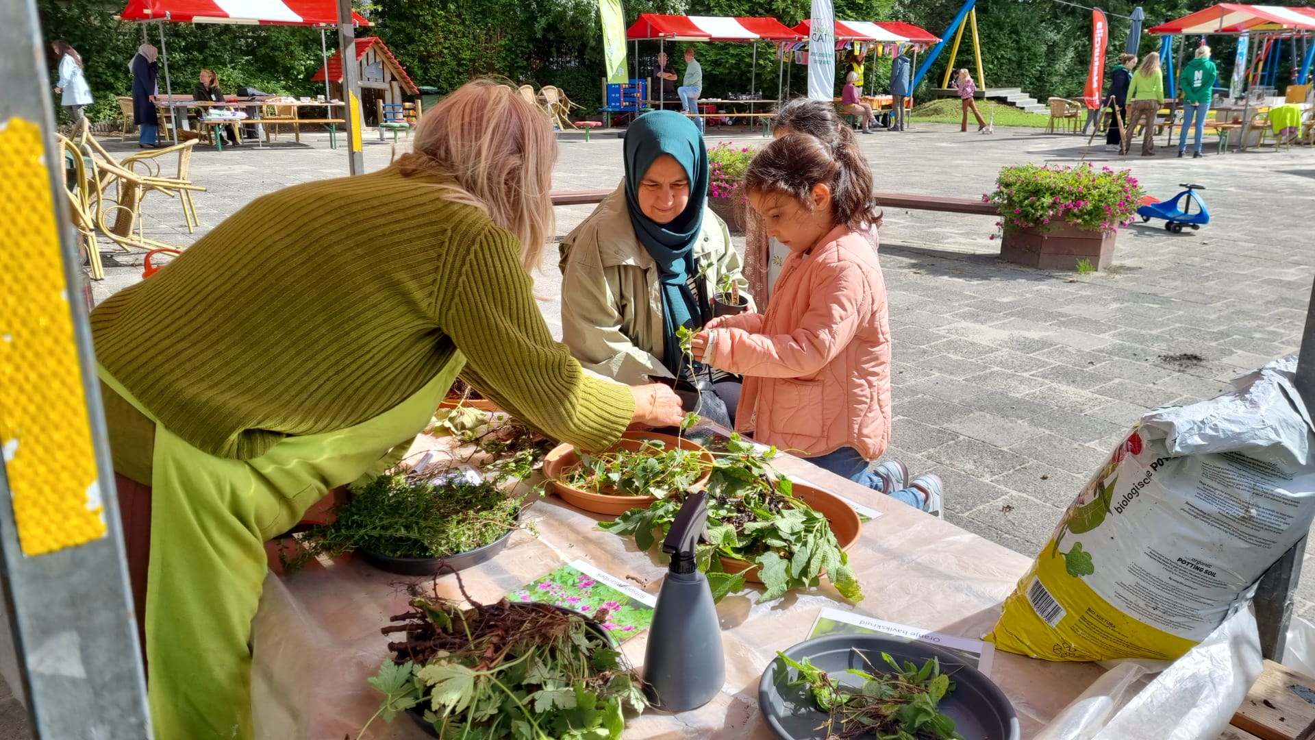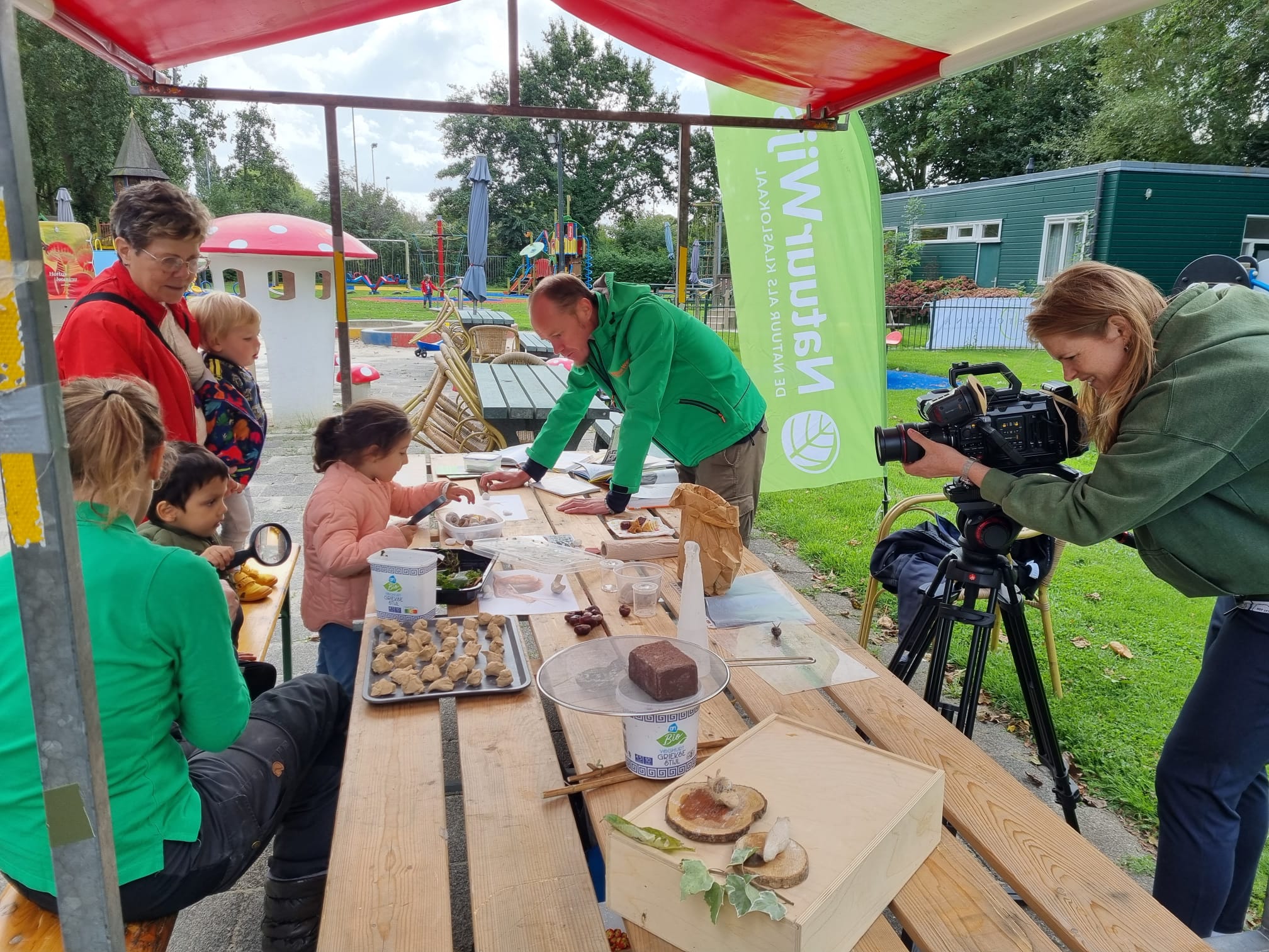 Op de Ontdekmarkt bij speeltuin Prinses Beatrix in Leiden Zuidwest trotseren woensdagmiddag talloze kinderen het herfstachtige weer en komen veel te weten over de ‘verborgen’ natuur in de stad. Experts van Naturalis en de Hortus vertellen alles over het vaak onzichtbare leven in de stad en beantwoorden de vragen van nieuwsgierige kinderen.