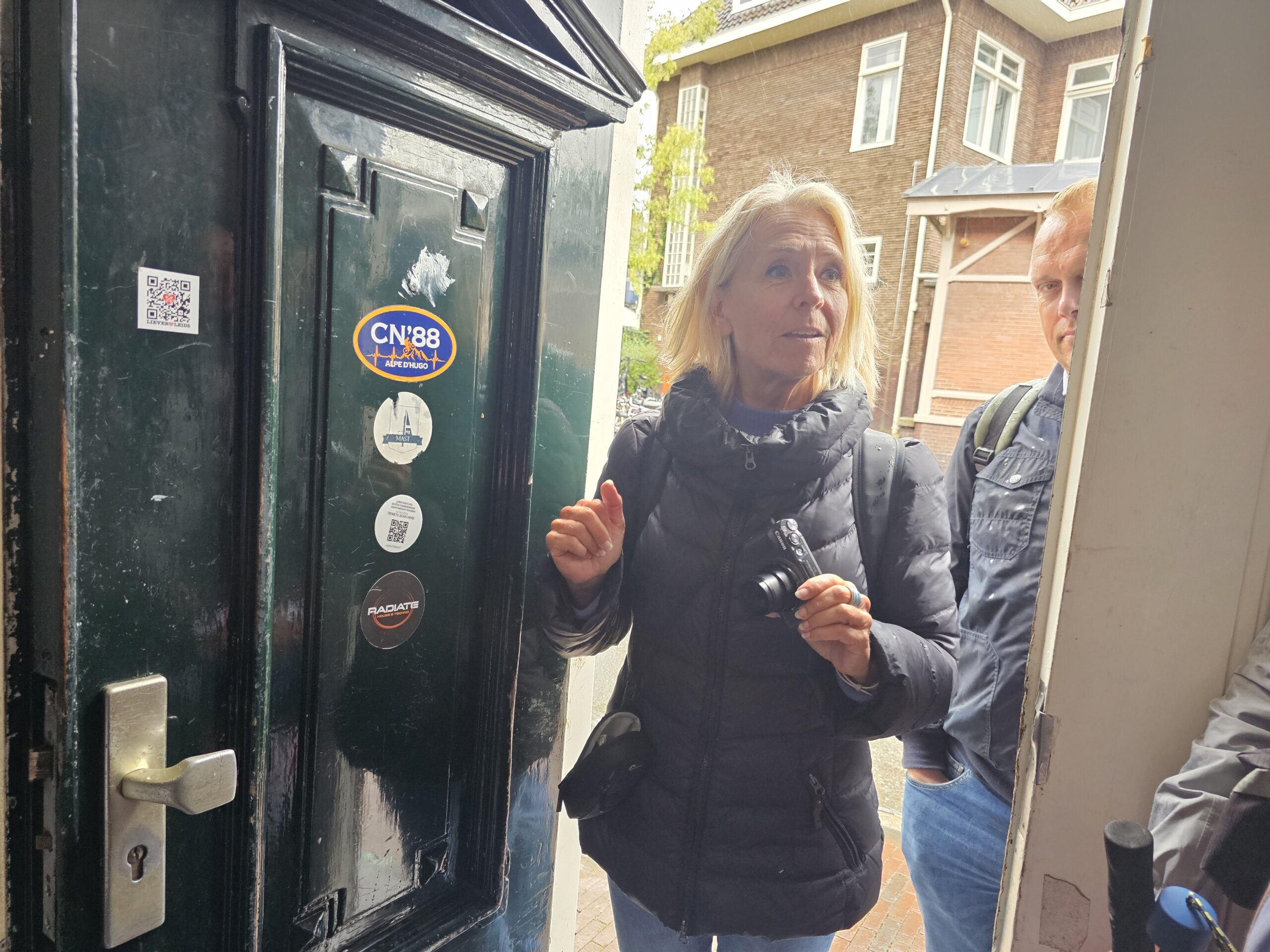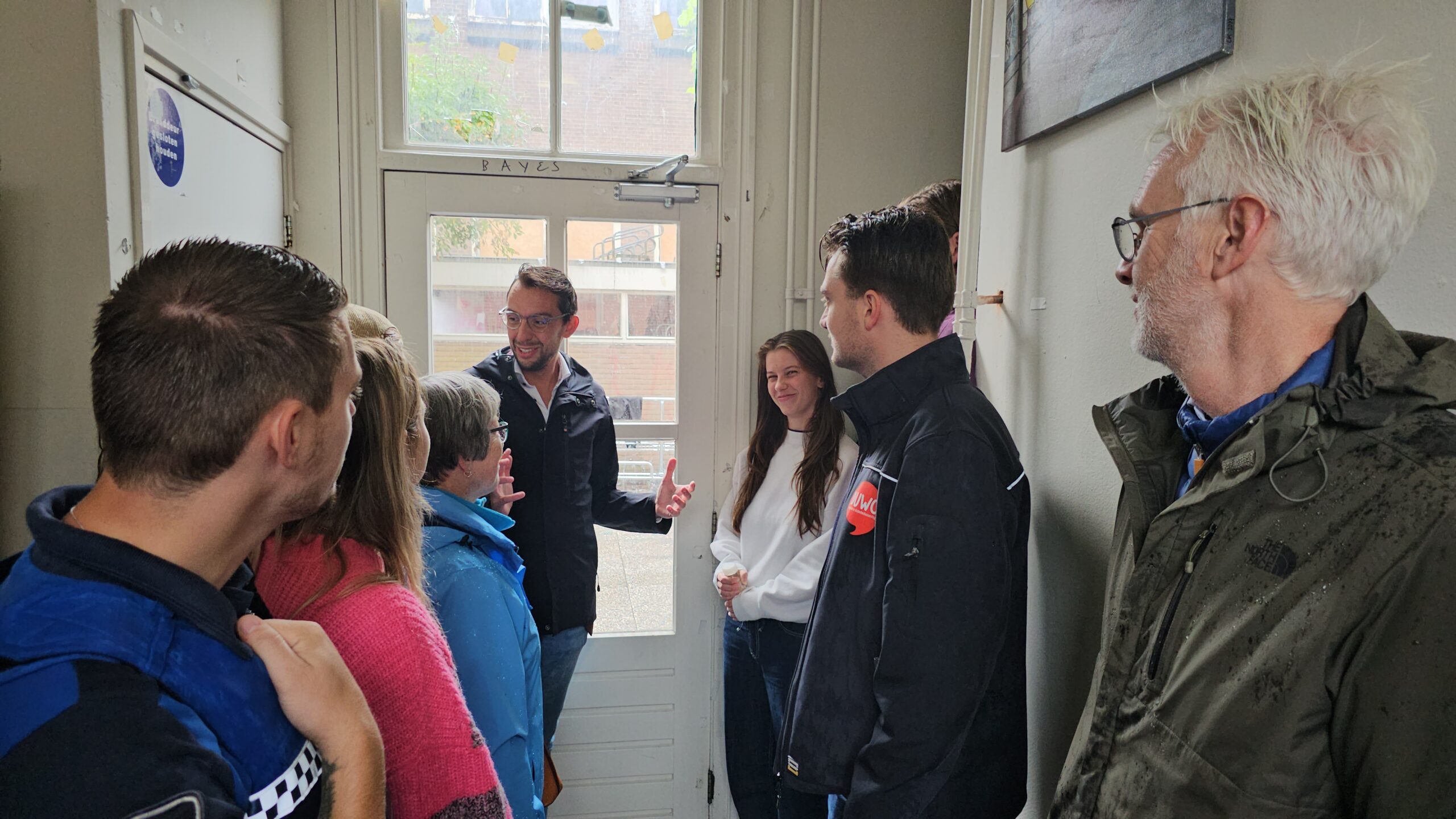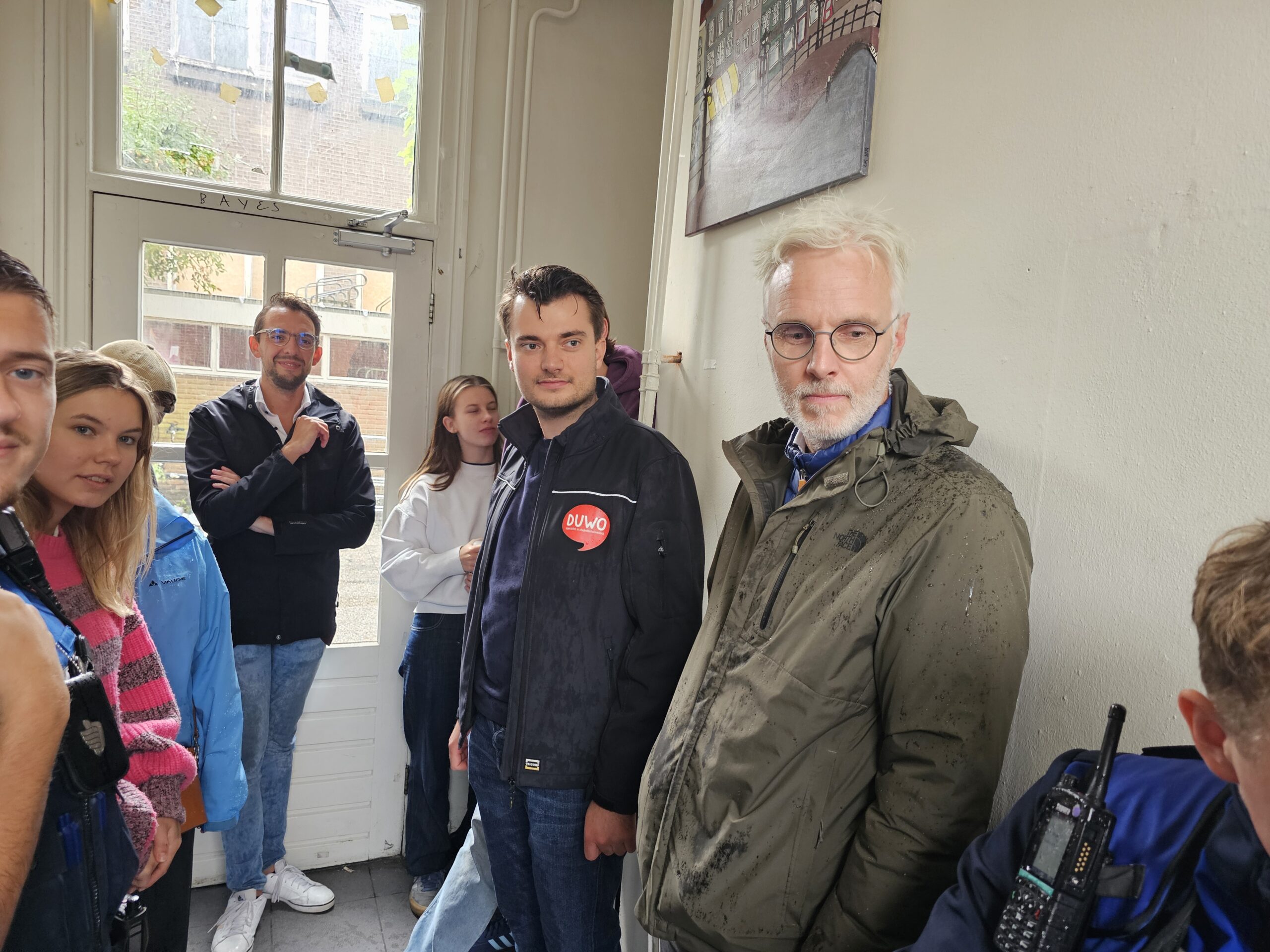 Daarop werd er in de gang van een DUWO-complex in de straat stilgestaan bij de veranderingen in de straat. Waar eerder auto’s stonden, kunnen onder andere de bewoners van de 25 kamers in het studentenhuis hun fiets kwijt. Voorheen konden ze niet anders dan de fietsen op de stoep stallen, die daardoor voor voetgangers onbegaanbaar was. “En dan moest je dus de straat op waar ook bussen rijden”, zegt Boudewijn Leewenburgh.
