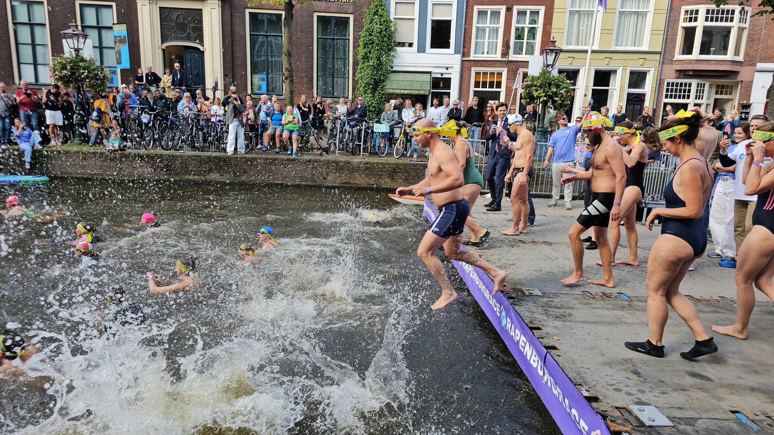 De deelnemers aan de race zwemmen 800 meter door de bekendste gracht van Leiden om aandacht te vragen voor de neurologische aandoening, waarbij patiënten door een beschadiging van de ruggenmerg vaak in een rolstoel terecht komen. De deelnemers doen dit individueel en in teams. Zowel de teams als de losse deelnemers konden gesponsord worden en dat werd ook dit jaar weer uitgebreid gedaan.