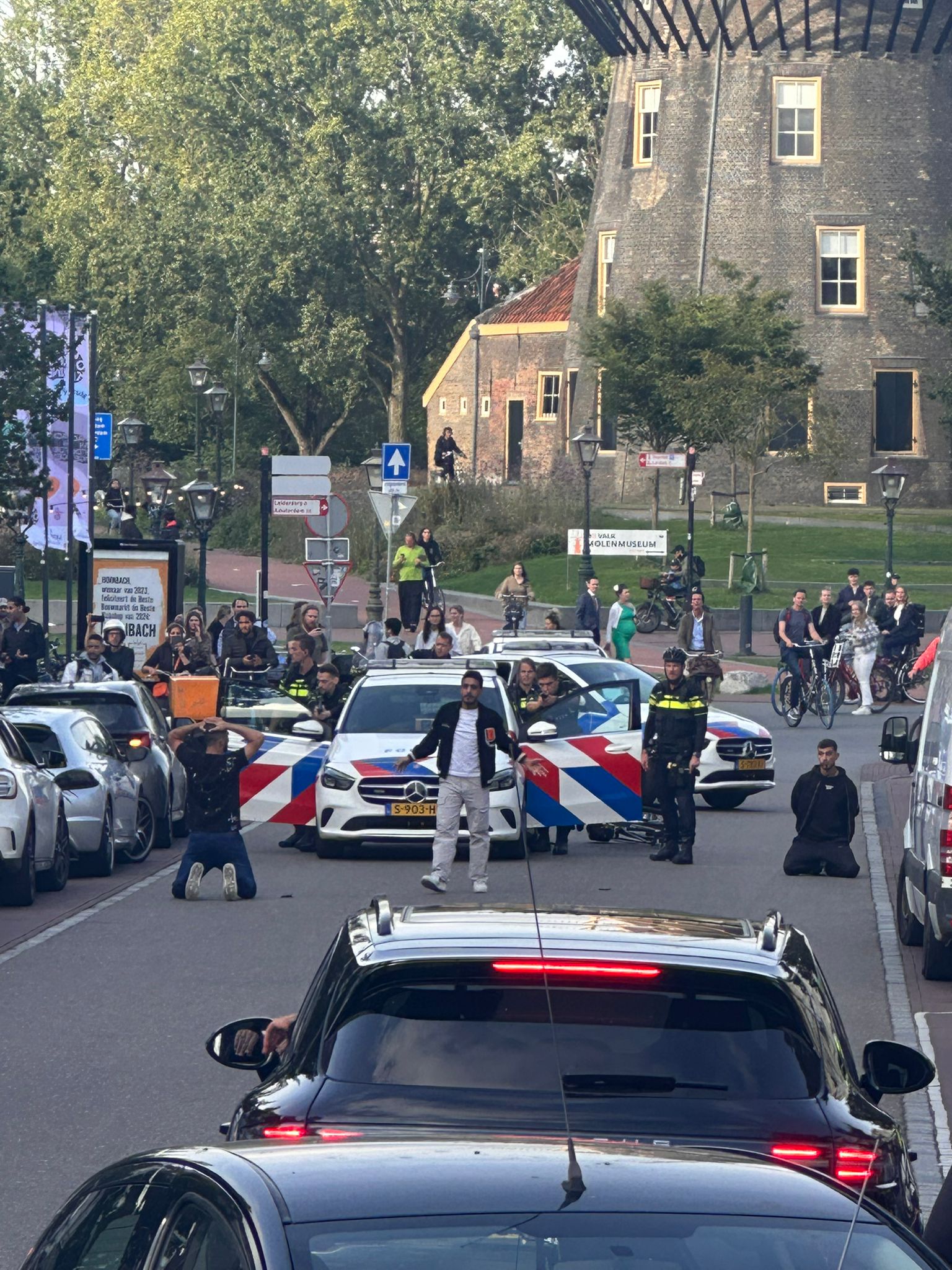 Er is door de politie bij een van de aangehouden verdachten een steekwapen aangetroffen.