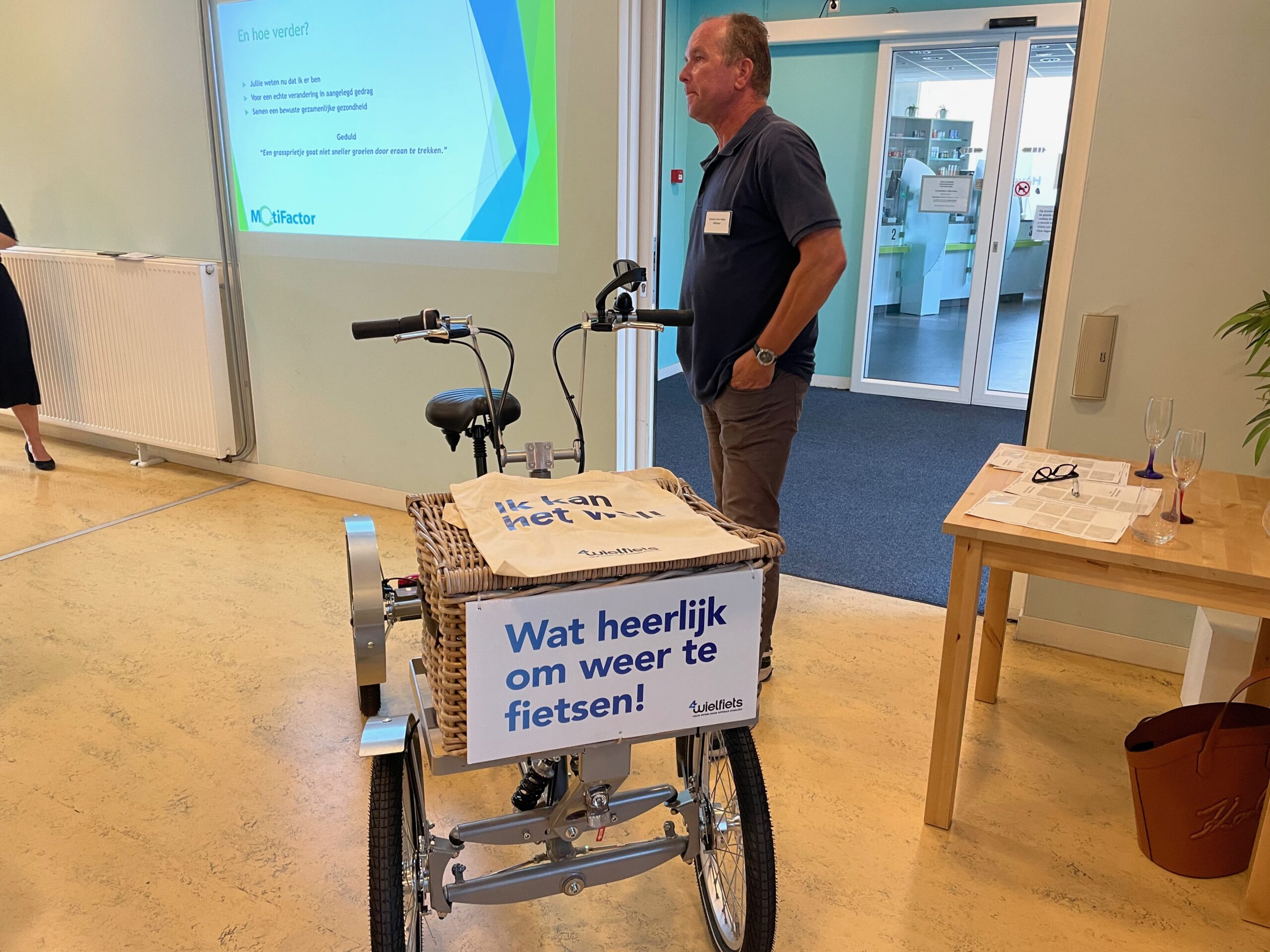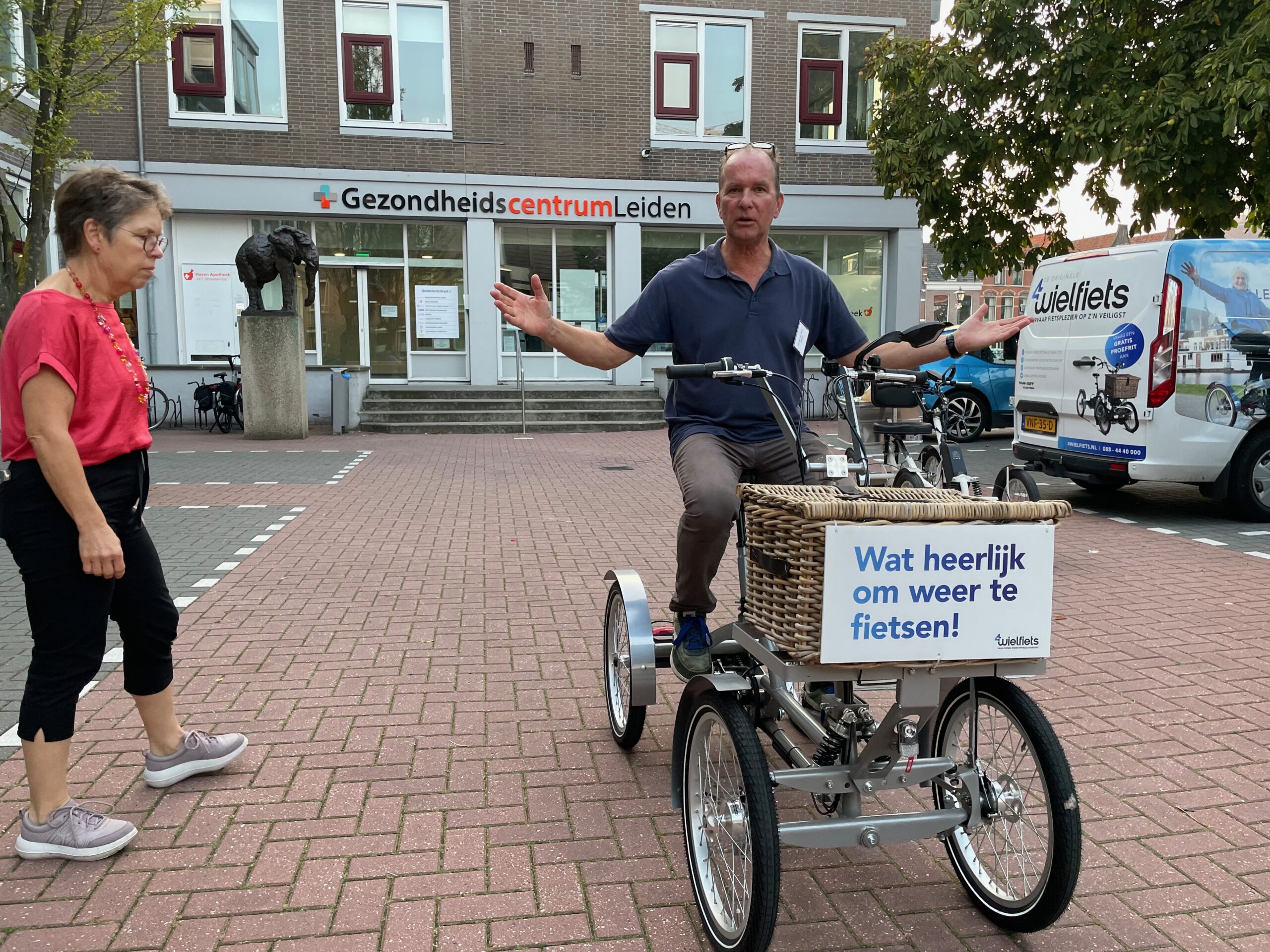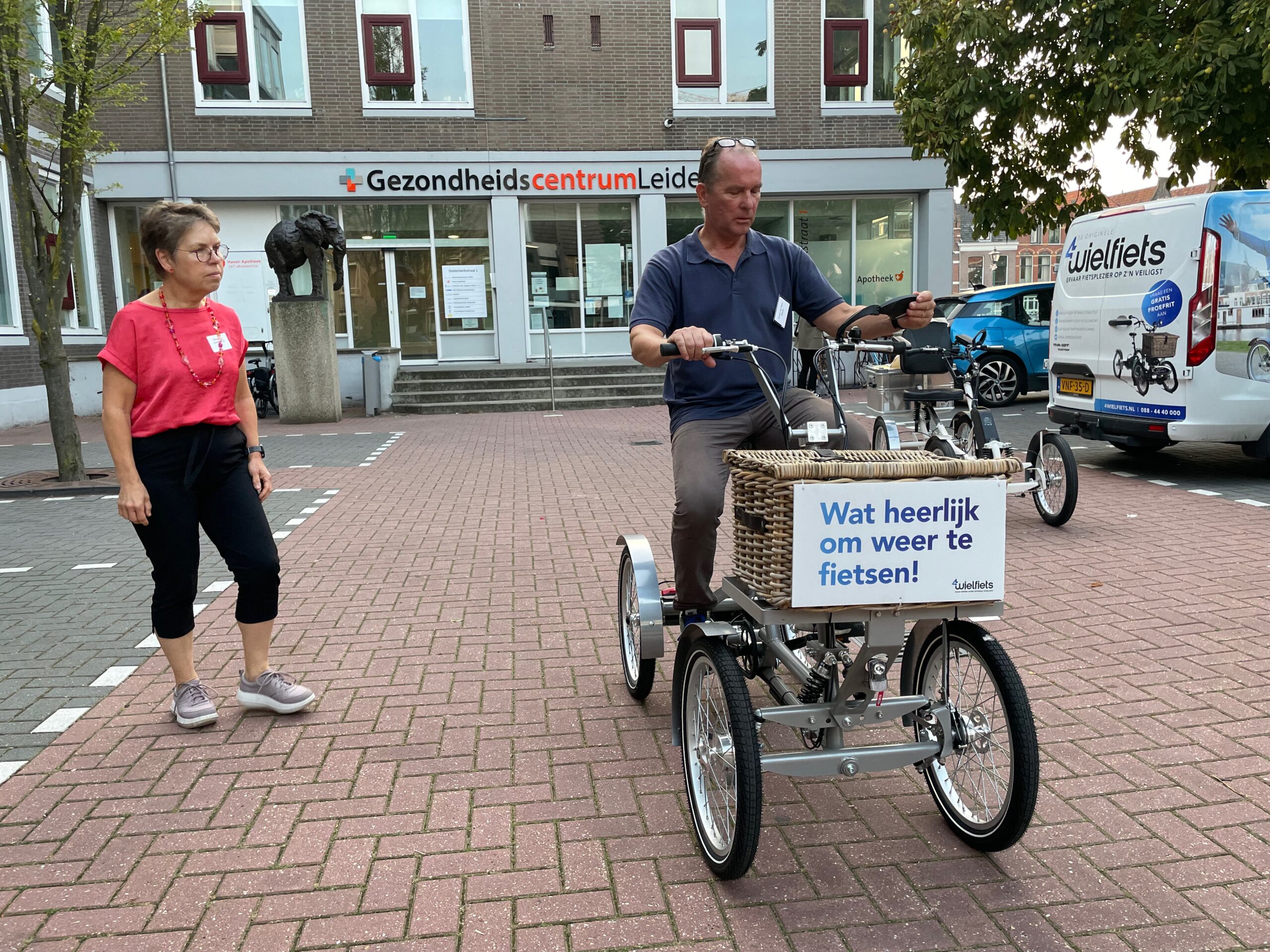 Een andere spreker was Robert van Hees, eigenaar van 4Wielfiets. Een Leidse bedrijf dat al twintig jaar aan de weg timmert met een fiets met vier wielen. “Hij rijdt net als een gewone stadsfiets. Maar dankzij de vier wielen is hij heel stabiel. Uiteindelijk kun je alles omver krijgen, maar vallen met een vierwielfiets kan nauwelijks. Wij geven mensen fietsplezier terug.”