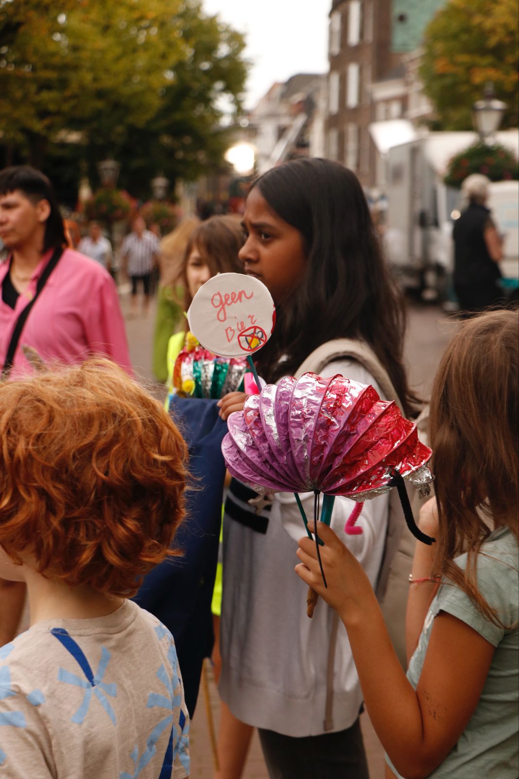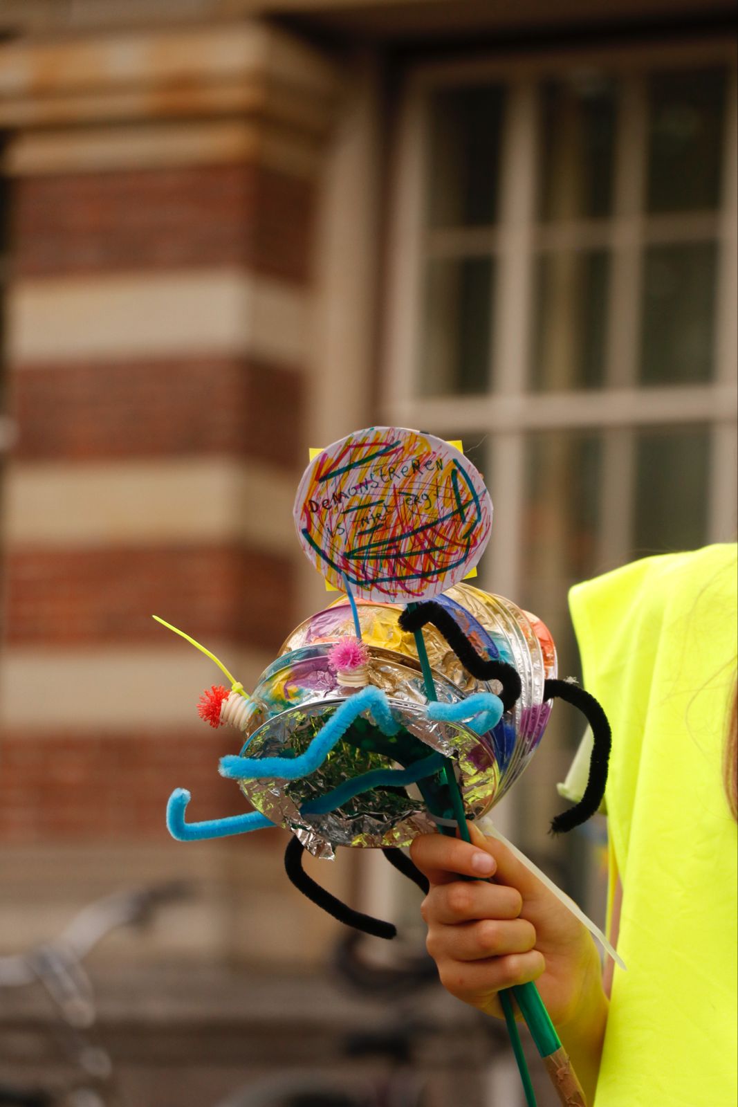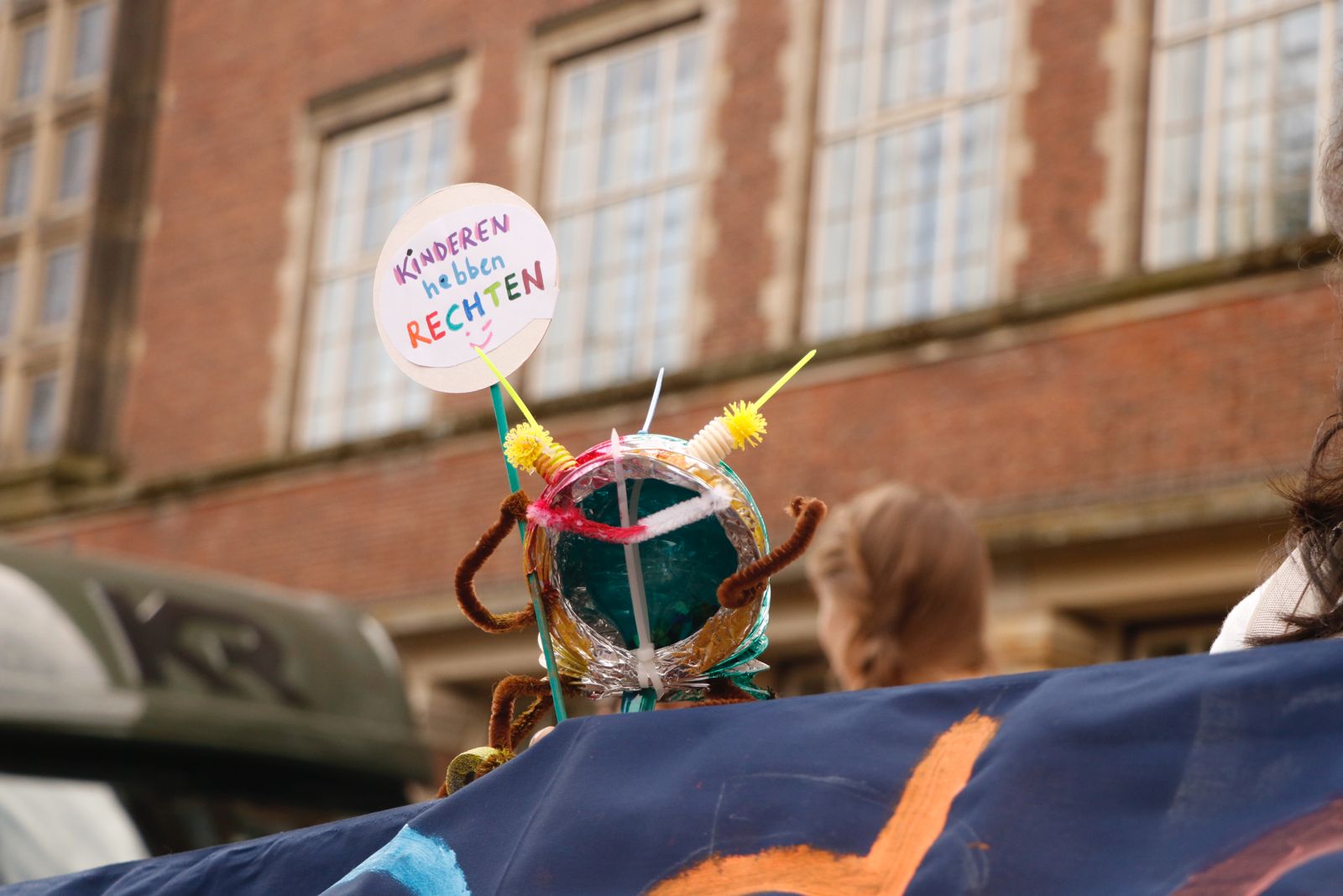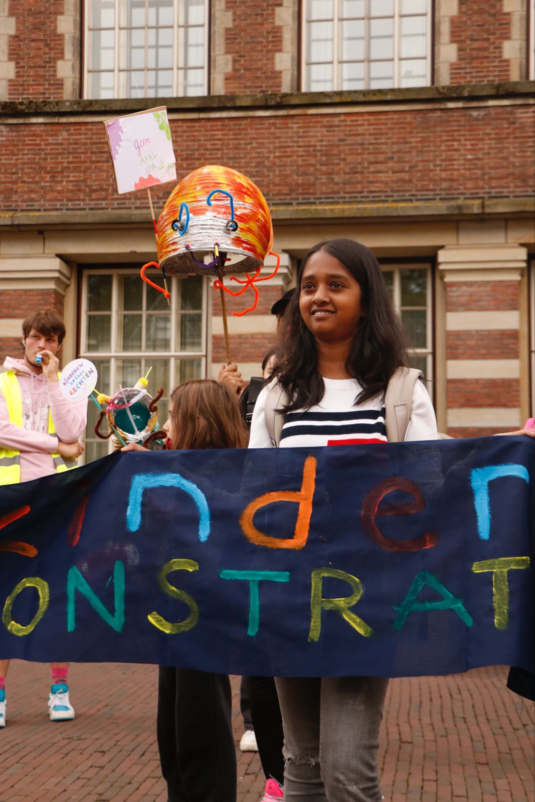 Al knutselend kletsten ze en dachten ze na over wat ze zouden willen veranderen in de wereld en in hun eigen leven. Tijdens de Kinderdemonstratie naar het Leidse stadhuis werden die boodschappen vervolgens uitgedragen. Daar werden de jonge demonstranten ontvangen door inspirerende sprekers, limonade en taart. Aan de demonstratie deden voornamelijk kinderen mee in de leeftijd van 4 tot 14 jaar.