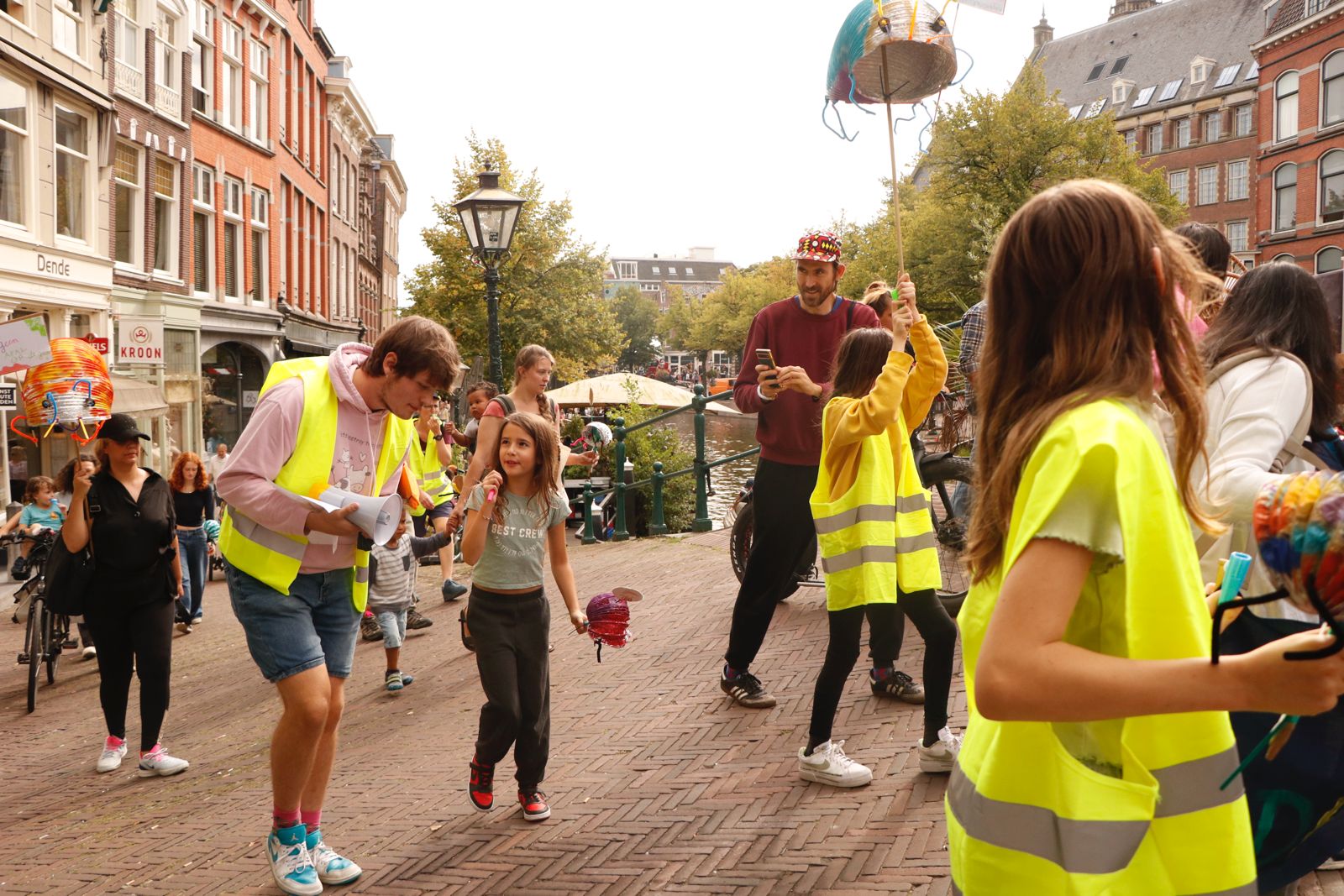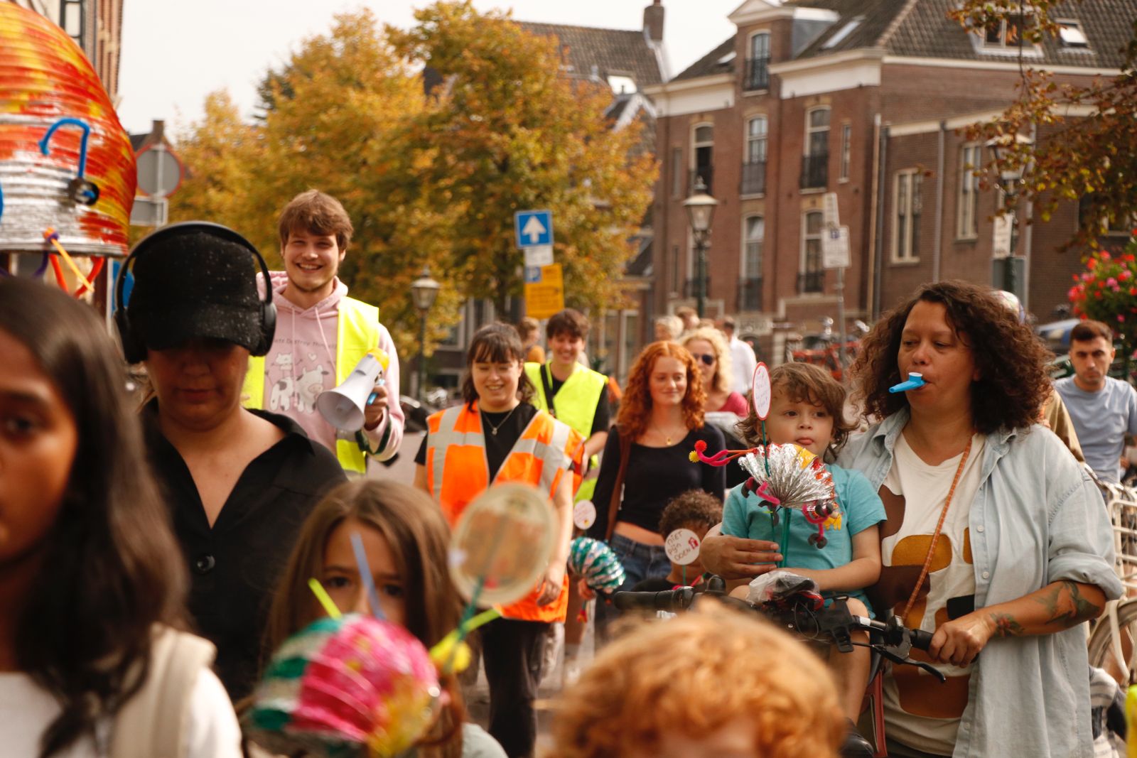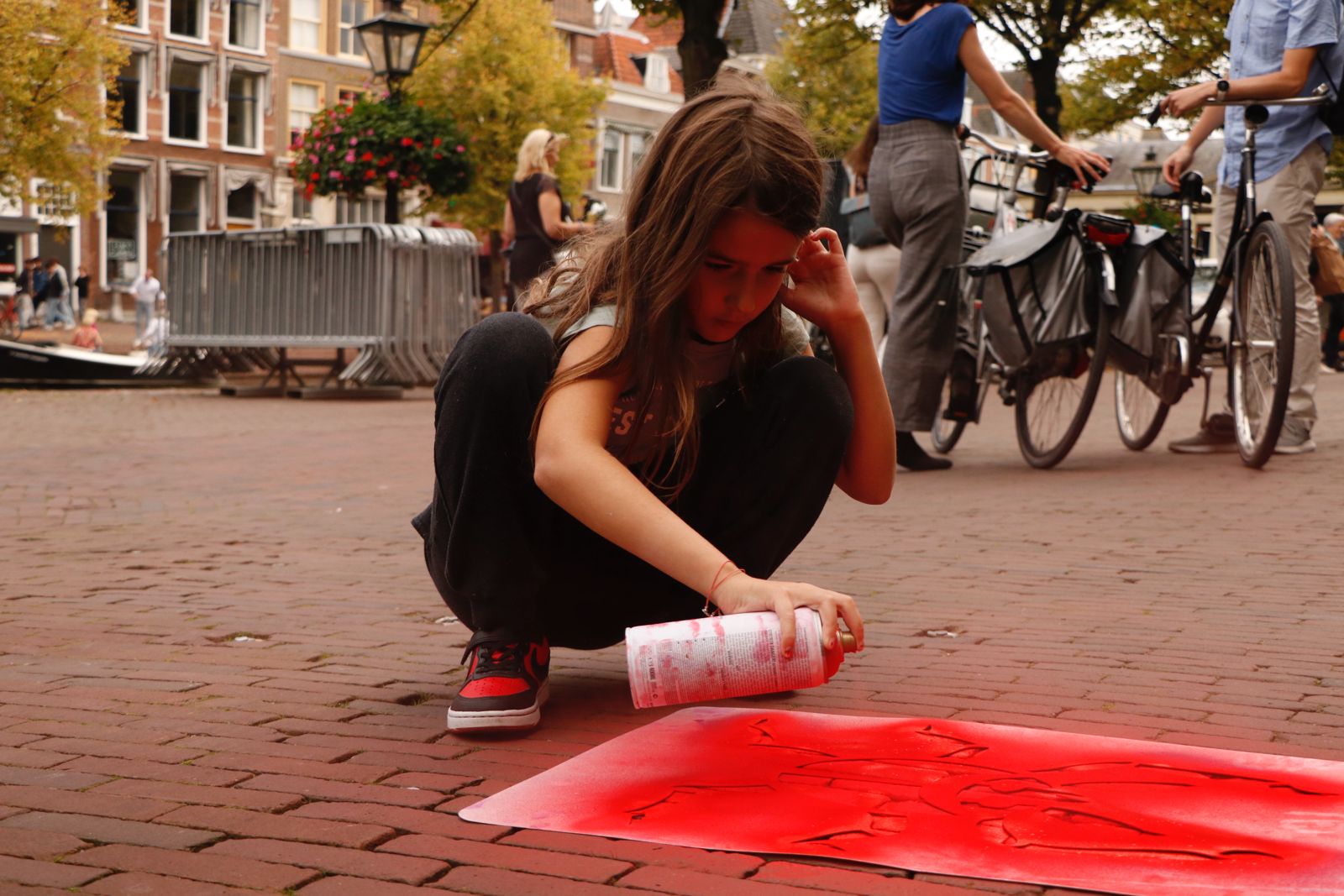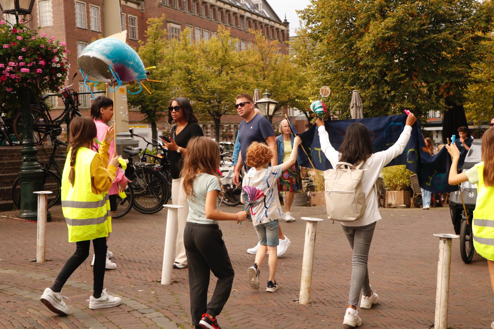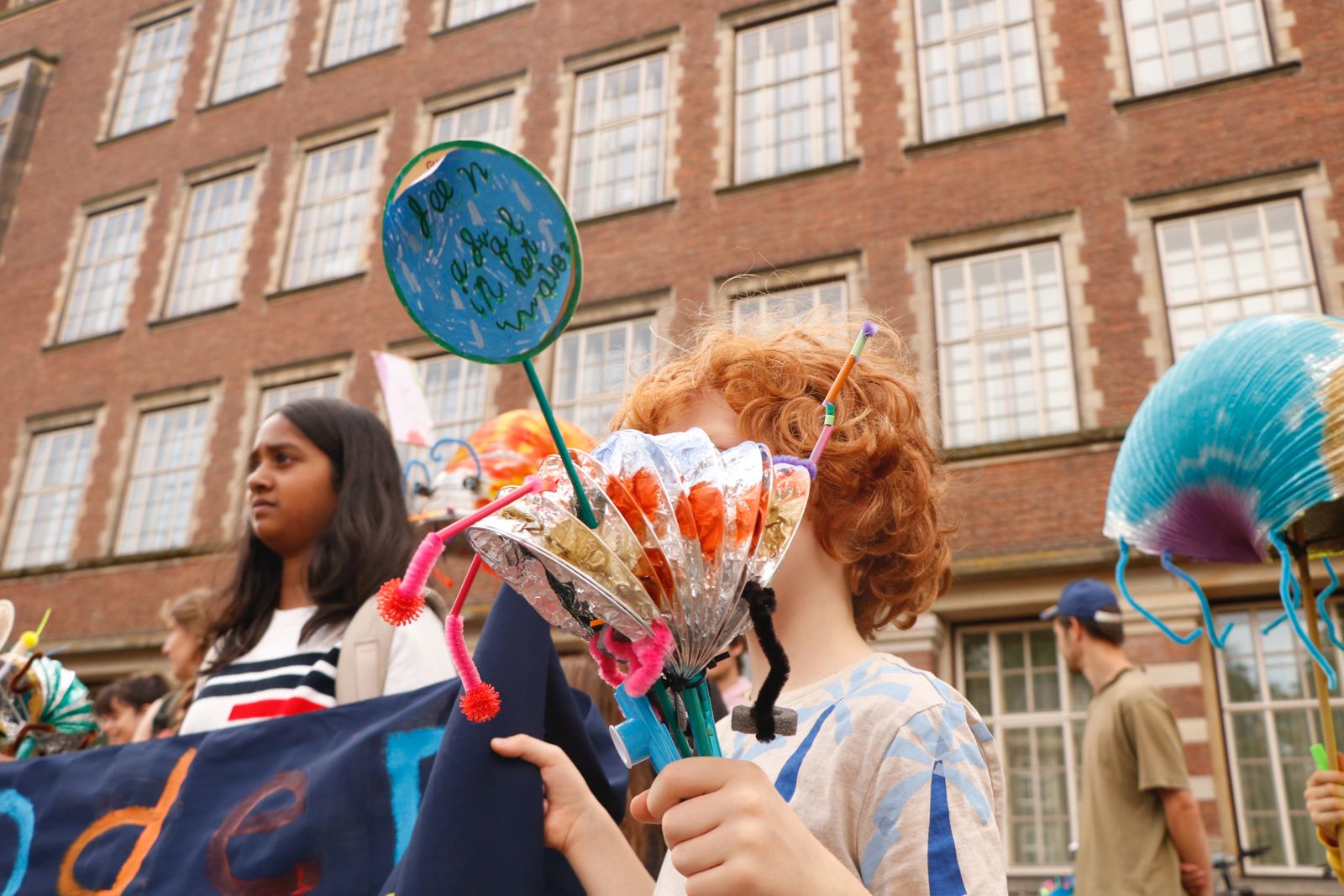 Tijdens de Kinderkunstroute hebben kinderen zondag een demonstratie gehouden in het centrum van Leiden. Ze begonnen bij Theater de Generator in de Vrijplaats Leiden met het maken van creatief protestmateriaal. Daarbij werden ze geholpen door beeldend kunstenaar en activist Sjors Knol.