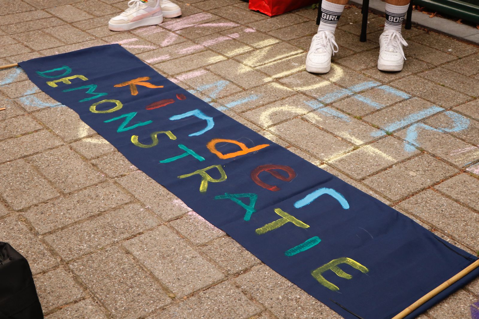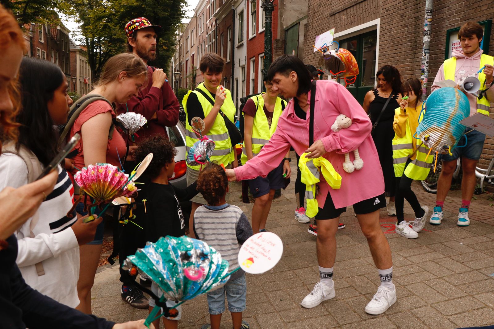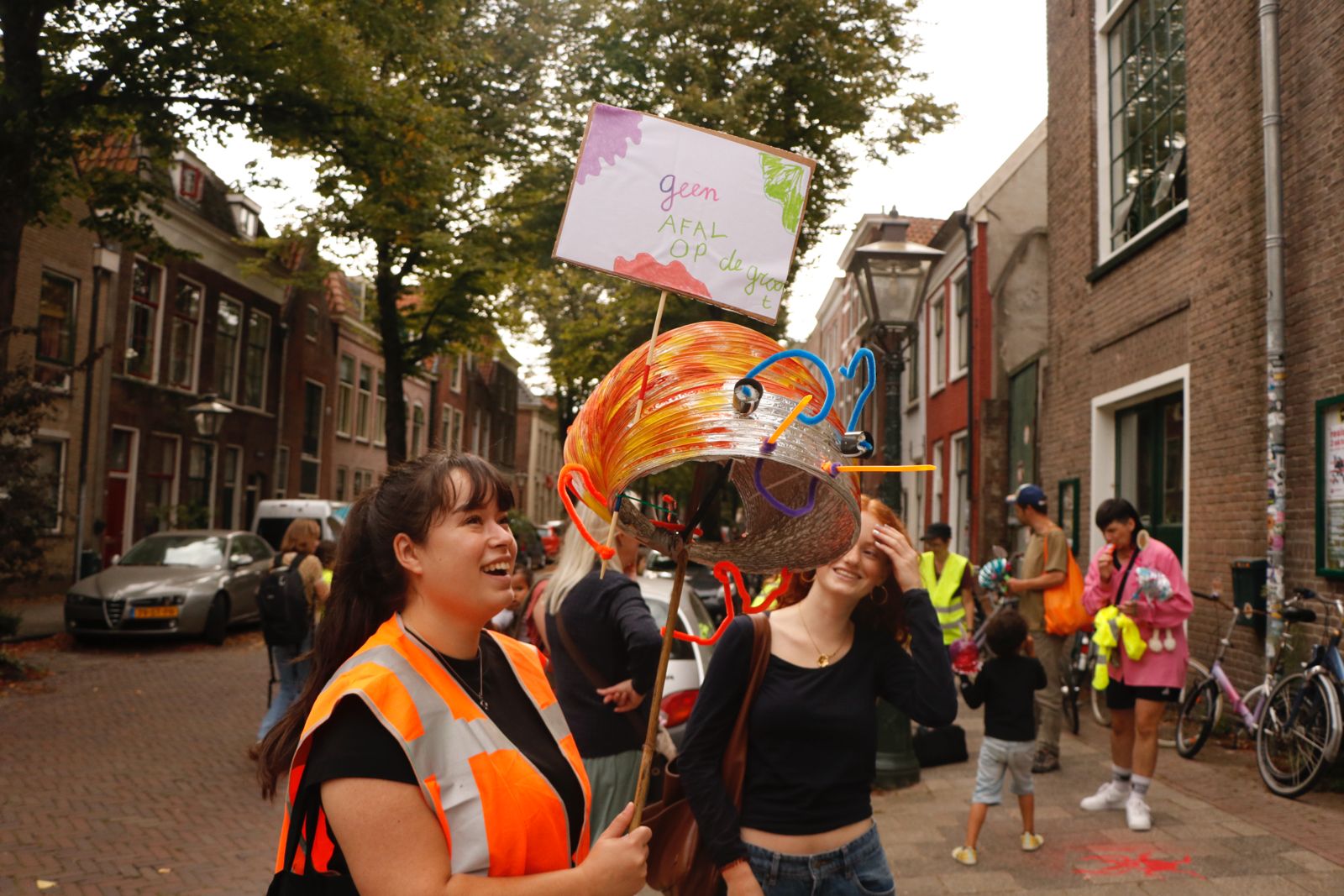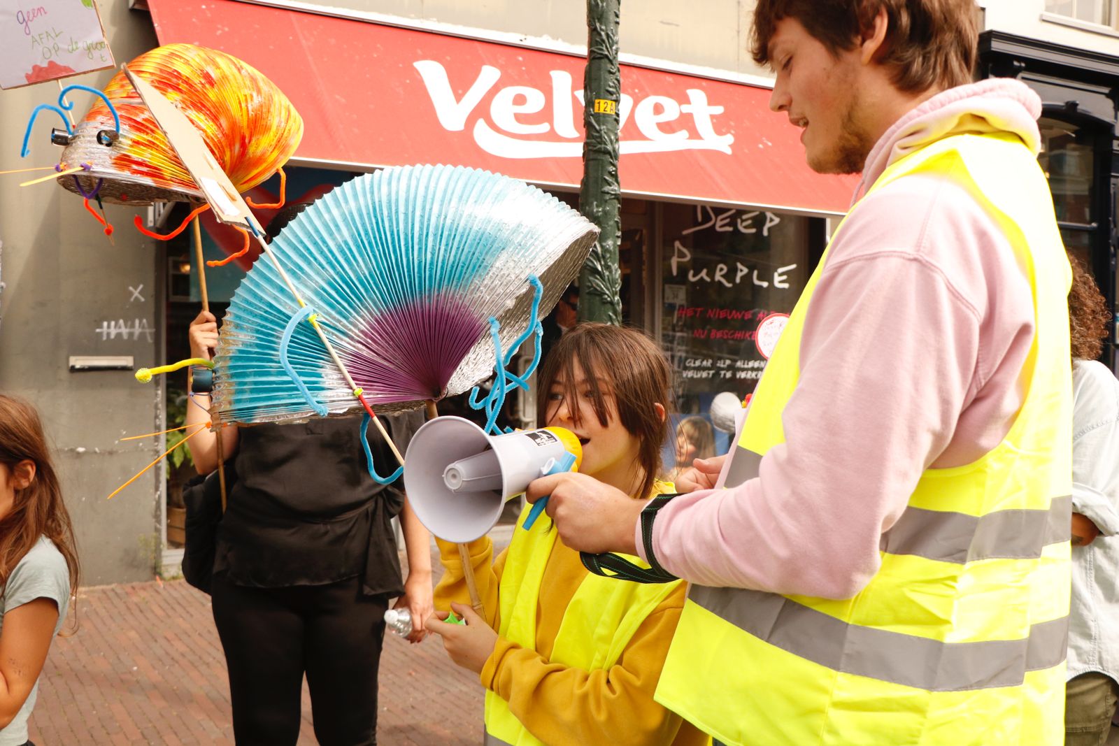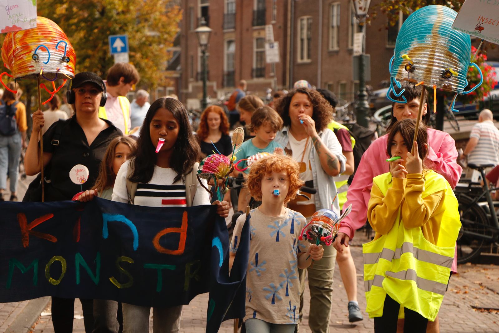 Tijdens de Kinderkunstroute hebben kinderen zondag een demonstratie gehouden in het centrum van Leiden. Ze begonnen bij Theater de Generator in de Vrijplaats Leiden met het maken van creatief protestmateriaal. Daarbij werden ze geholpen door beeldend kunstenaar en activist Sjors Knol.