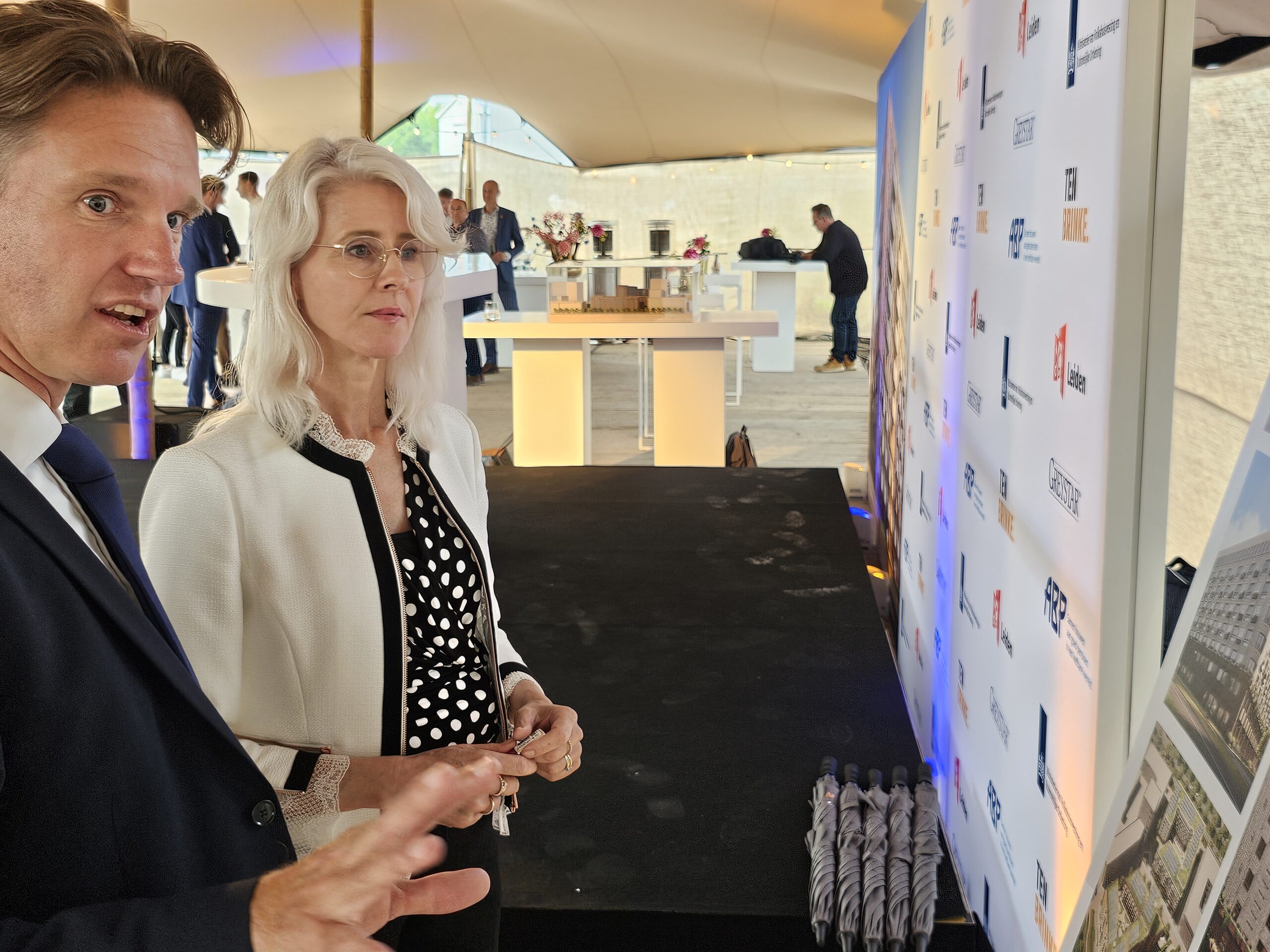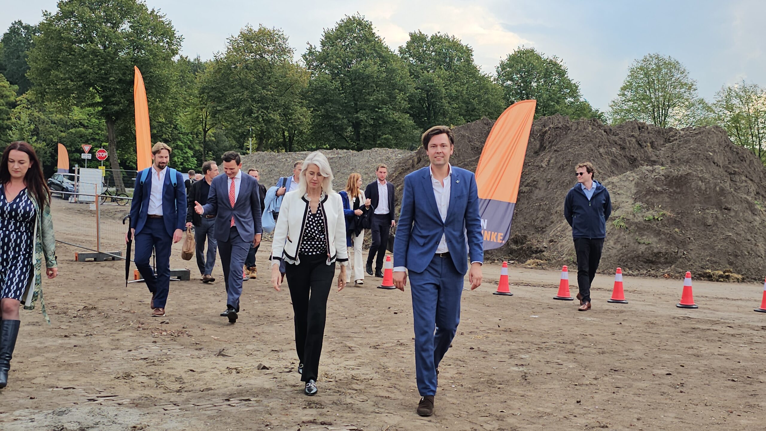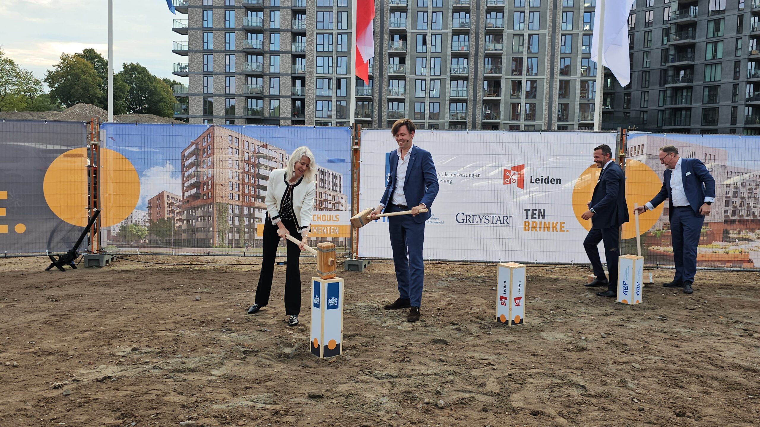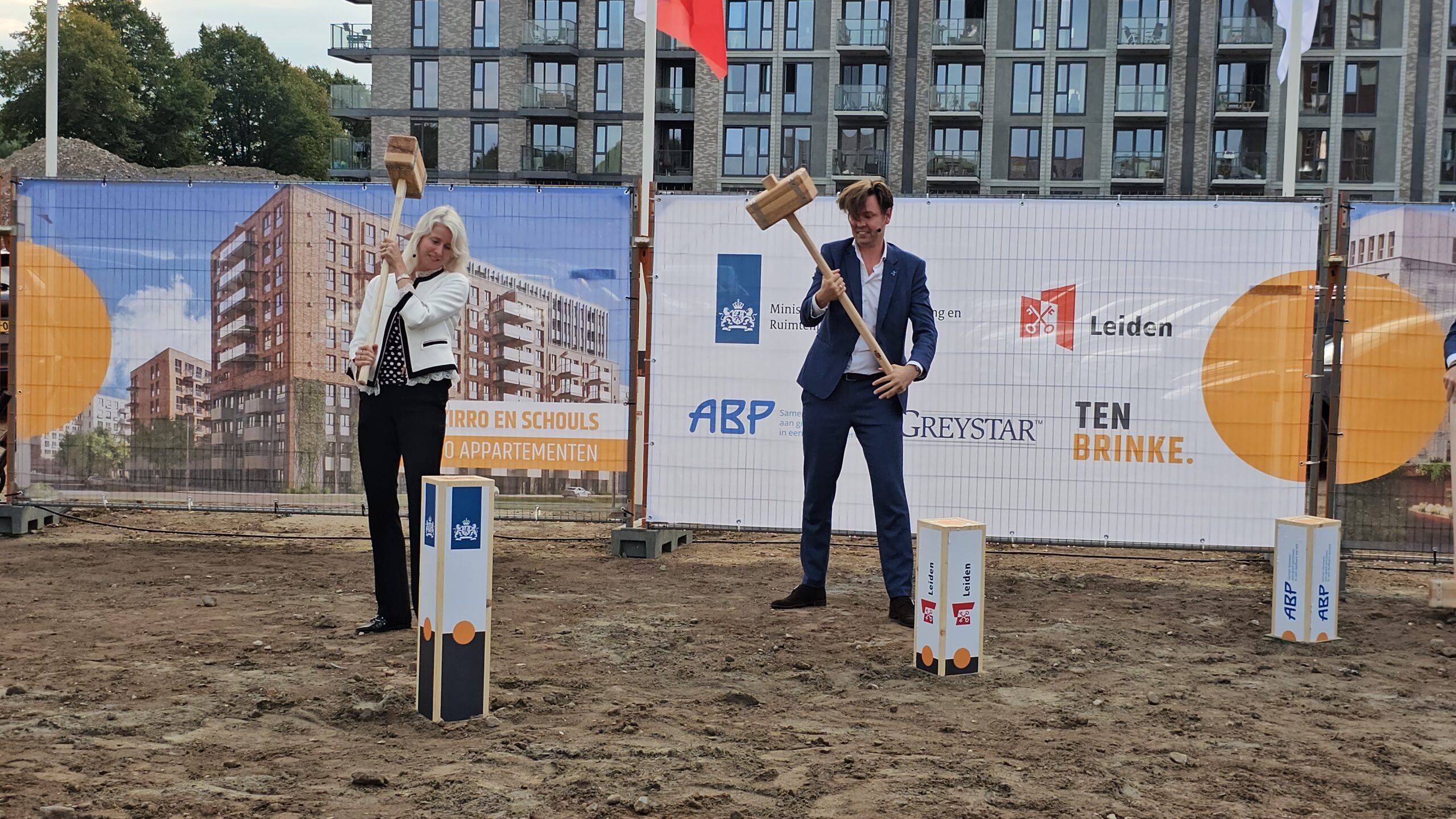 Om de start van de bouw luister bij te zetten, maar ook om dat het Rijk met miljoenen over de brug kwam aan Woningbouwimpuls (WBI) en Startbouwimpuls (Sbi) subsidies was minister Mona Keijzer van Volkshuisvesting en Ruimtelijke Ordening naar Leiden gekomen om samen met de Leidse bouwwethouder Julius Terpstra en vertegenwoordigers van de ontwikkelaar symbolisch de eerste palen te slaan.