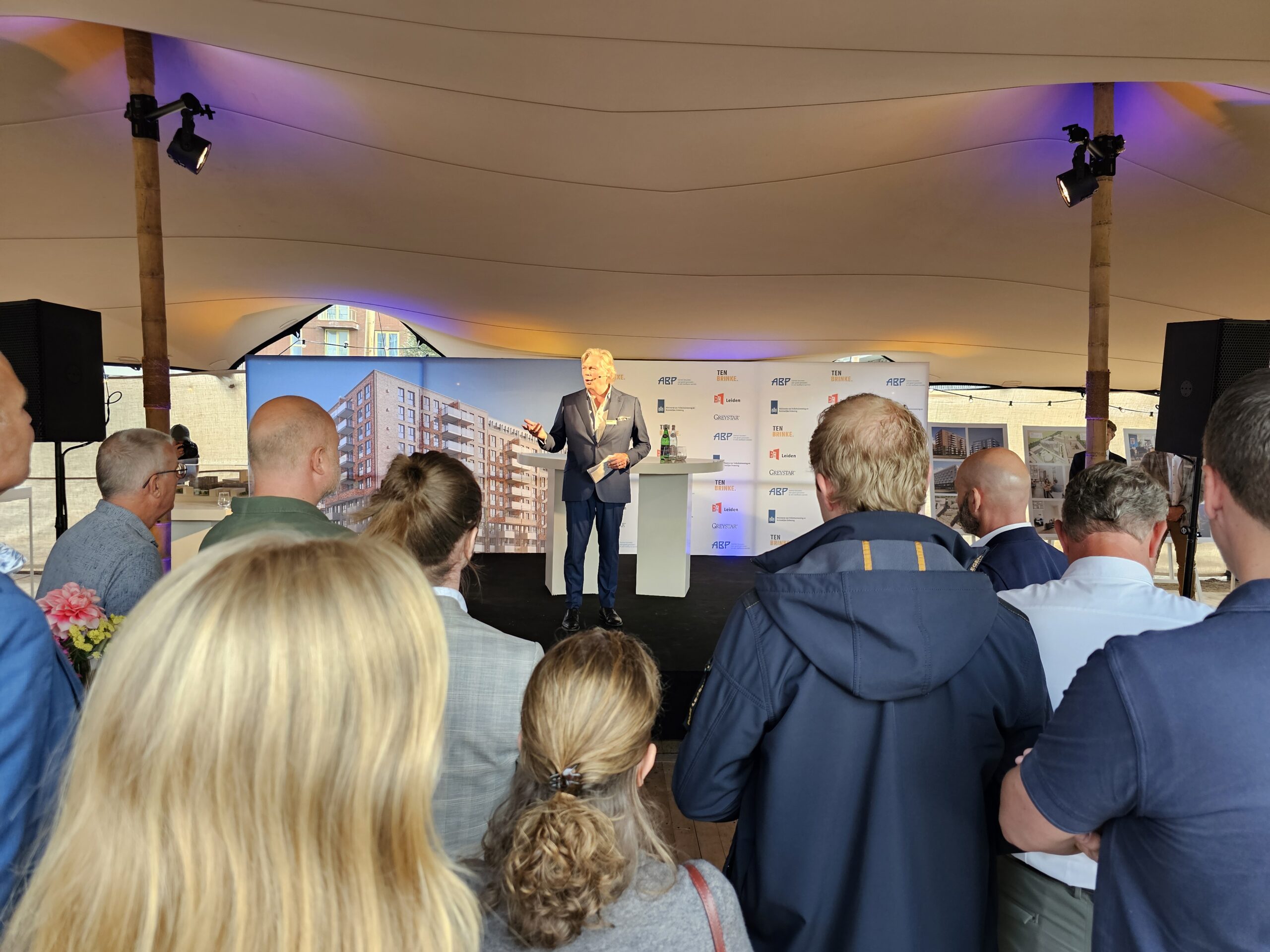 Wethouder Terpstra is blij dat opnieuw een enorm bouwproject van start is gegaan. Het is het op-een-na laatste woningbouwproject in de Lammenschansdriehoek. Later volgt nog de Gamma-locatie. Daar worden nu plannen voor gemaakt.