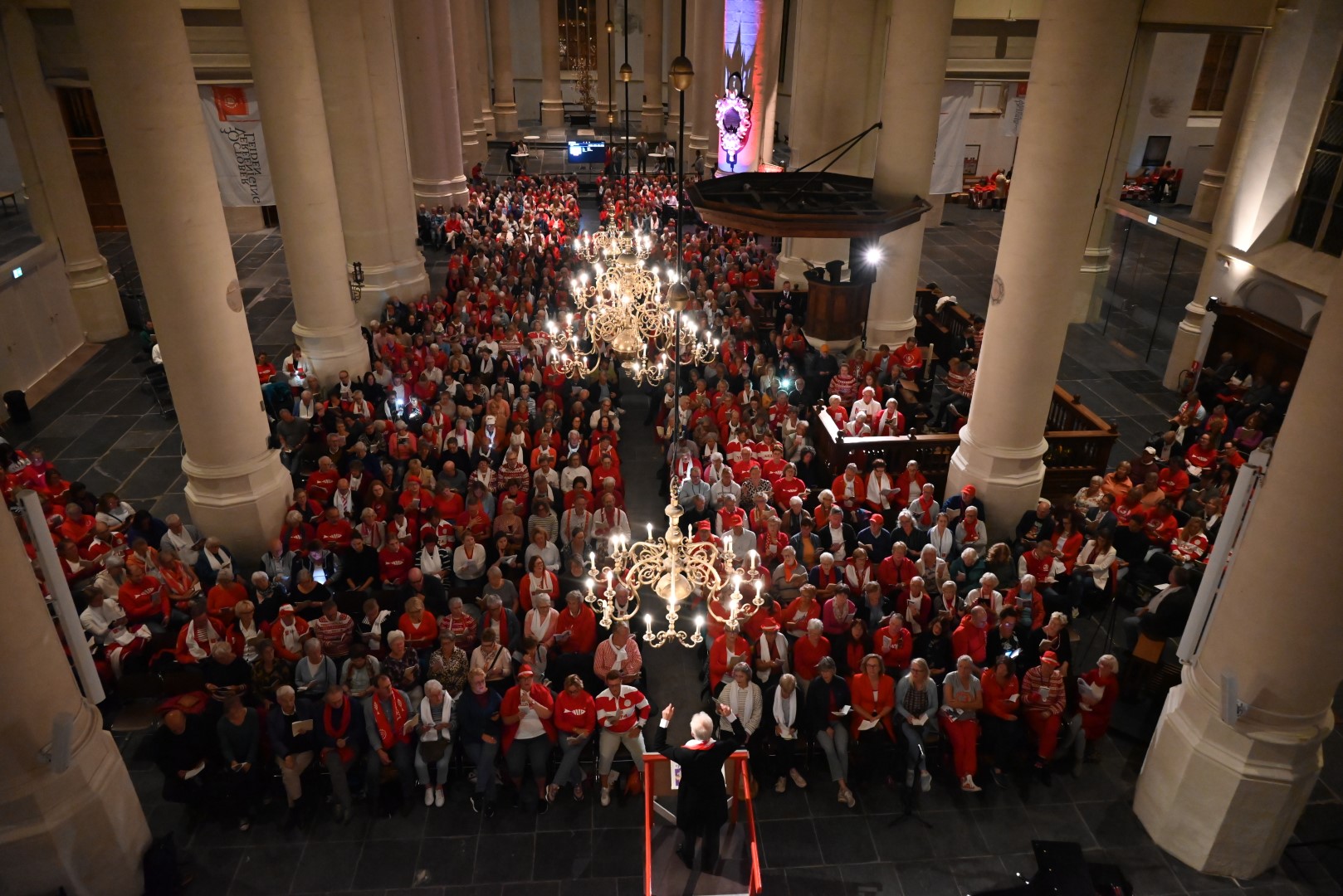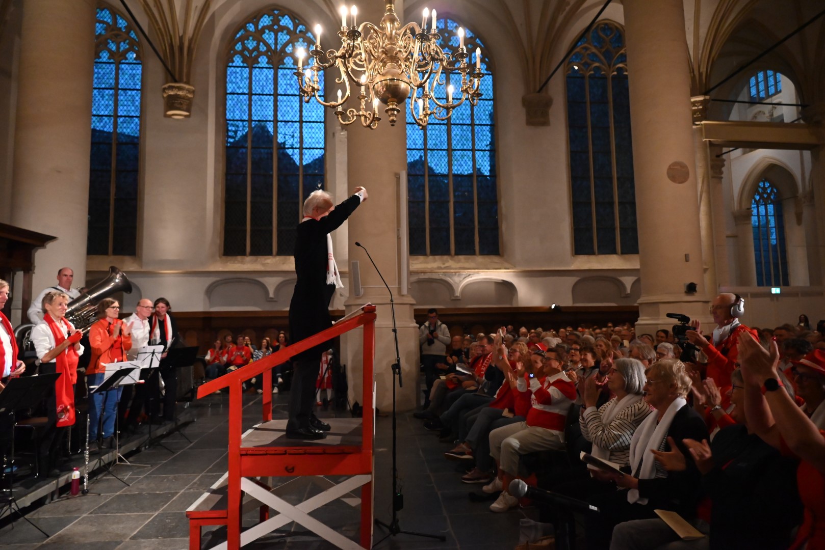Voor veel mensen een hoogtepunt tijdens Leidens Ontzet: de koraalzang in het Van der Werfpark. Woensdagavond kwamen er zo’n 1100 mensen naar de openbare repetitie in de Hooglandse Kerk. En in dit jubileum jaar met een primeur: de nieuwe koraalbundel werd in gebruik genomen.