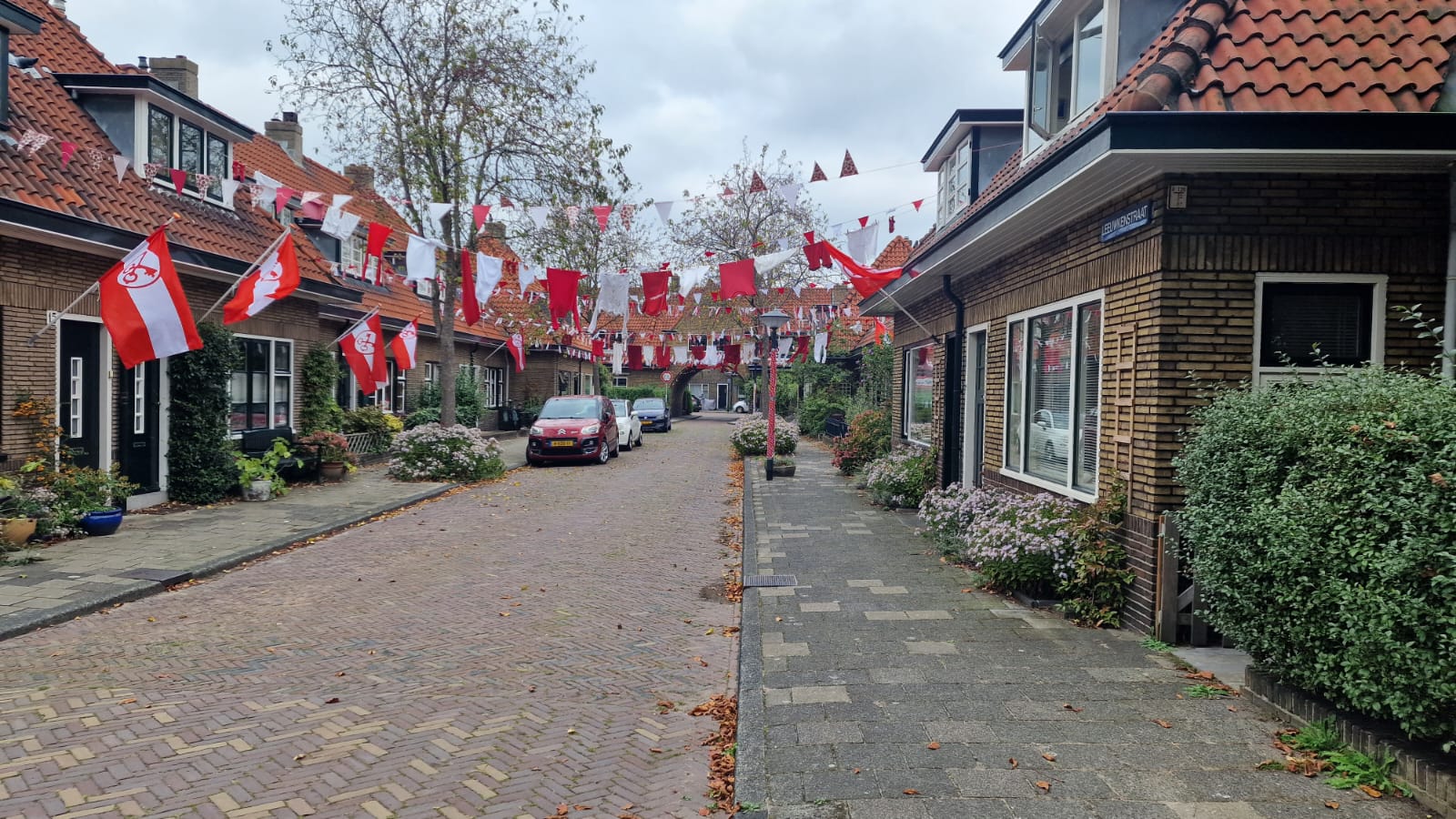 De Leeuwkenstraat in Leiden is de meest rood-witte straat van Leiden. Dat heeft de 3 October Vereeniging dinsdag bekendgemaakt tijdens een bijeenkomst in die straat. De straat heeft er een rood-wit straatnaambordje mee gewonnen.