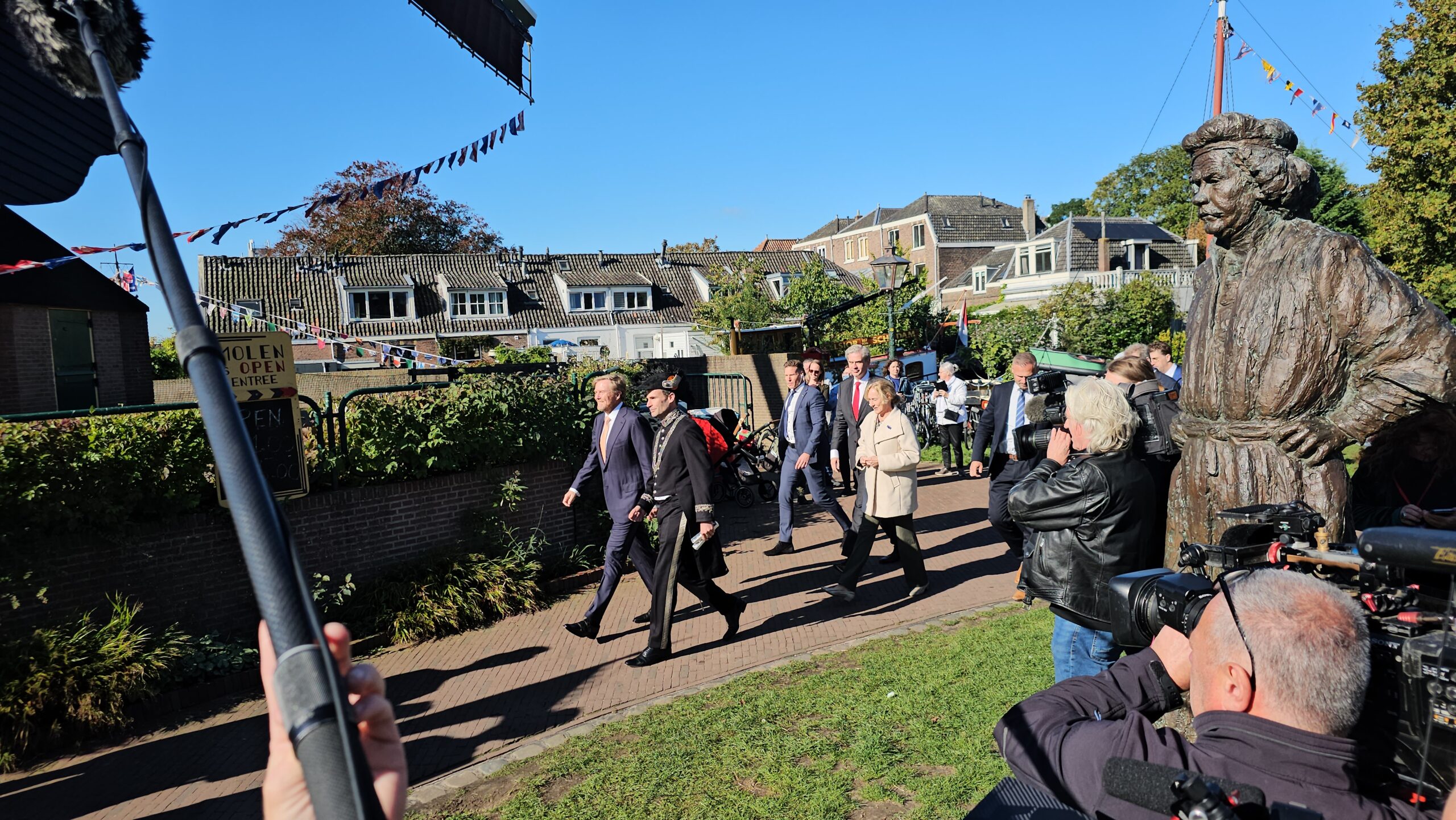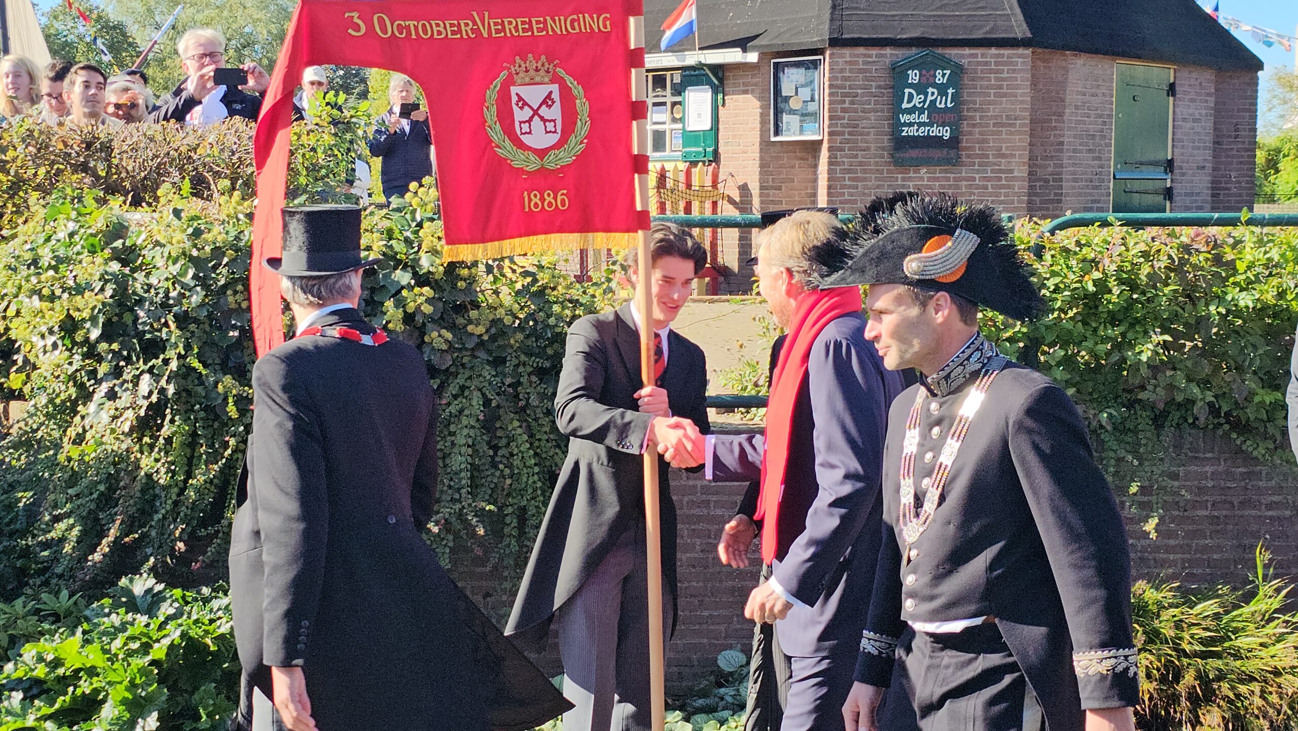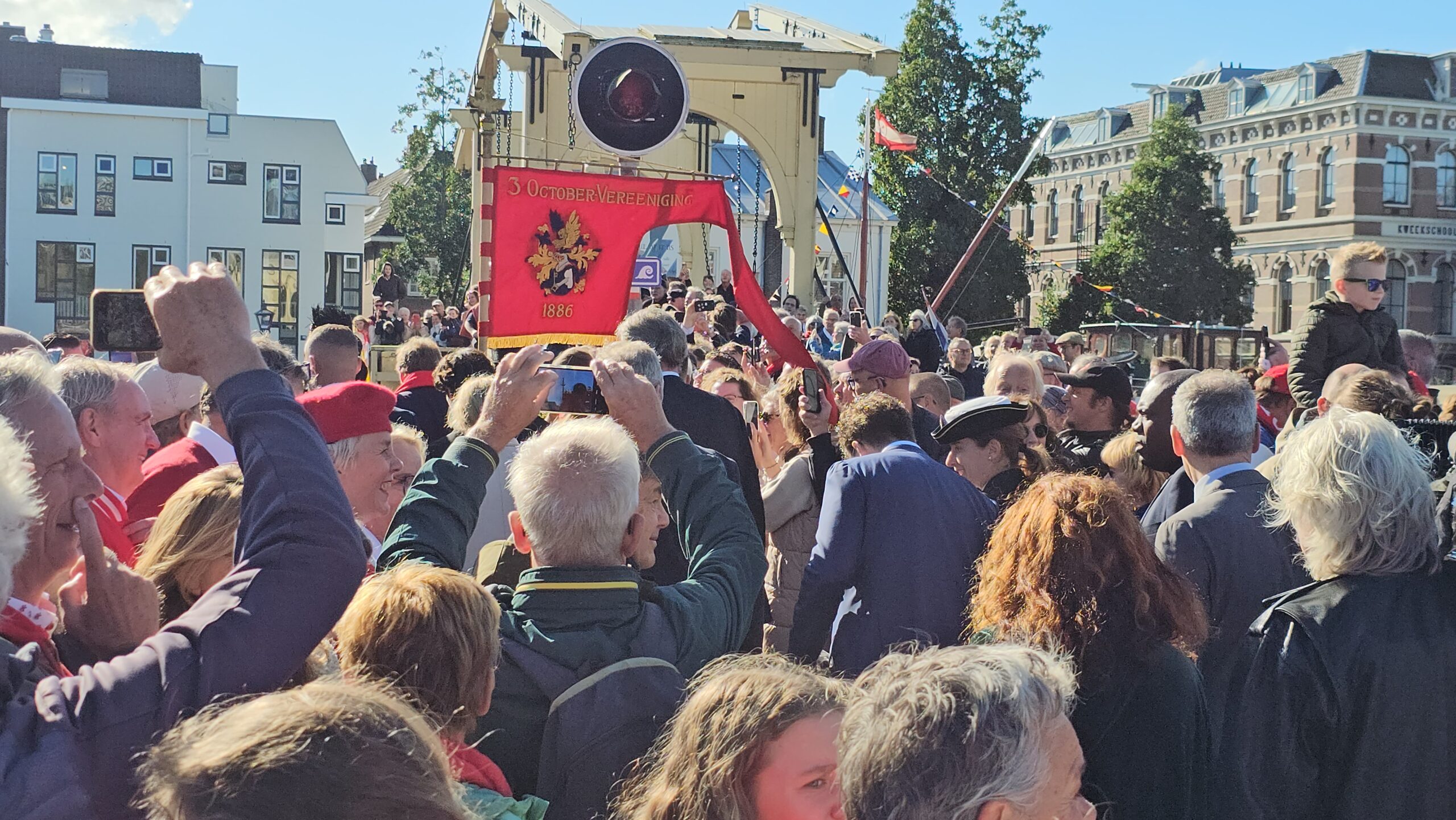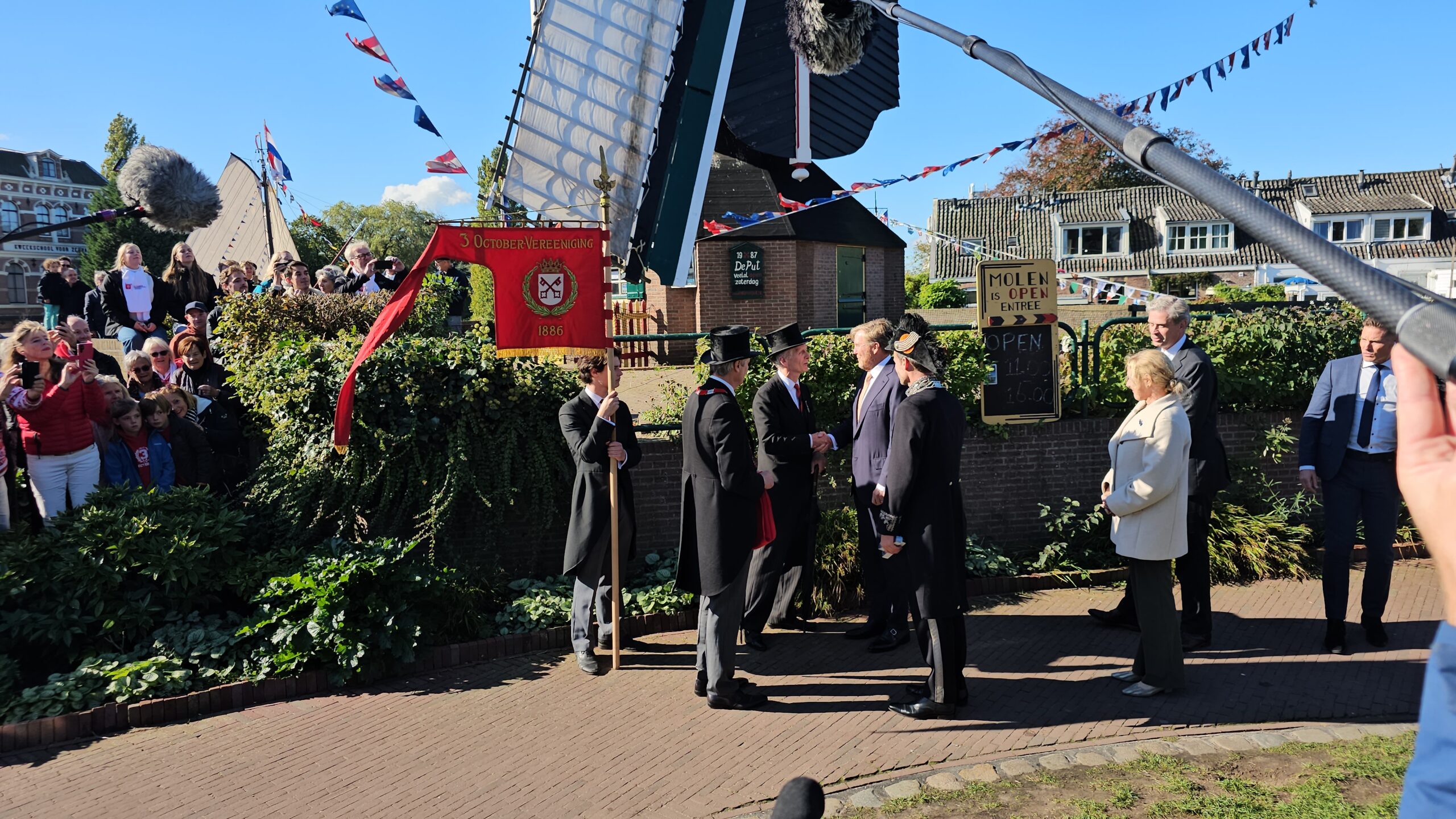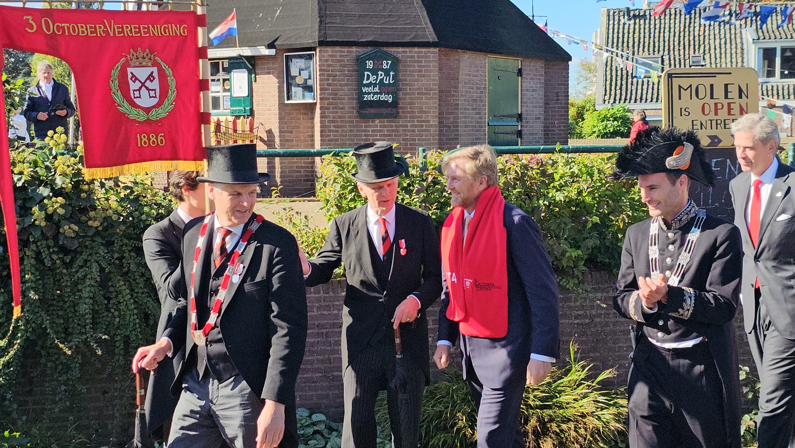 Daarna ging hij nog op de foto met de bruidsparen die vandaag speciaal op 3 oktober in het huwelijk traden en toen zat het bezoek er alweer op. De Koning vertrok en burgemeester Heijkoop en 3 oktober-voorzitter Rik Kamps haastten zich naar het begin van de optocht. De stoet begon daardoor iets later dan 13.00 uur.