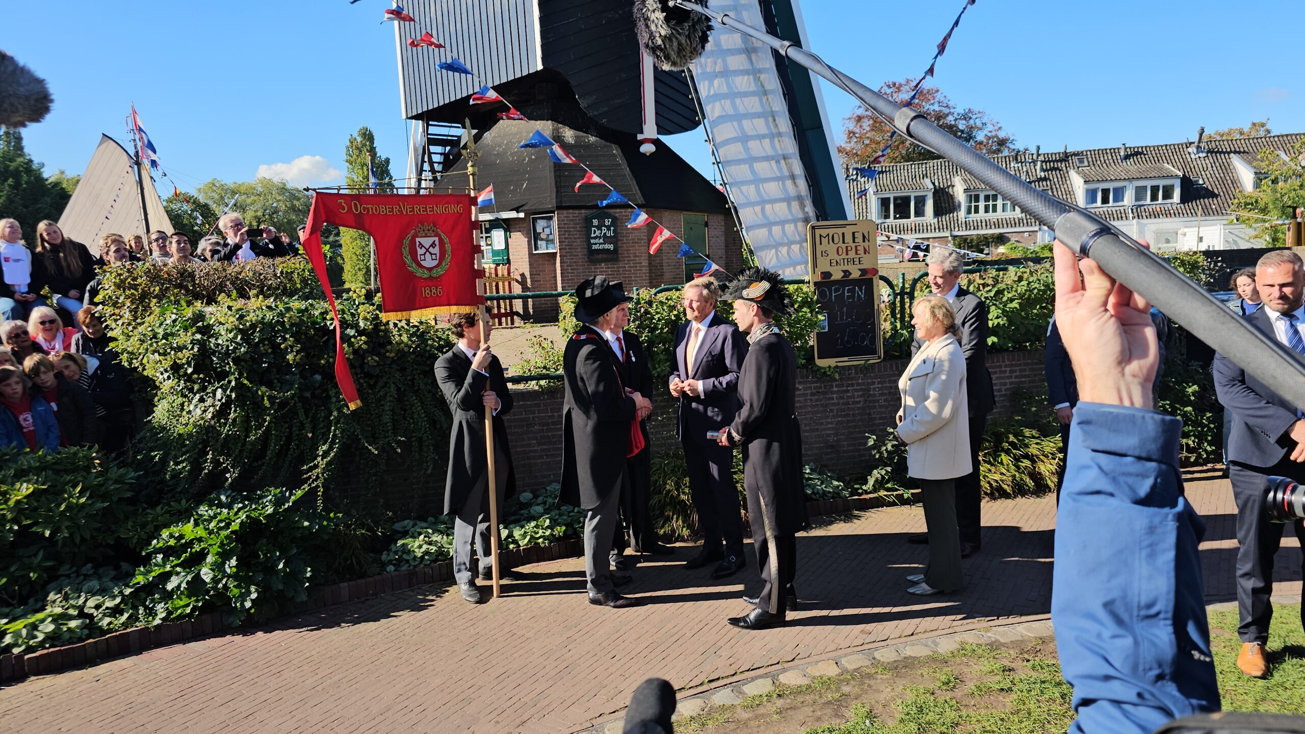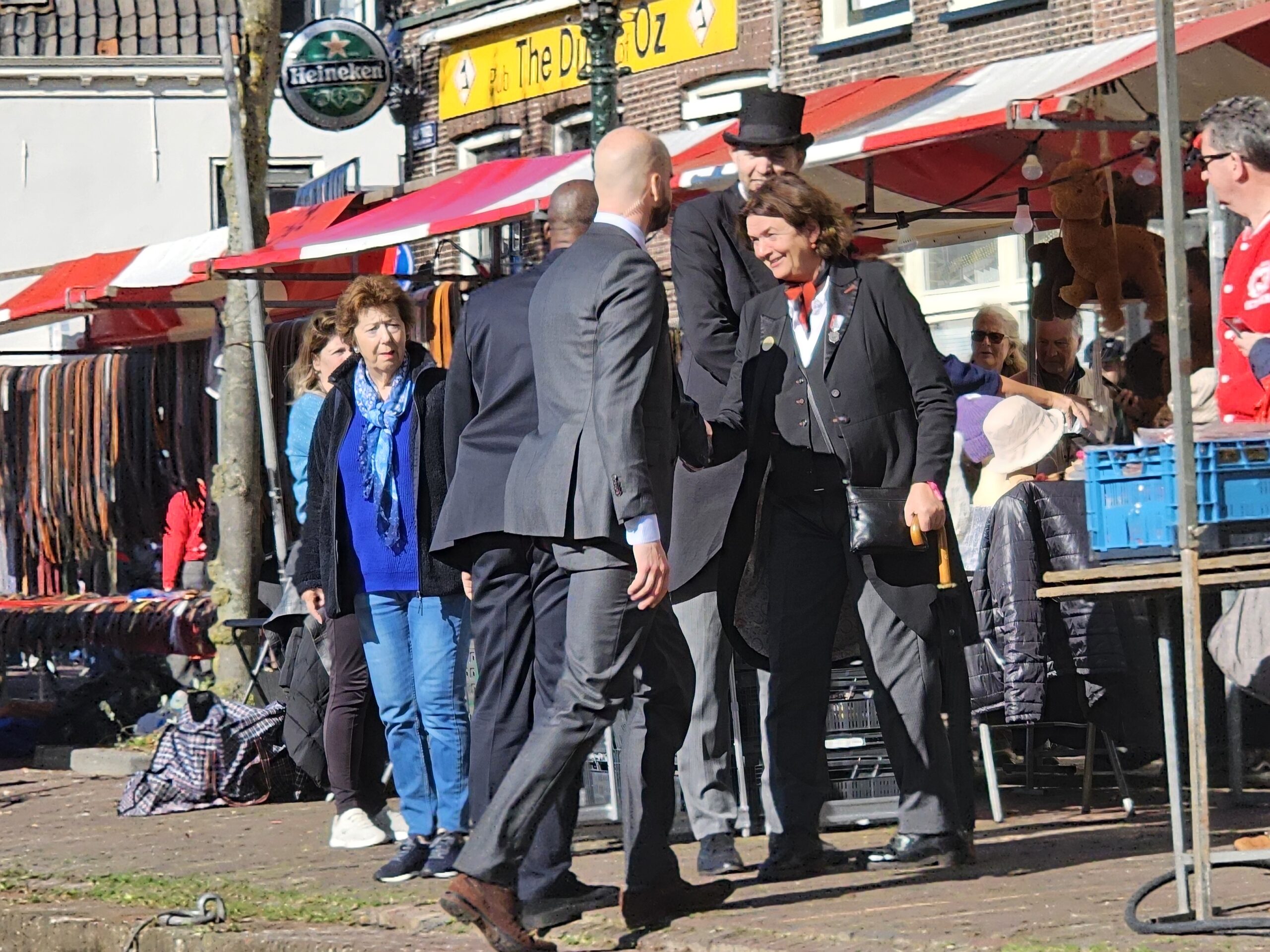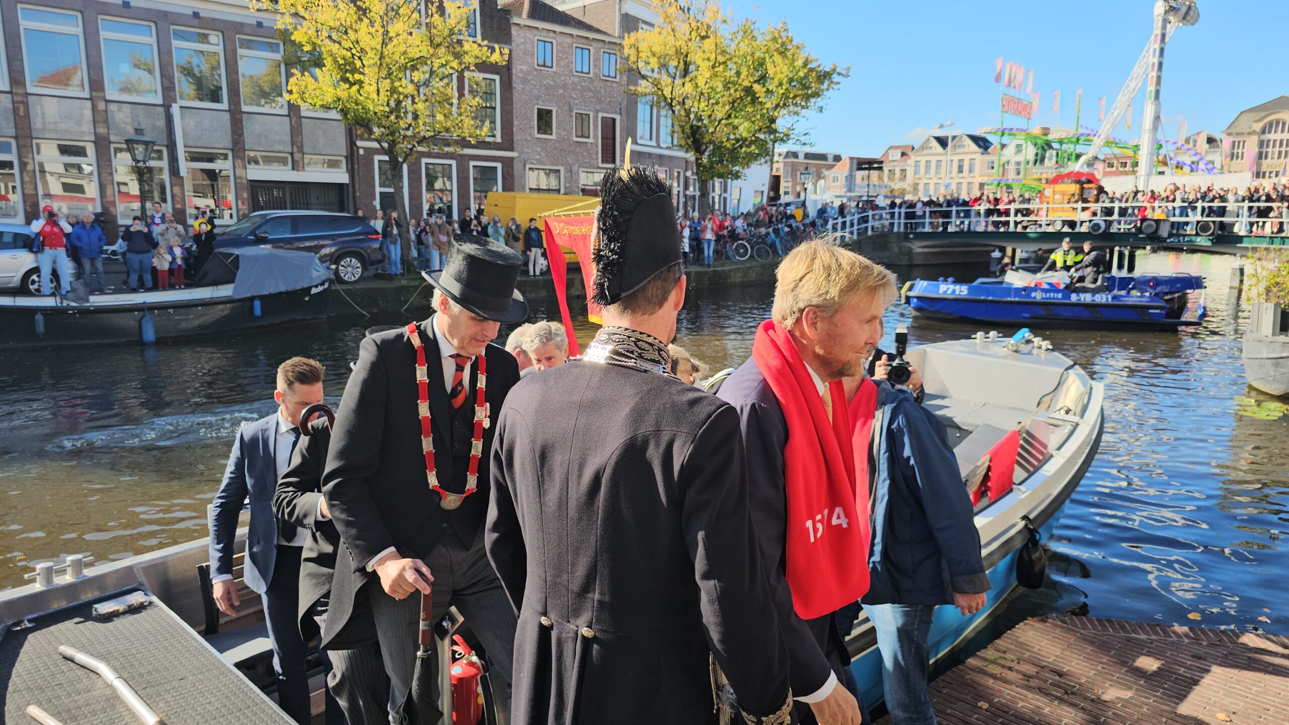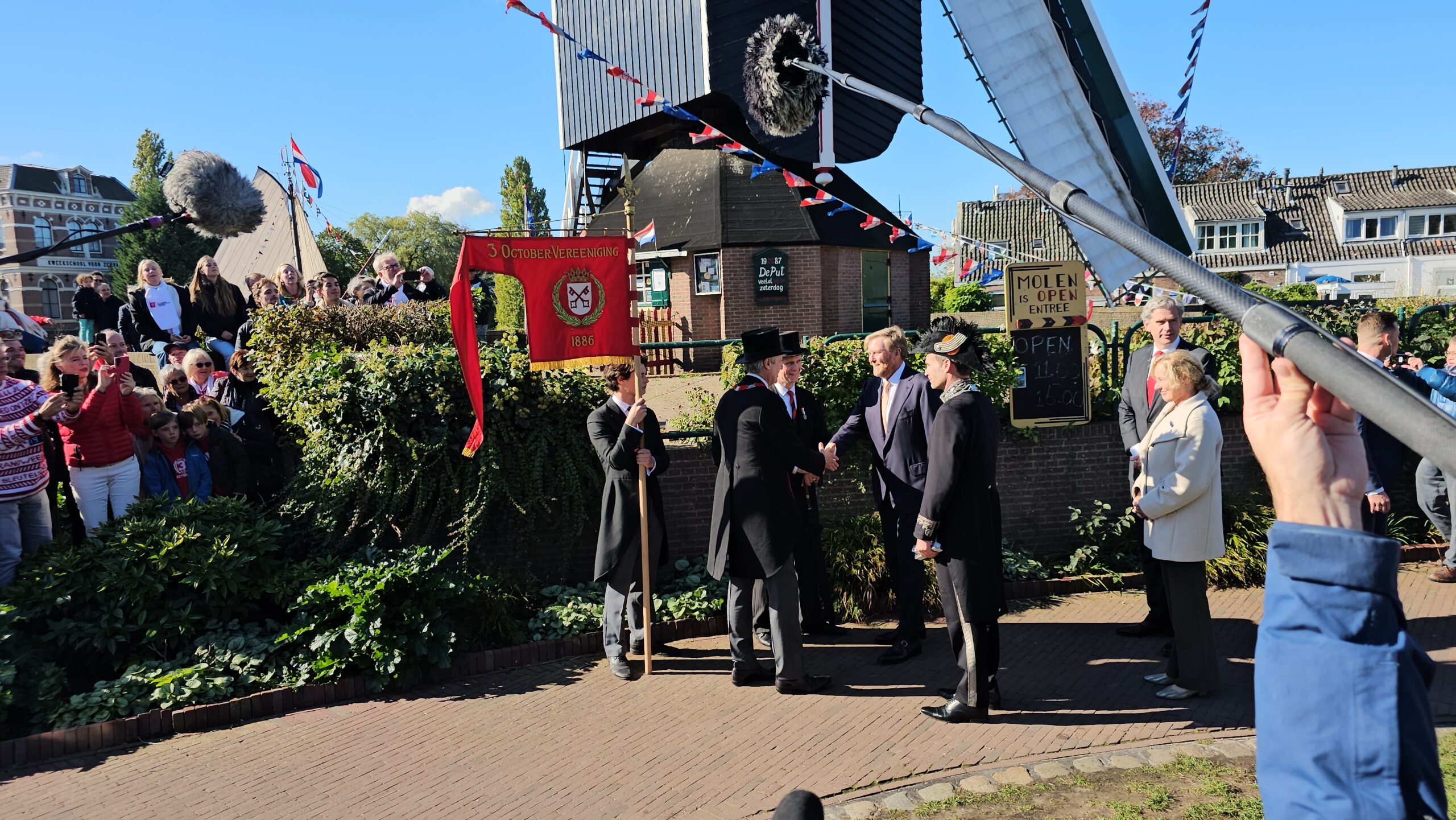 Daarna ging hij nog op de foto met de bruidsparen die vandaag speciaal op 3 oktober in het huwelijk traden en toen zat het bezoek er alweer op. De Koning vertrok en burgemeester Heijkoop en 3 oktober-voorzitter Rik Kamps haastten zich naar het begin van de optocht. De stoet begon daardoor iets later dan 13.00 uur.