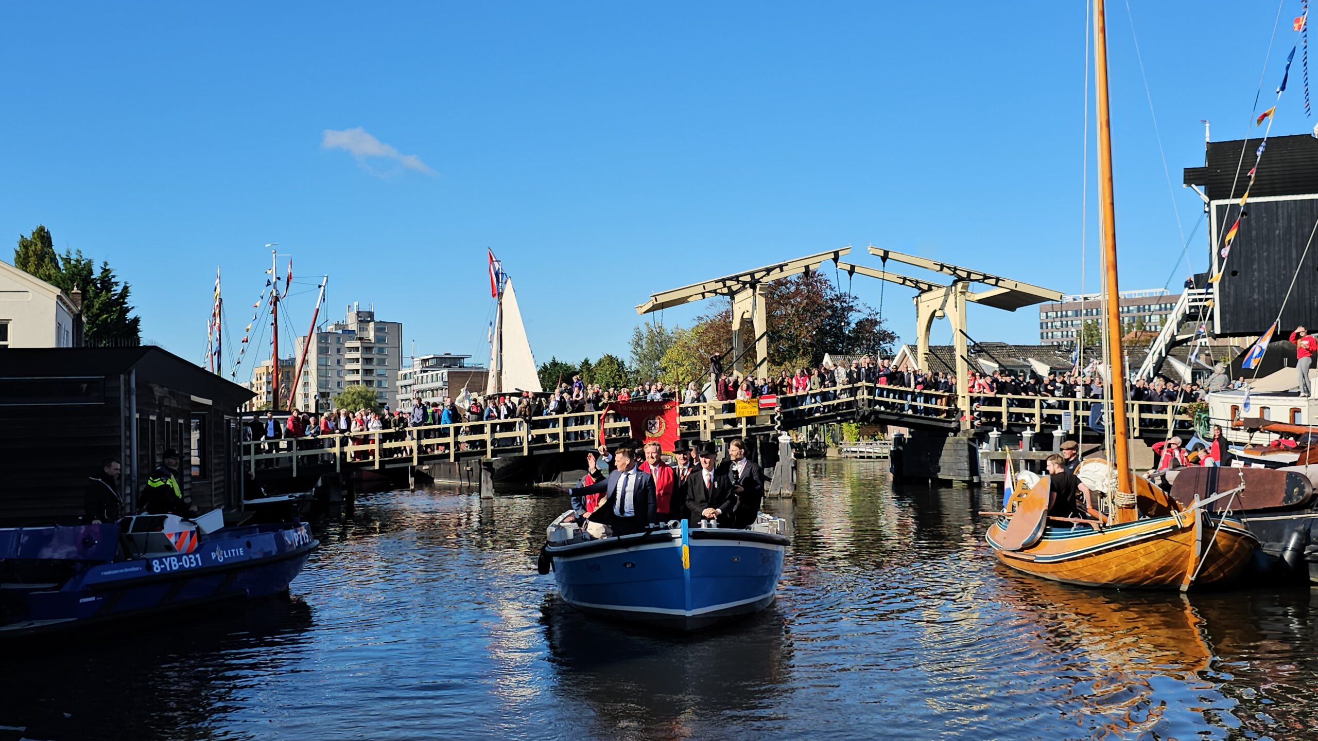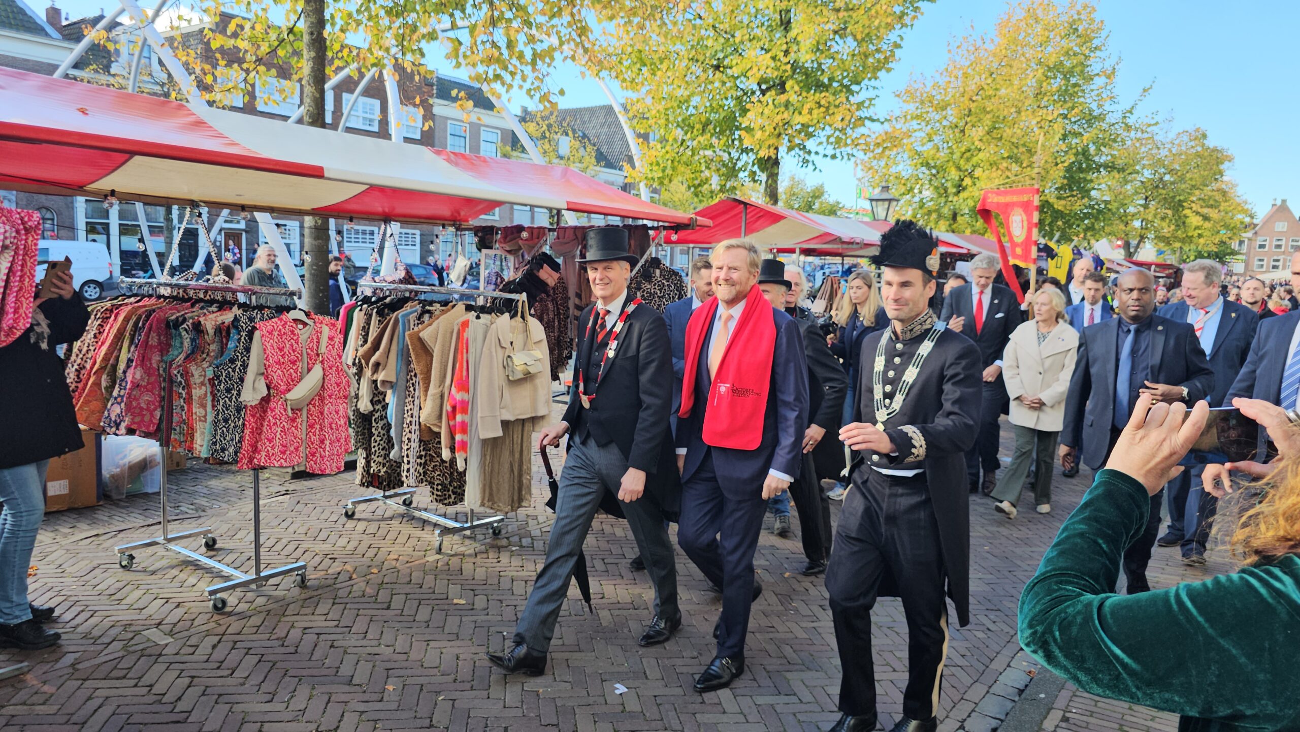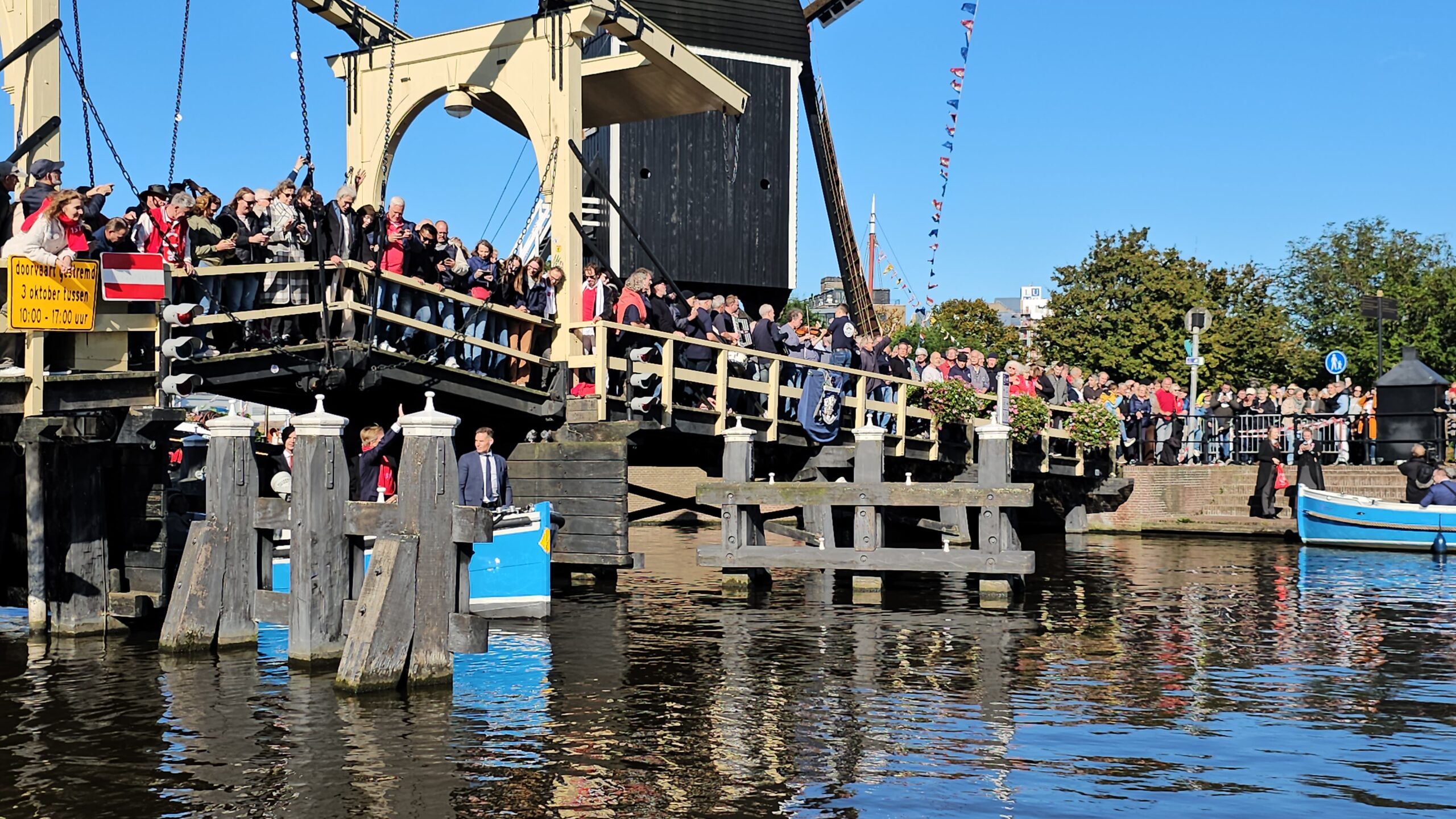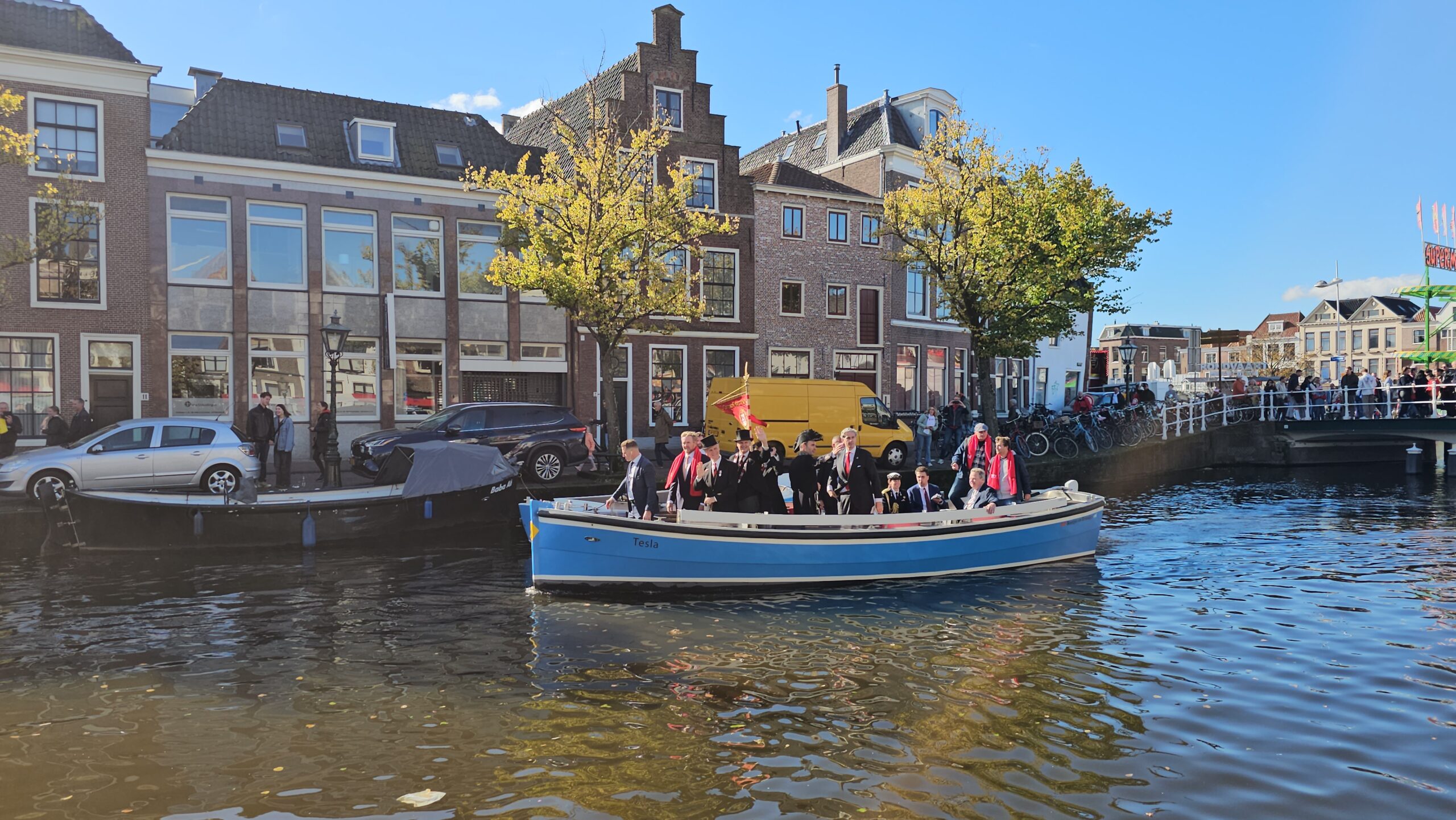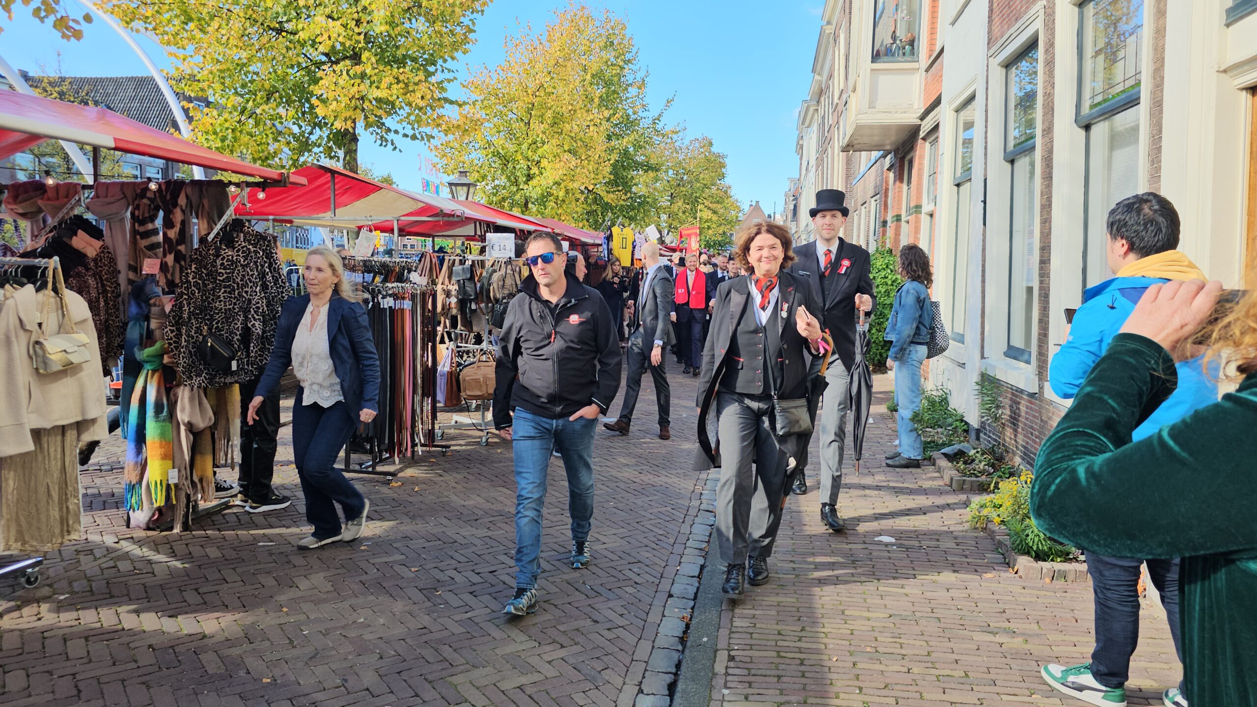 Daarna ging hij nog op de foto met de bruidsparen die vandaag speciaal op 3 oktober in het huwelijk traden en toen zat het bezoek er alweer op. De Koning vertrok en burgemeester Heijkoop en 3 oktober-voorzitter Rik Kamps haastten zich naar het begin van de optocht. De stoet begon daardoor iets later dan 13.00 uur.