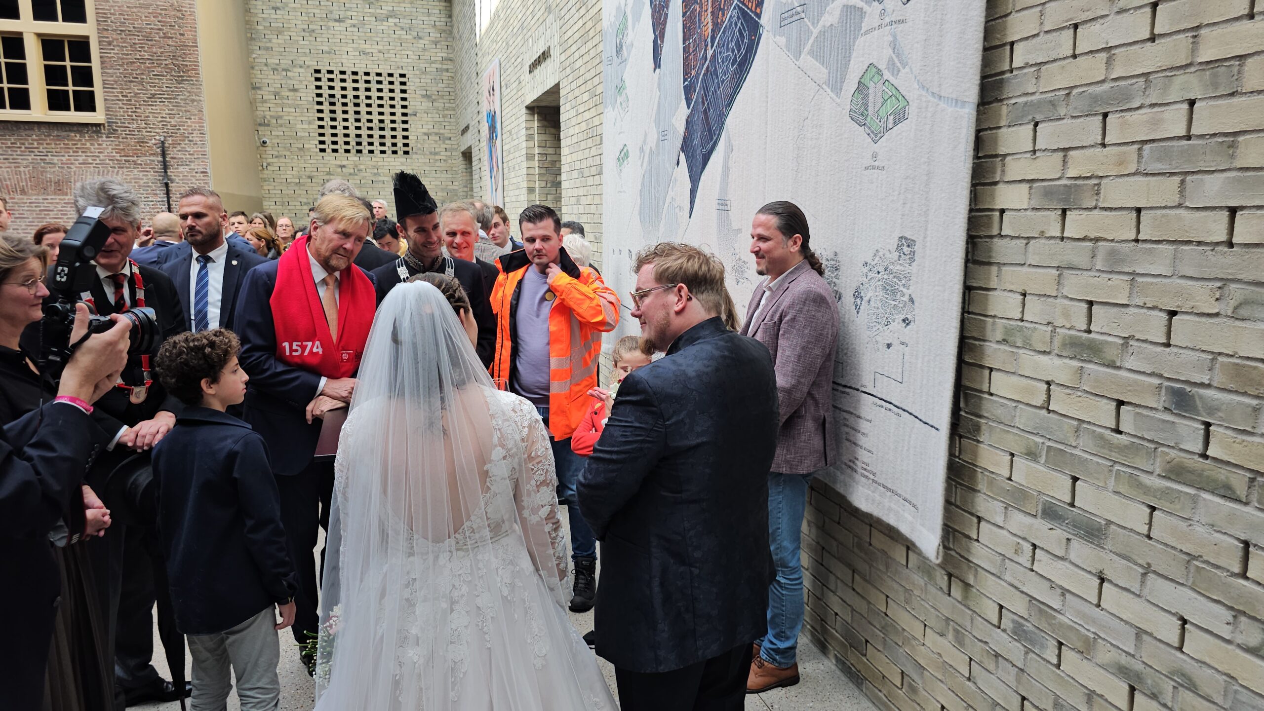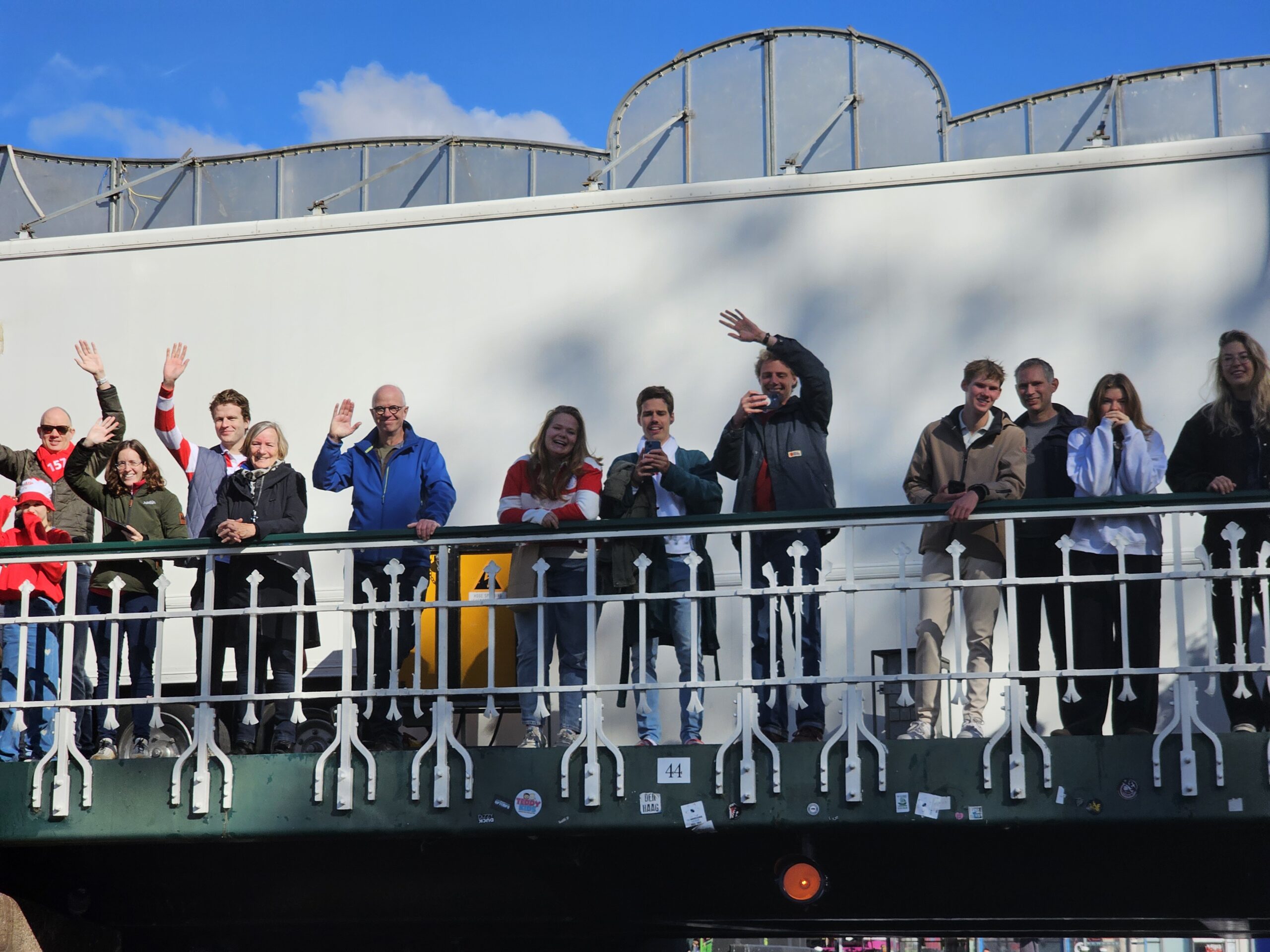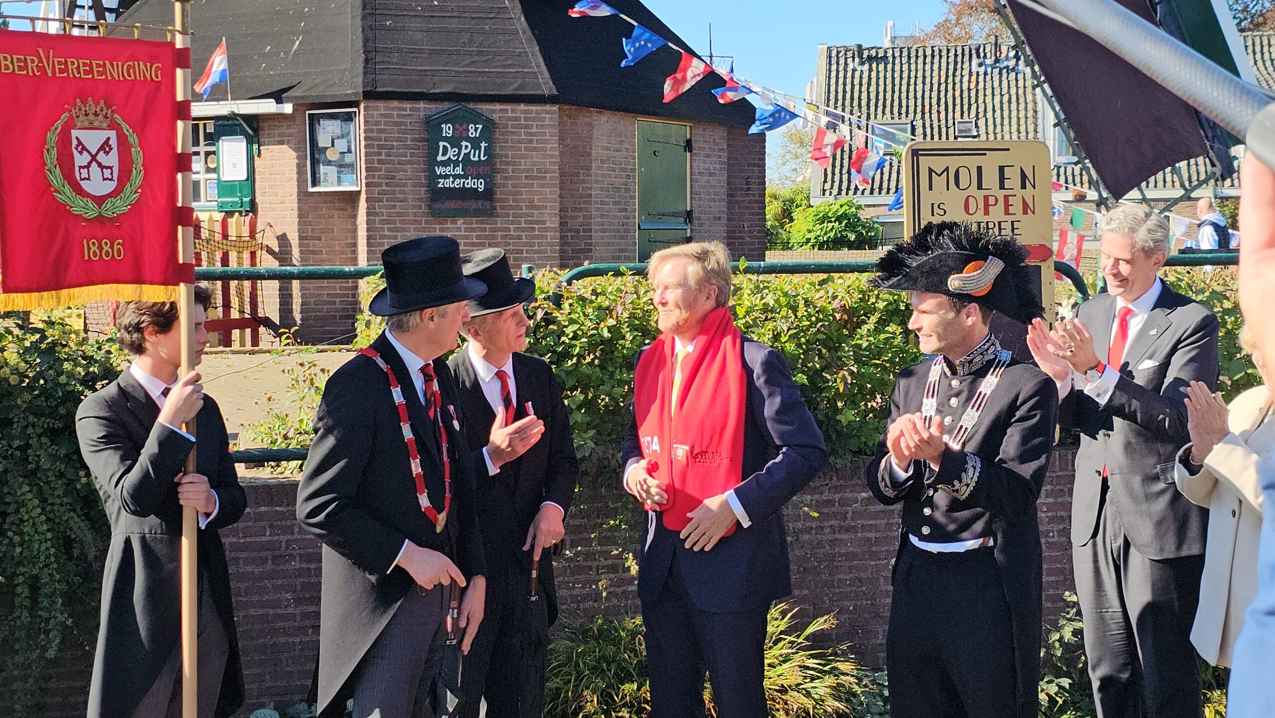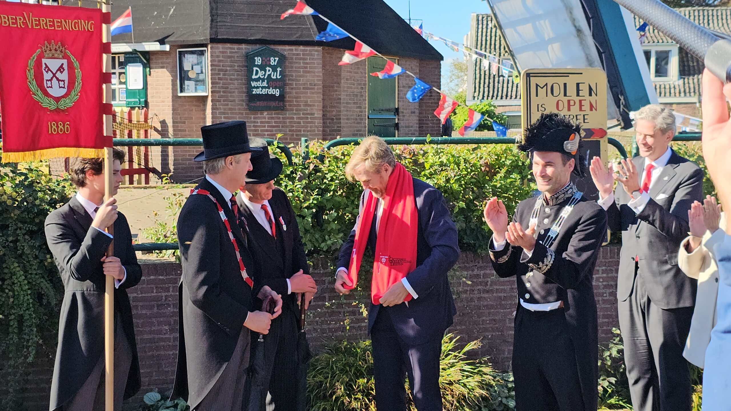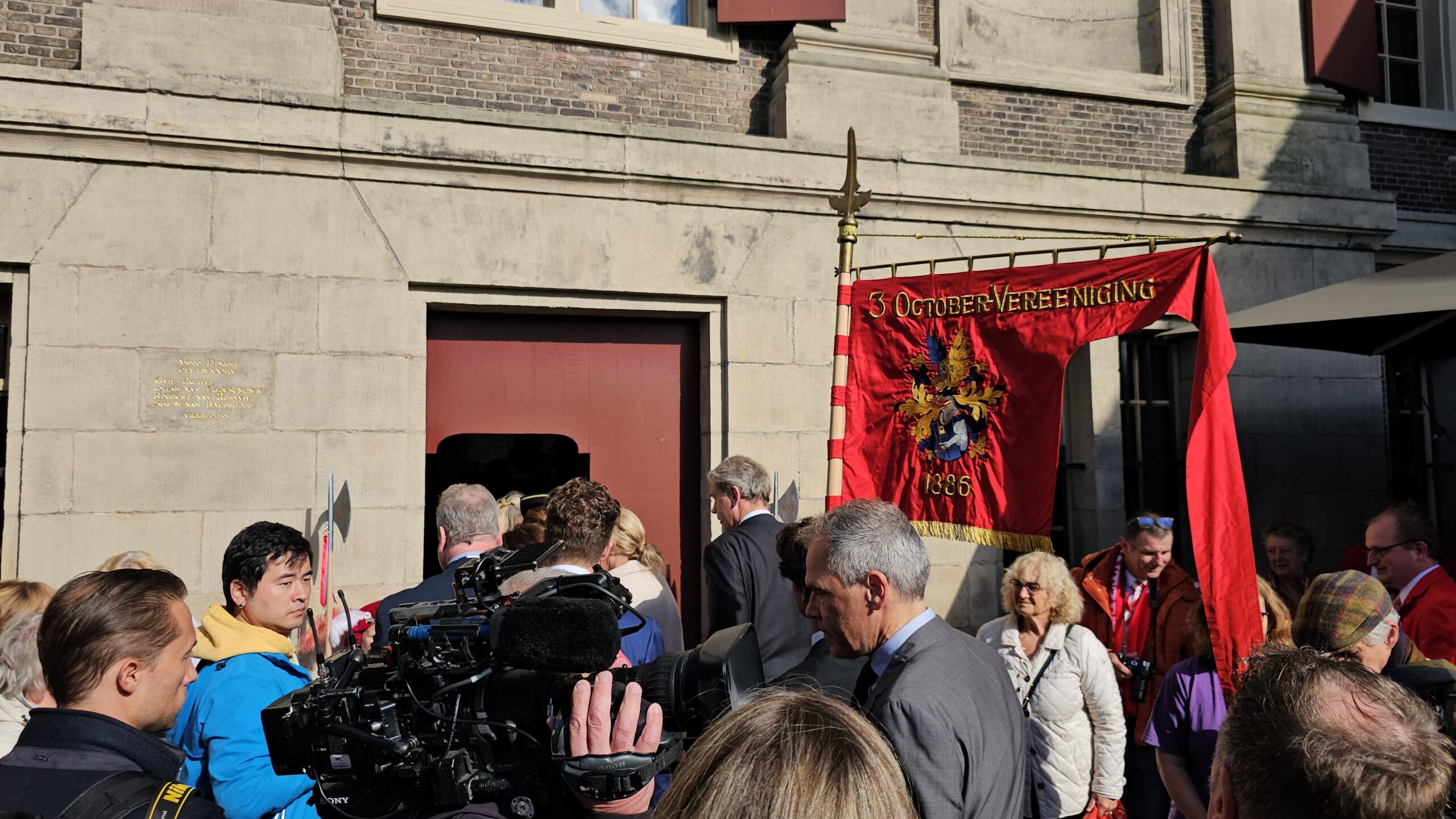 Daarna ging hij nog op de foto met de bruidsparen die vandaag speciaal op 3 oktober in het huwelijk traden en toen zat het bezoek er alweer op. De Koning vertrok en burgemeester Heijkoop en 3 oktober-voorzitter Rik Kamps haastten zich naar het begin van de optocht. De stoet begon daardoor iets later dan 13.00 uur.