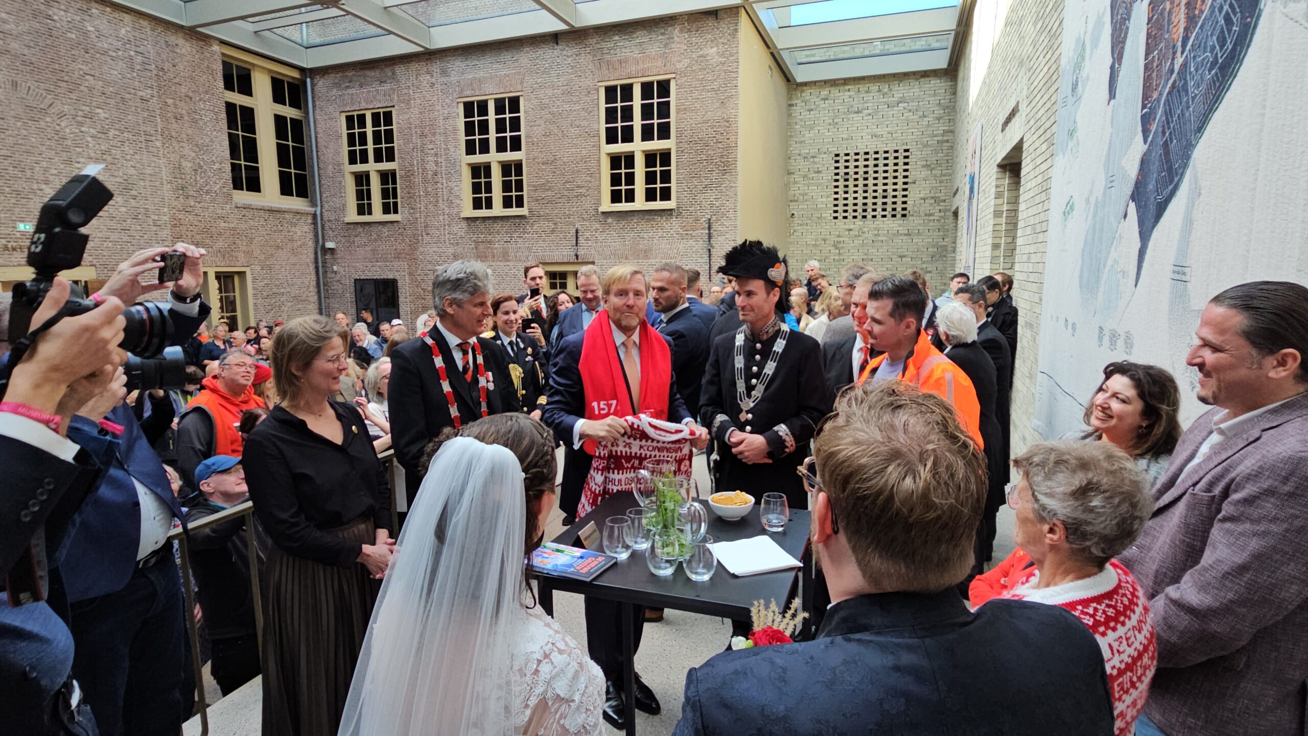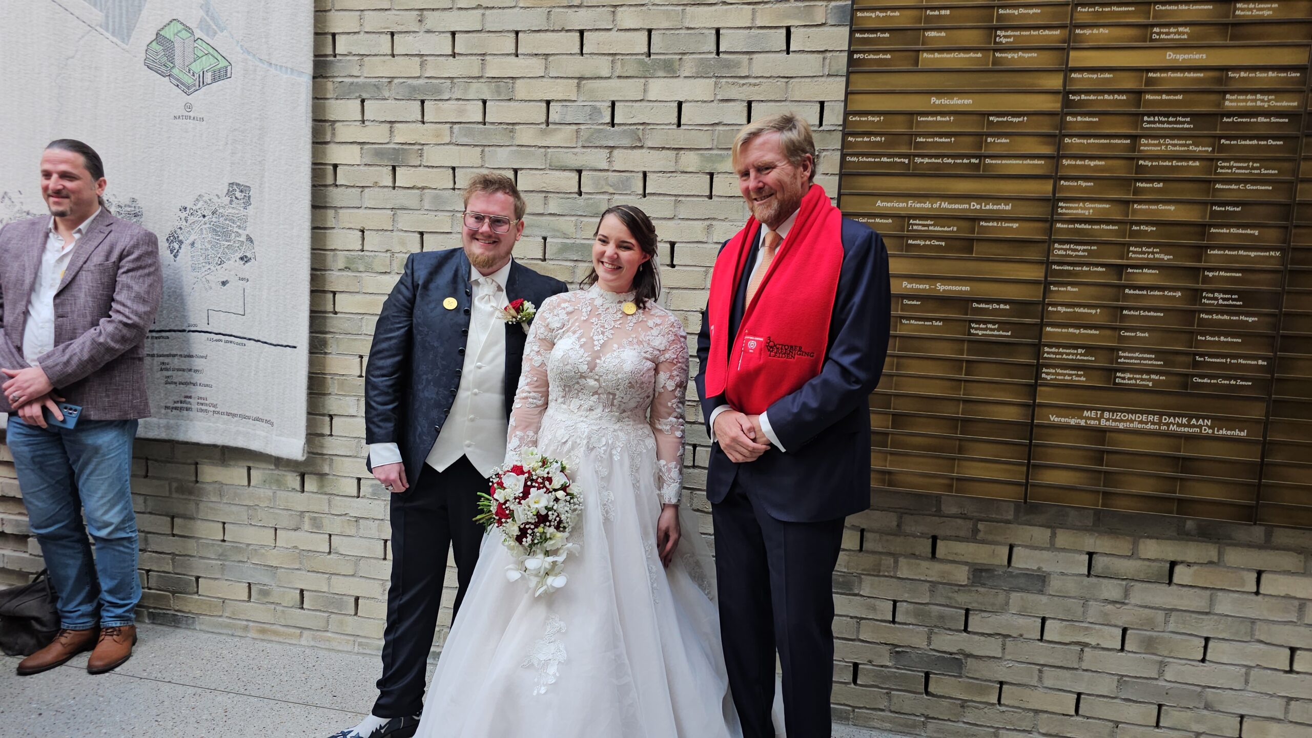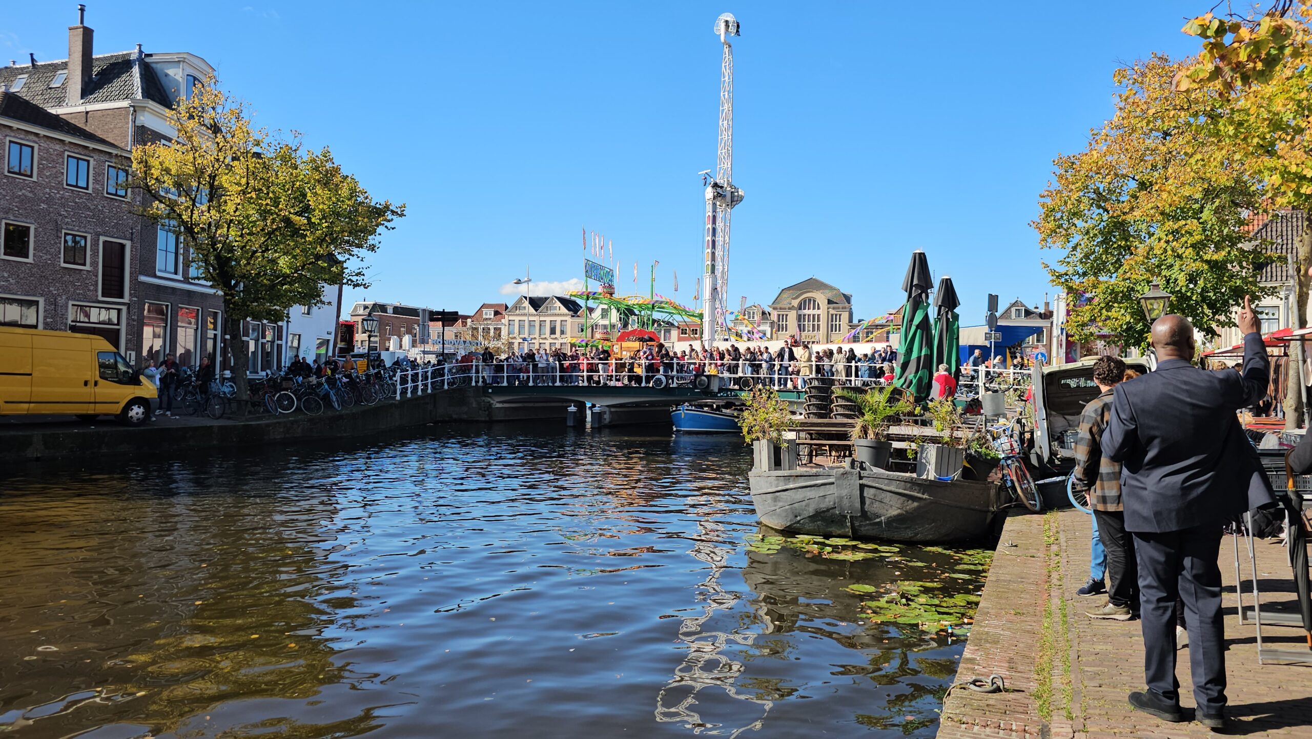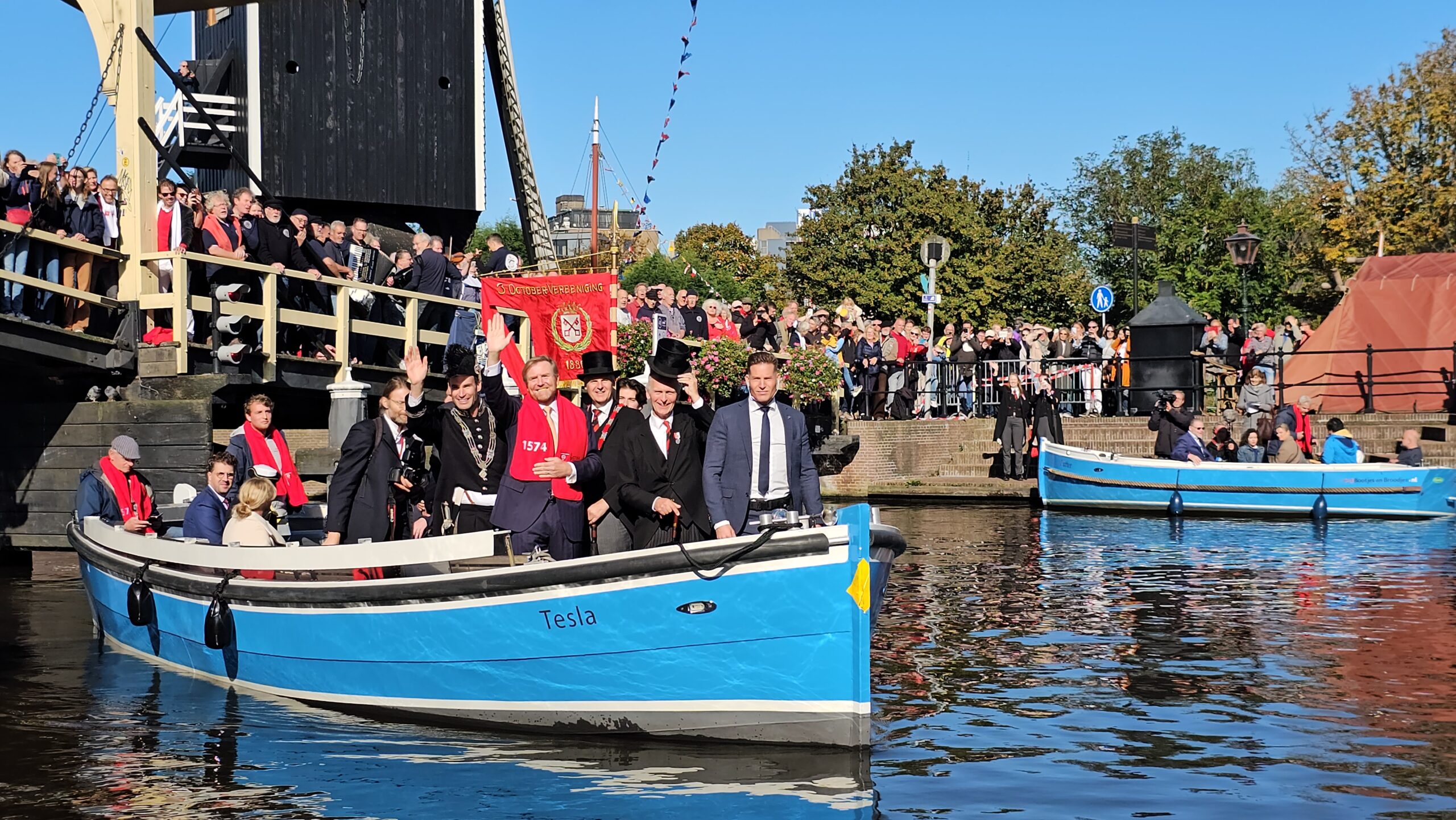 Daarna ging hij nog op de foto met de bruidsparen die vandaag speciaal op 3 oktober in het huwelijk traden en toen zat het bezoek er alweer op. De Koning vertrok en burgemeester Heijkoop en 3 oktober-voorzitter Rik Kamps haastten zich naar het begin van de optocht. De stoet begon daardoor iets later dan 13.00 uur.
