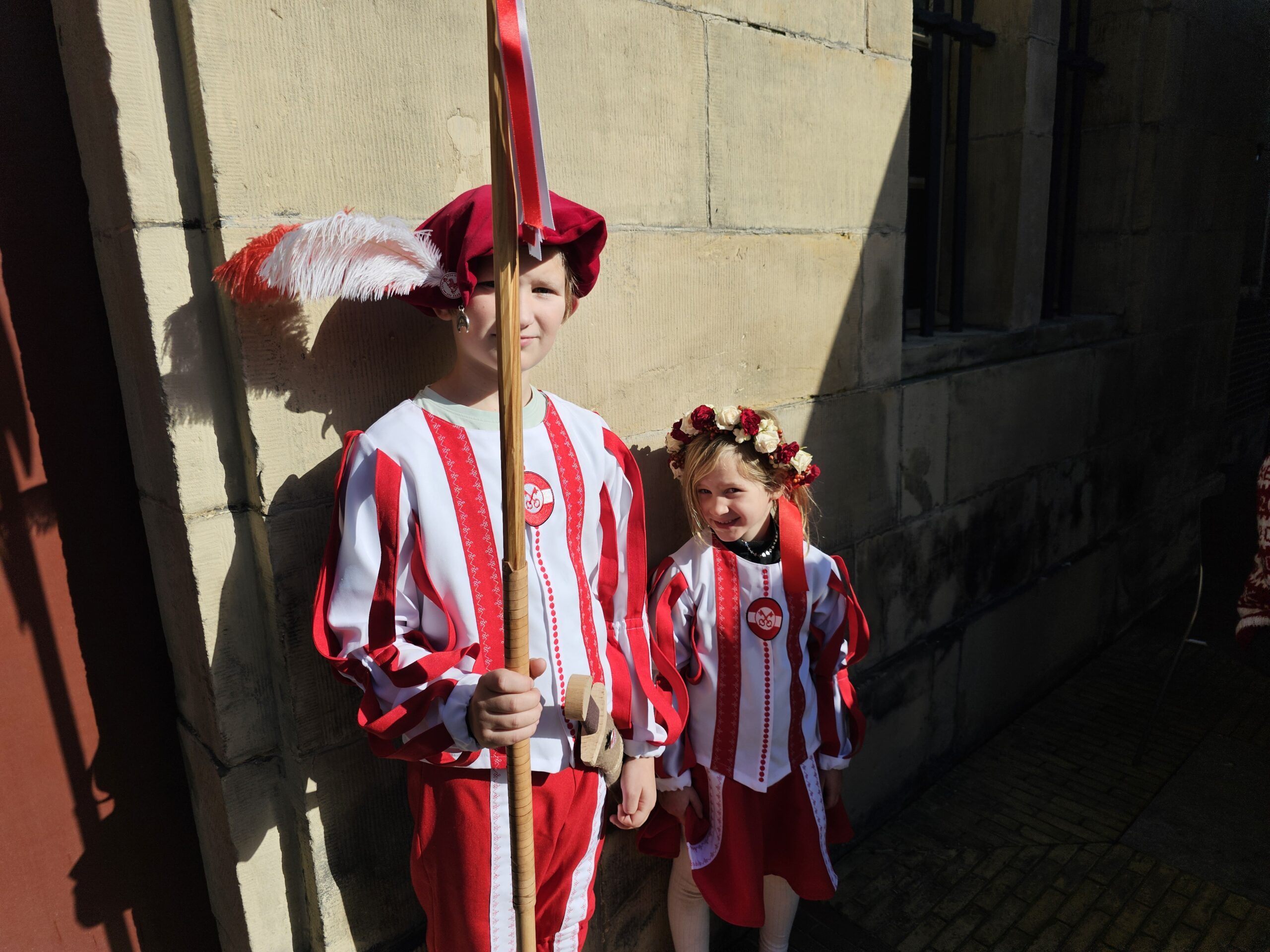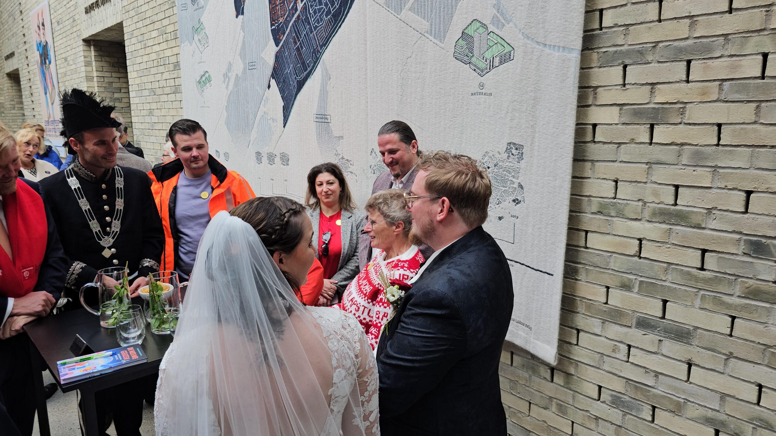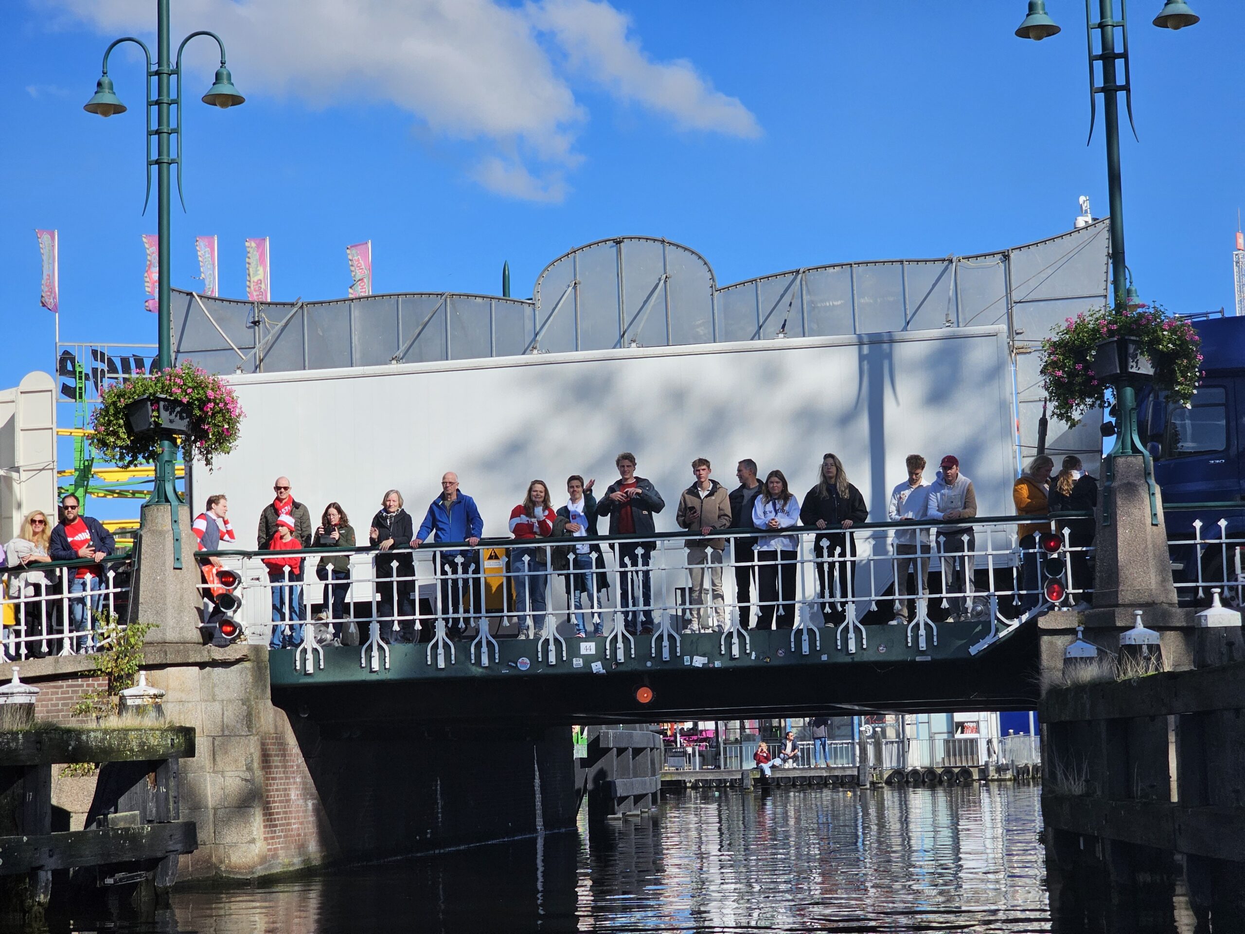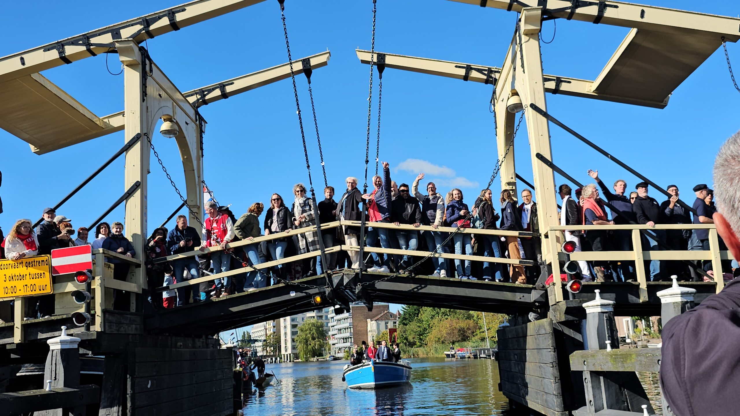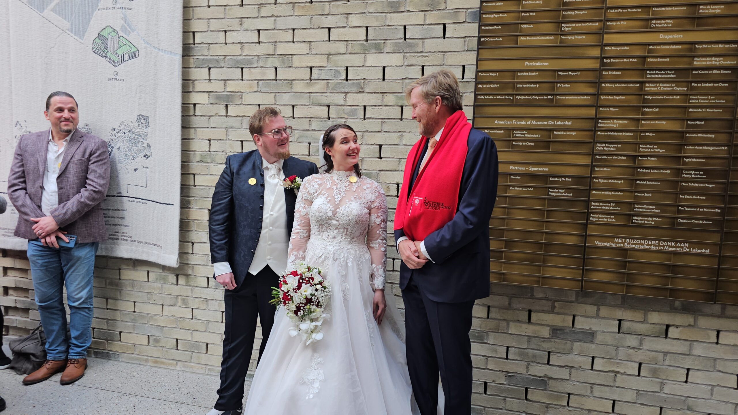 Daarna ging hij nog op de foto met de bruidsparen die vandaag speciaal op 3 oktober in het huwelijk traden en toen zat het bezoek er alweer op. De Koning vertrok en burgemeester Heijkoop en 3 oktober-voorzitter Rik Kamps haastten zich naar het begin van de optocht. De stoet begon daardoor iets later dan 13.00 uur.