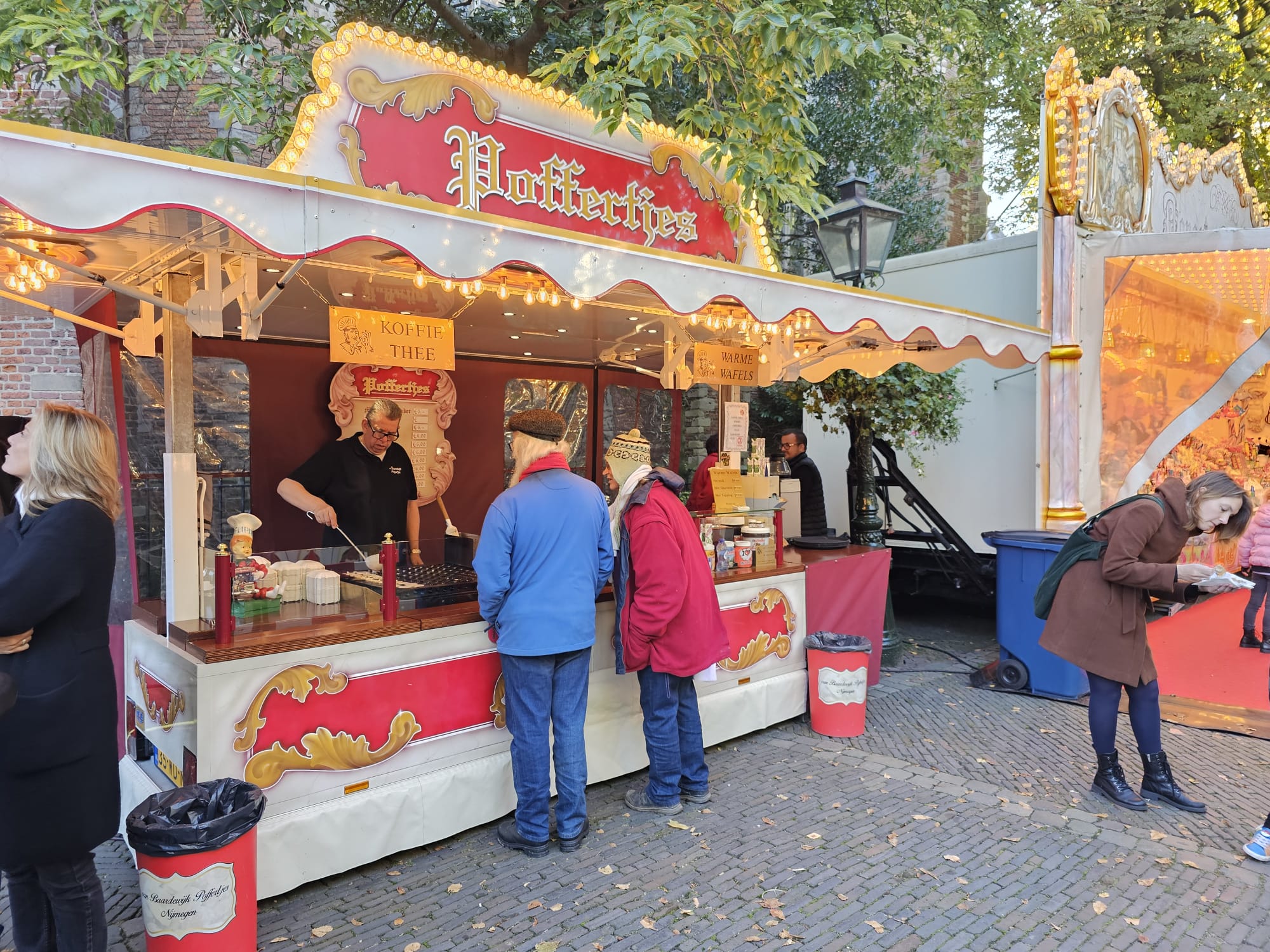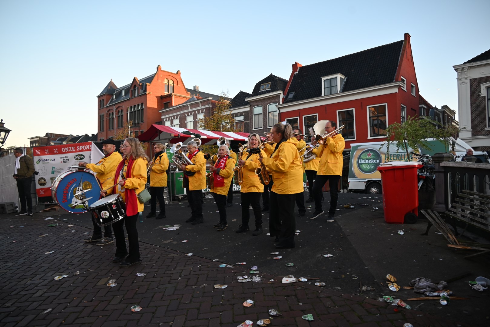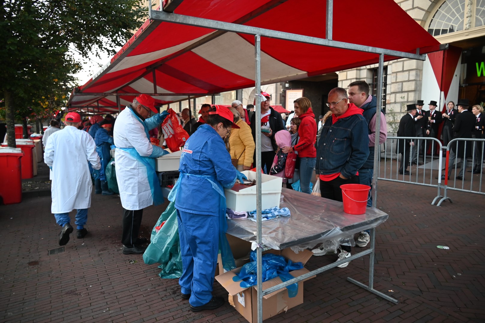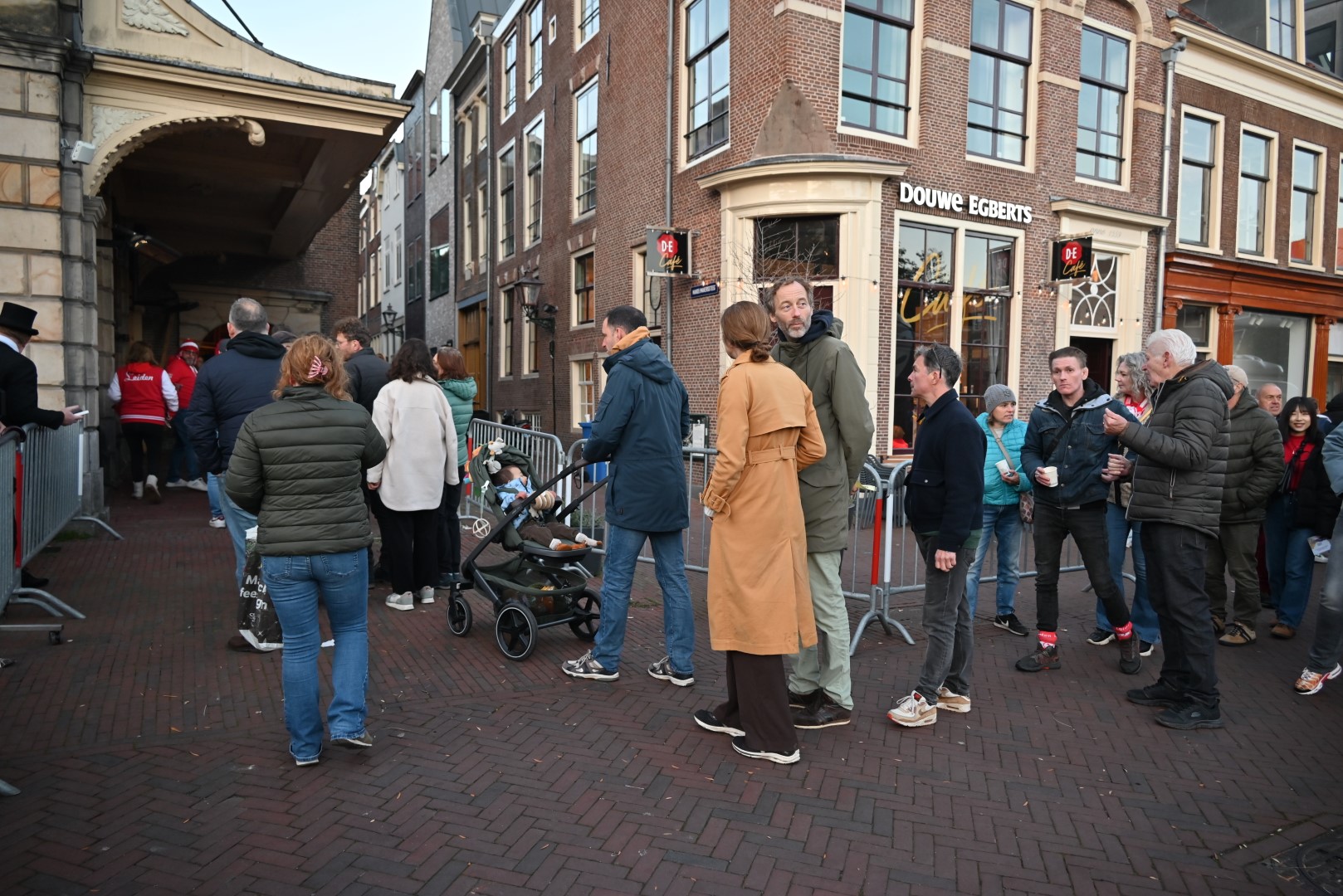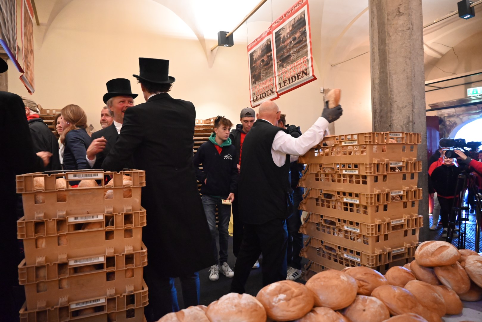 Na een goed kwartier is de dagopening klaar en duikt een deel van de vroege zangers een koffietentje in voor ontbijt en gaan anderen naar de Waag om daar hun ontbijt op te halen: haring en wittebrood. De rij is aanzienlijk, maar het loopt ook lekker door. En de sfeer is opperbest. “We halen elk jaar haring en wittebrood”, zegt een man die met zijn vrouw in de rij staat, een emmertje in de hand. “Ik doe dit voor de eerste keer”, zegt een vrouw verderop in de rij, “ik woon al jaren in Leiden, maar eerder kwam het er niet van. Misschien wel een beetje omdat het nu 450 jaar Leidens Ontzet is.”