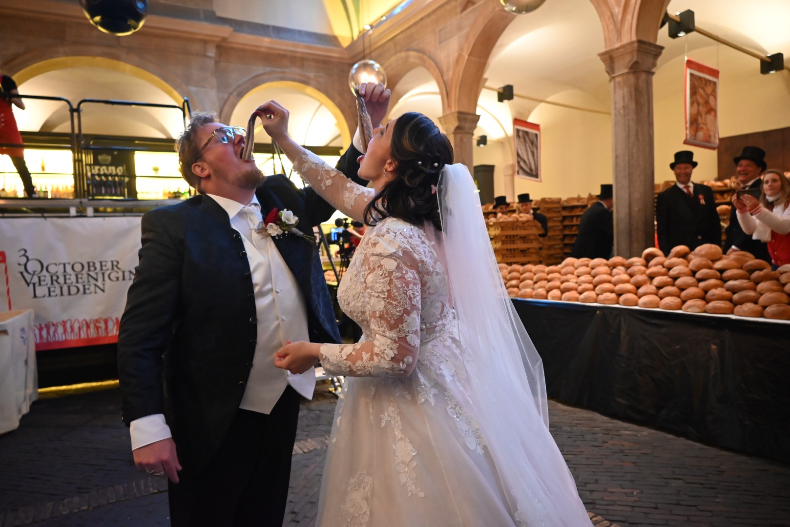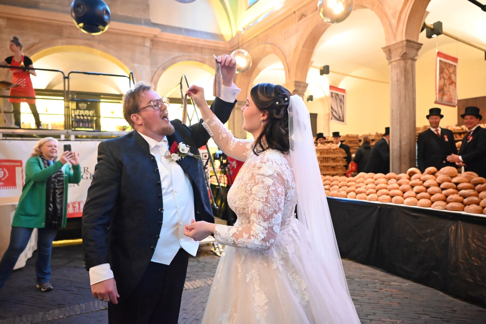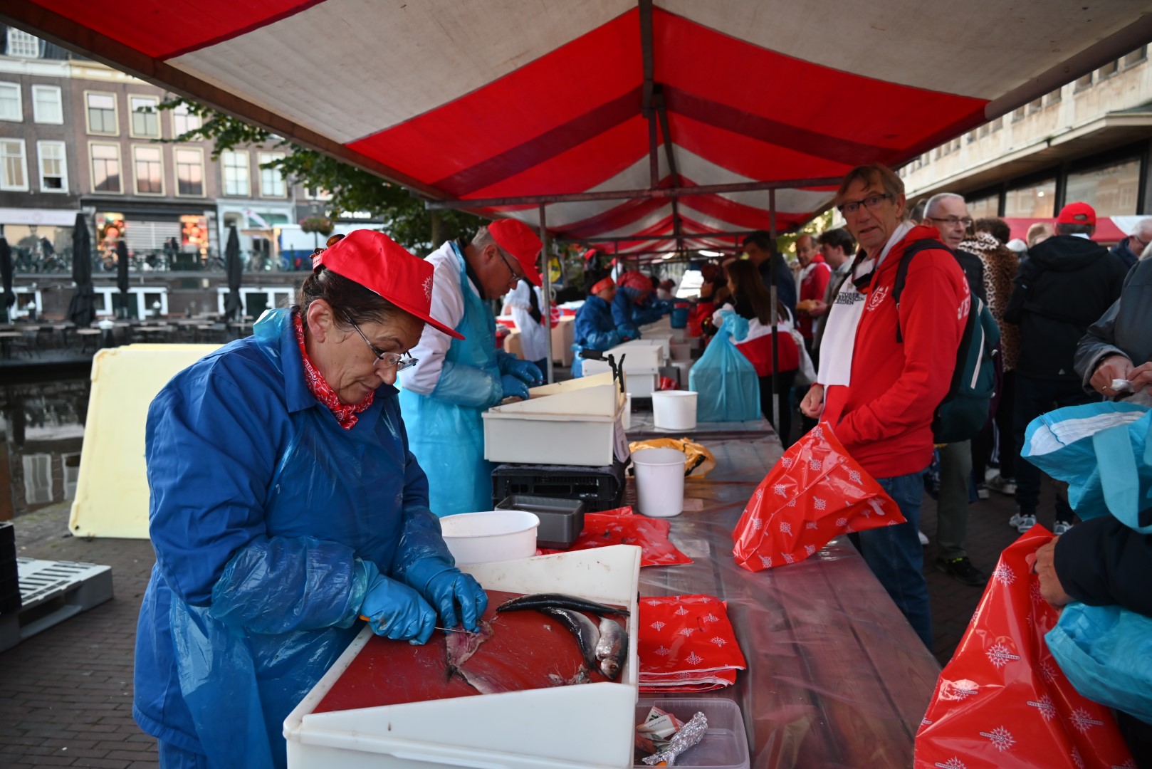Bij de Waag gaat het haring en wittebrood uitdelen dan nog gestaag door. Sommige mensen doen dat al heel lang. Zoals Oscar Langezaal en Renée Persijn. Samen goed voor 75 jaar ervaring. Zij kregen de gouden en bronzen haring uitgereikt.