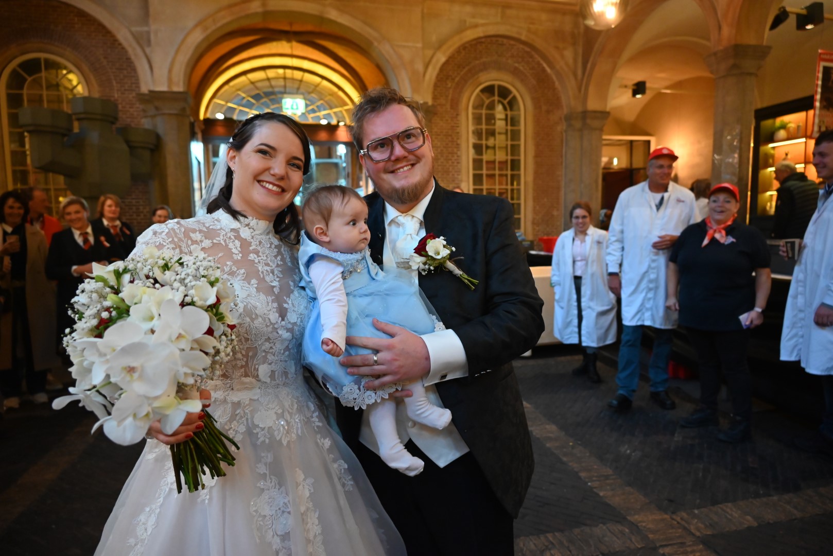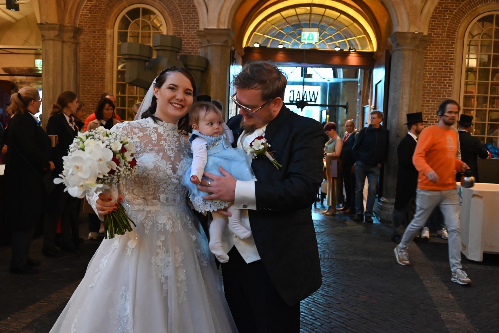 Een reportage bij de Waag van verslaggeefster Gerry van Bakel over ontbijten met haring en wittebrood en het wachten van de bruid.