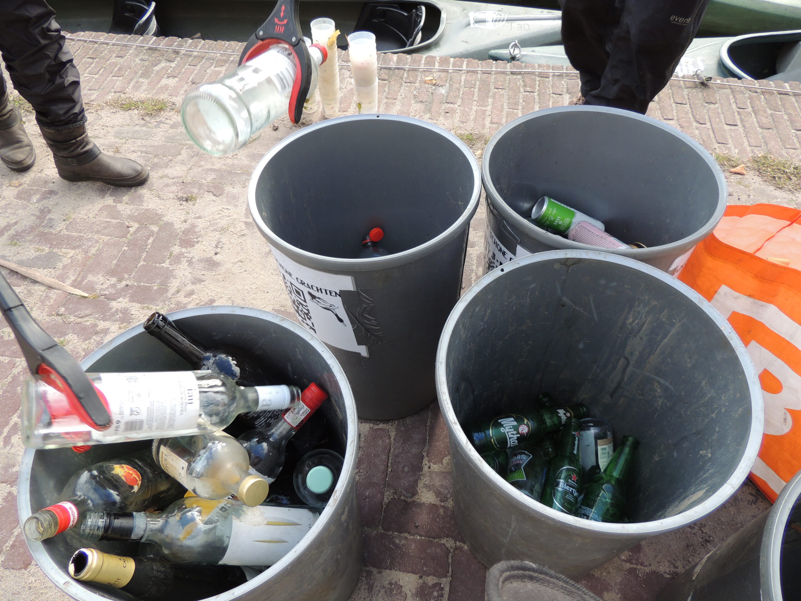Dankzij de statiegeldbekers ligt Leiden na een feest als Leidens Ontzet niet meer dik bezaaid met kapotte plastic wegwerpbekers, maar er belandt nog altijd ‘genoeg’ rommel in de grachten en singels van de stad. Elke zondagochtend gaan vrijwilligers van de Grachtwacht vuil ophalen. De oogst omvat kermisknuffels, blikjes en glaswerk.