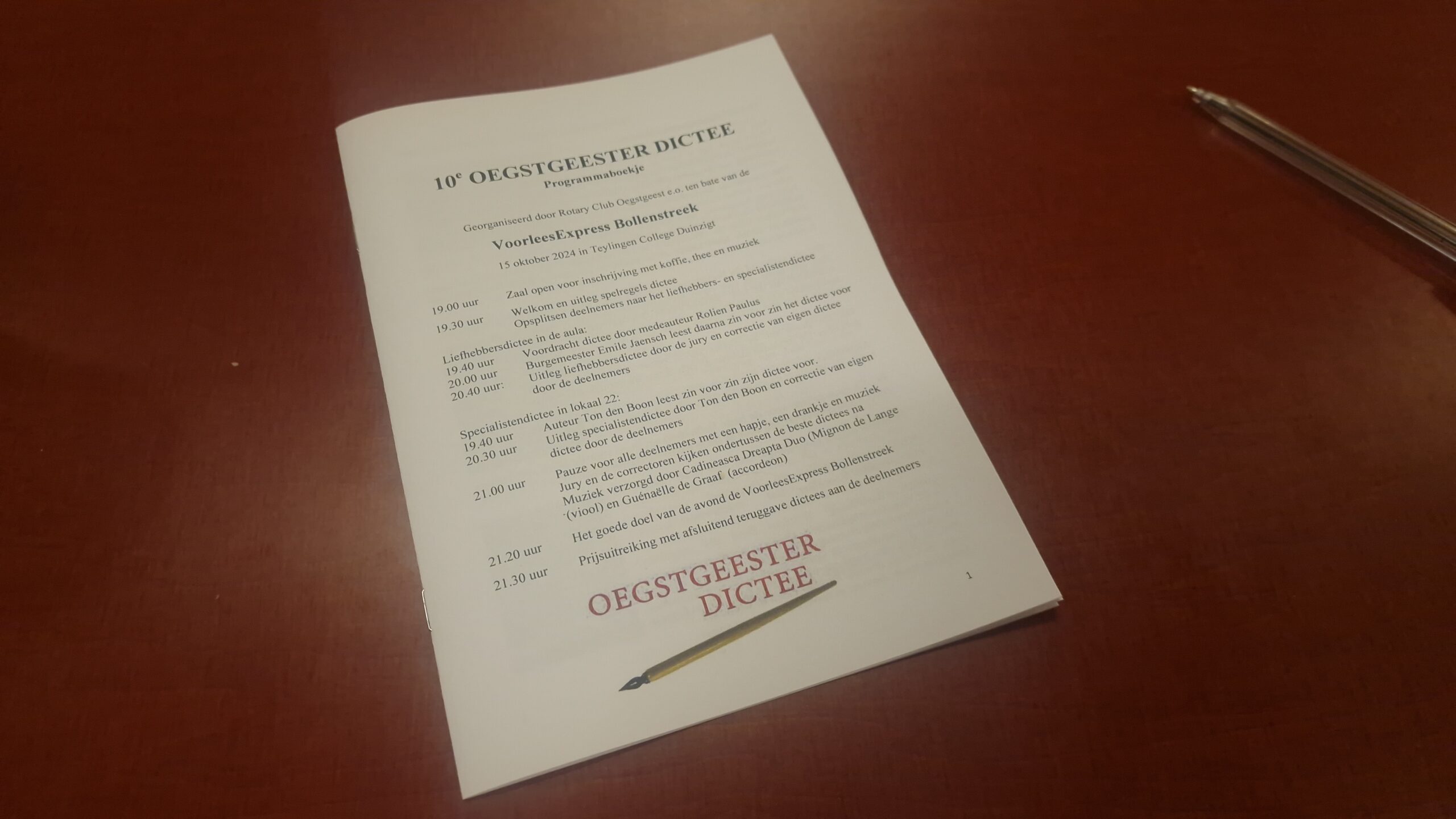 In het Teylingen College in Oegstgeest werd dinsdag voor de tiende keer het Oegstgeester Dictee gehouden. Thema van de jubileumeditie was, niet geheel ontoepasselijk, Oegstfeest.