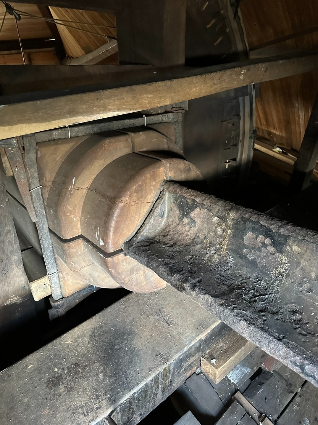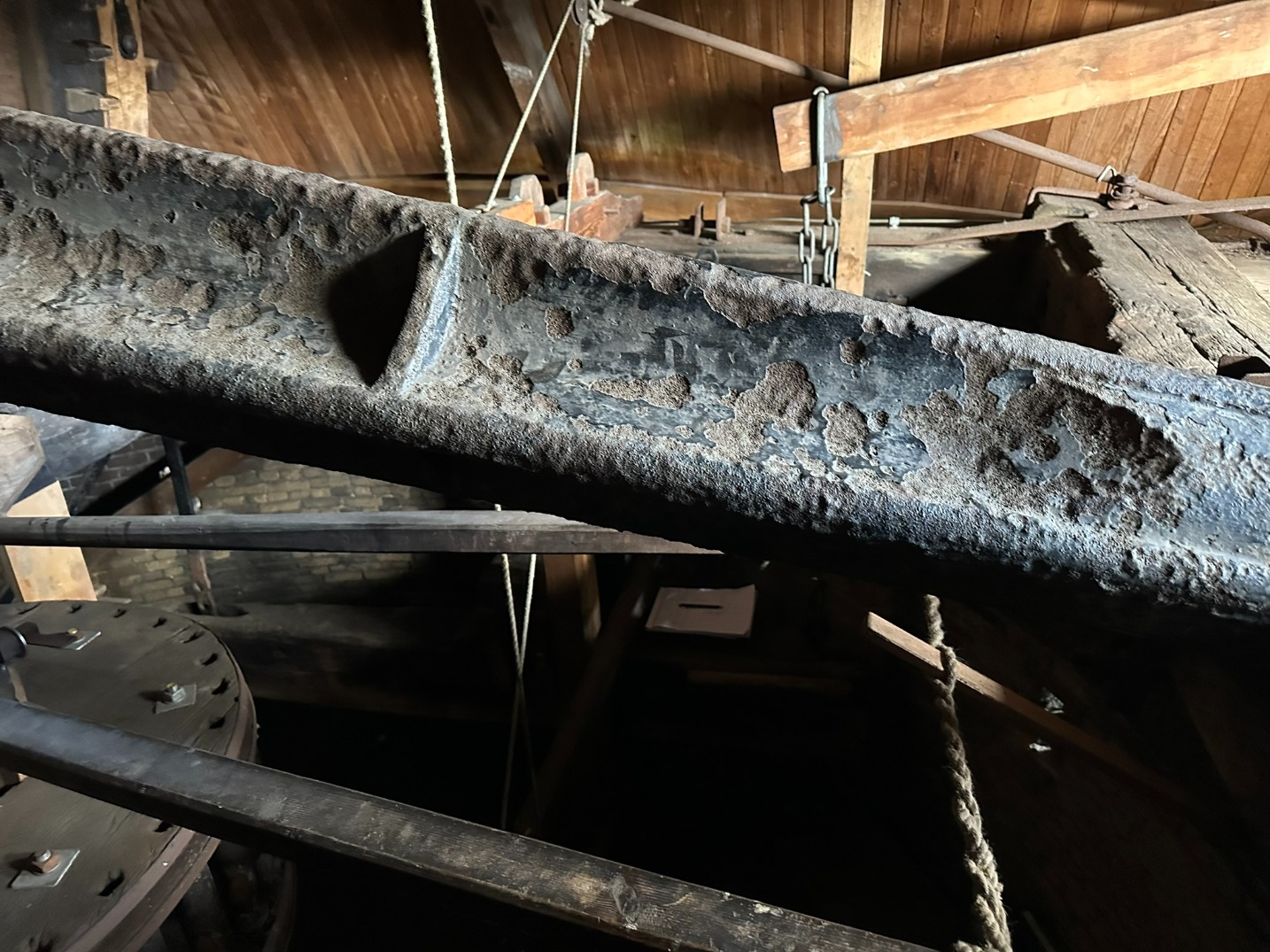 Wat opmerkelijk is, is dat ook de bovenas van de molen vervangen wordt. Dit is het onderdeel waar de wieken aan bevestigd zijn. Volgens Pijnnaken is het niet gebruikelijk dat dit onderdeel vernieuwd wordt. De huidige bovenas is vervaardigd in 1849 en gaat dus al 175 jaar mee. De nieuwe as is ruim drie keer zo stevig, en is dus een goede investering in de duurzaamheid van de molen.