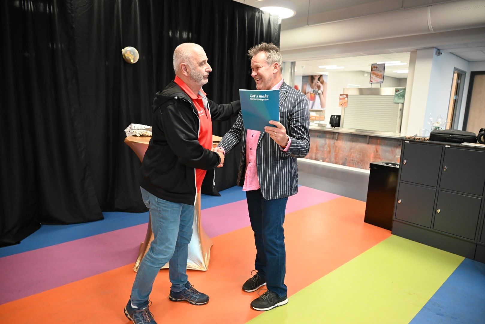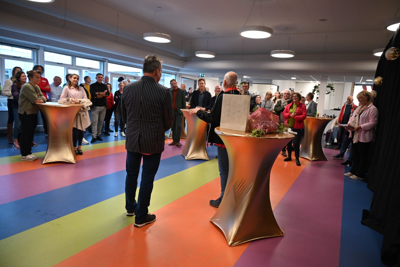 Tijdens een drukbezochte afscheidsborrel nam het mboRijnland afgelopen week op de vestiging in de Storm Buysingstraat afscheid van sportleraar Hans Kallenberg.