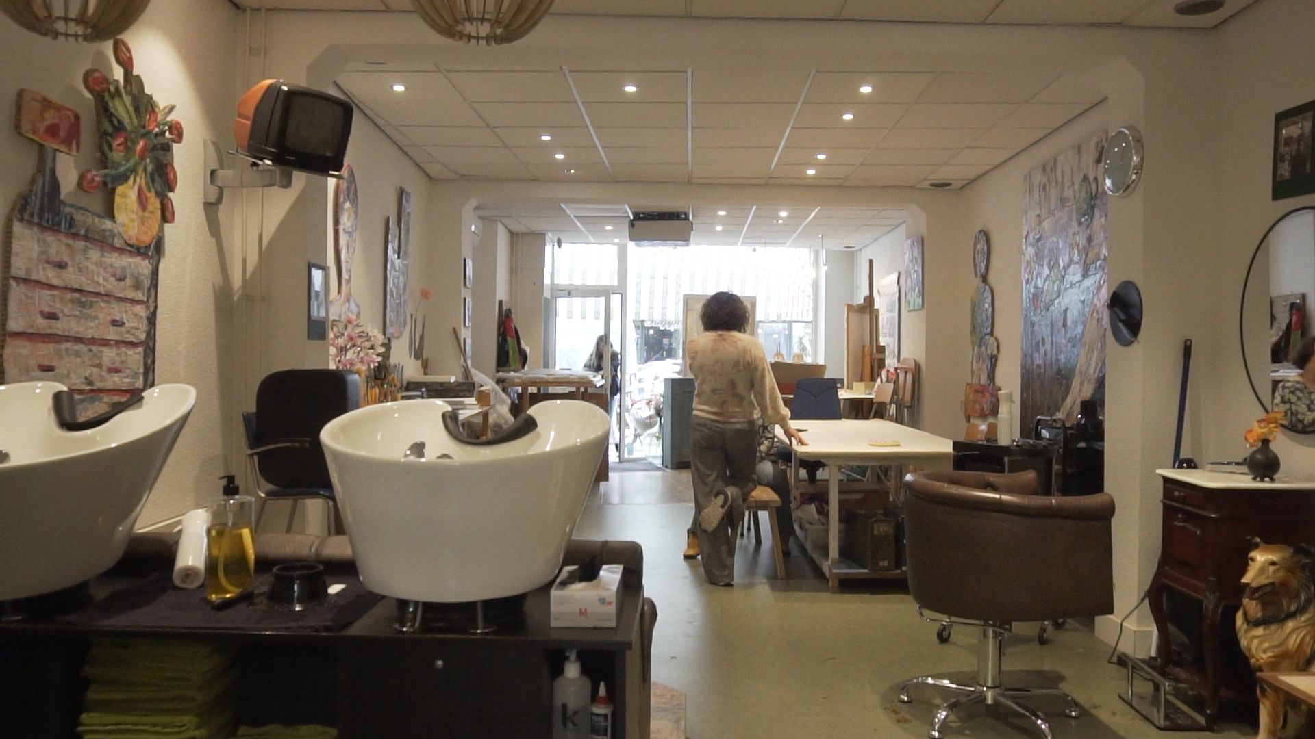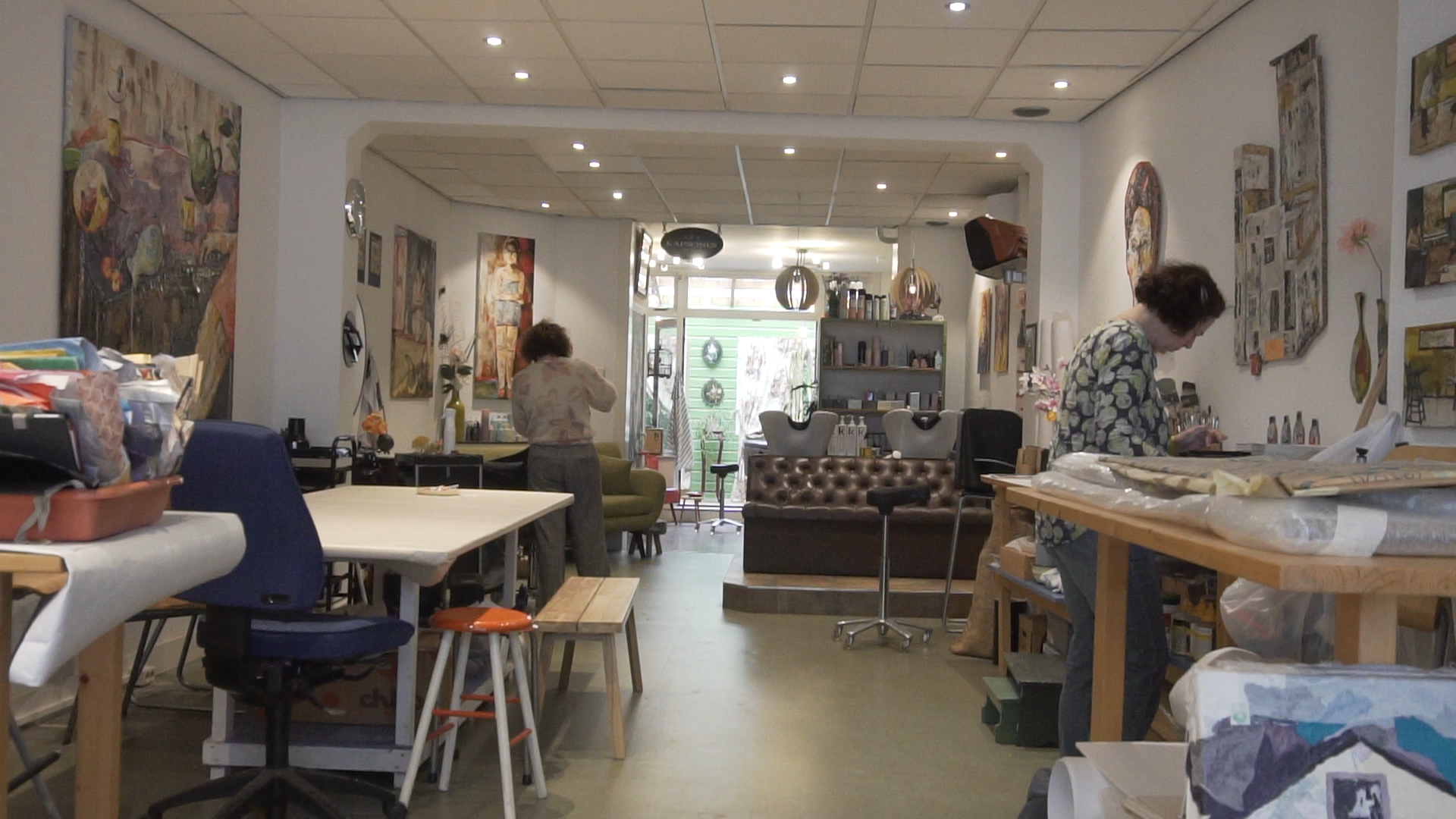 Voor Vlasman is het even wennen om haar atelier in een kapsalon te hebben. “Eerst dacht ik, dit is natuurlijk niks. Ik was zo gewend om in mijn eentje te werken,” vertelt ze. Voor het eerst werkt ze nu in een open ruimte, na jaren van isolatie. “Er lopen continu mensen door mijn werkplek heen, en dat is een uitdaging. Maar als ik me wil afsluiten, kan ik altijd nog een koptelefoon opzetten.” Toch kijkt de kunstenares met een glimlach naar de toekomst: “Niet afgesloten in je eigen holletje, maar naar buiten toe. Deze tijd vraagt erom om meer naar buiten te treden,” zegt ze.