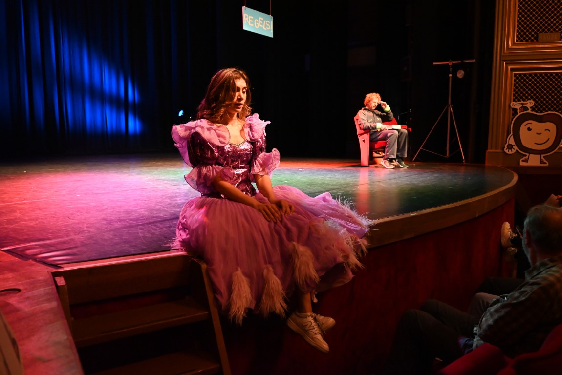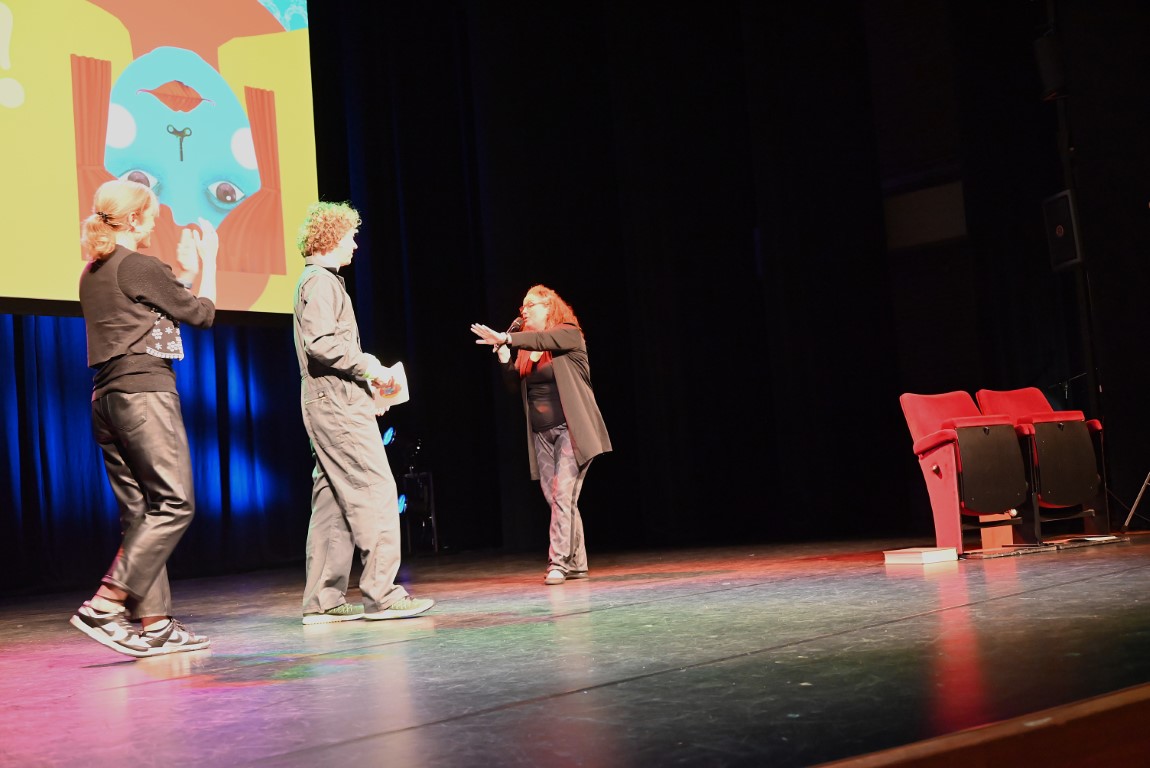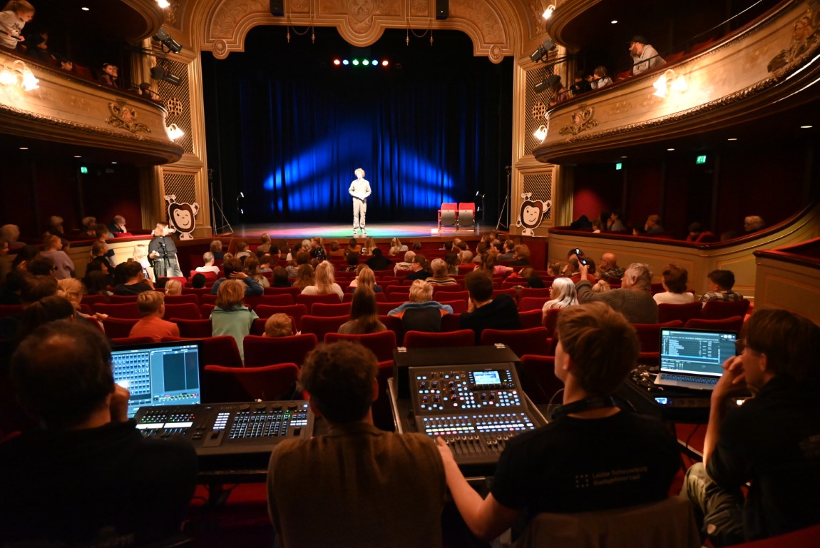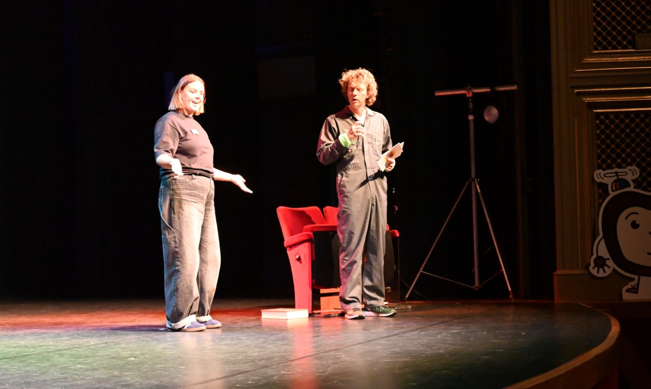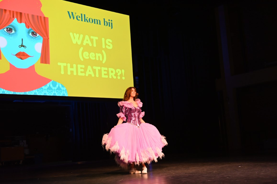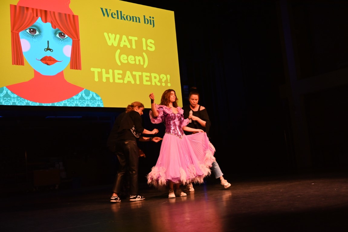 Het Jeugdtheaterfestival werd maandagmiddag geopend met een rondleiding door de Schouwburg, waarbij de kinderen alles over het theater te weten kwamen. Omdat het onmogelijk is met een paar honderd kinderen daadwerkelijk door de Schouwburg, de coulissen en de kleedkamers te wandelen, werd dat in de vorm van een kindervoorstelling gedaan.