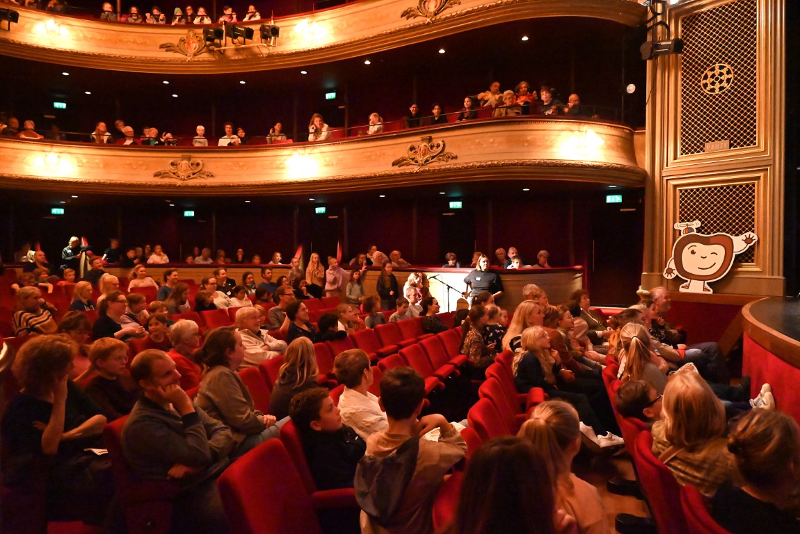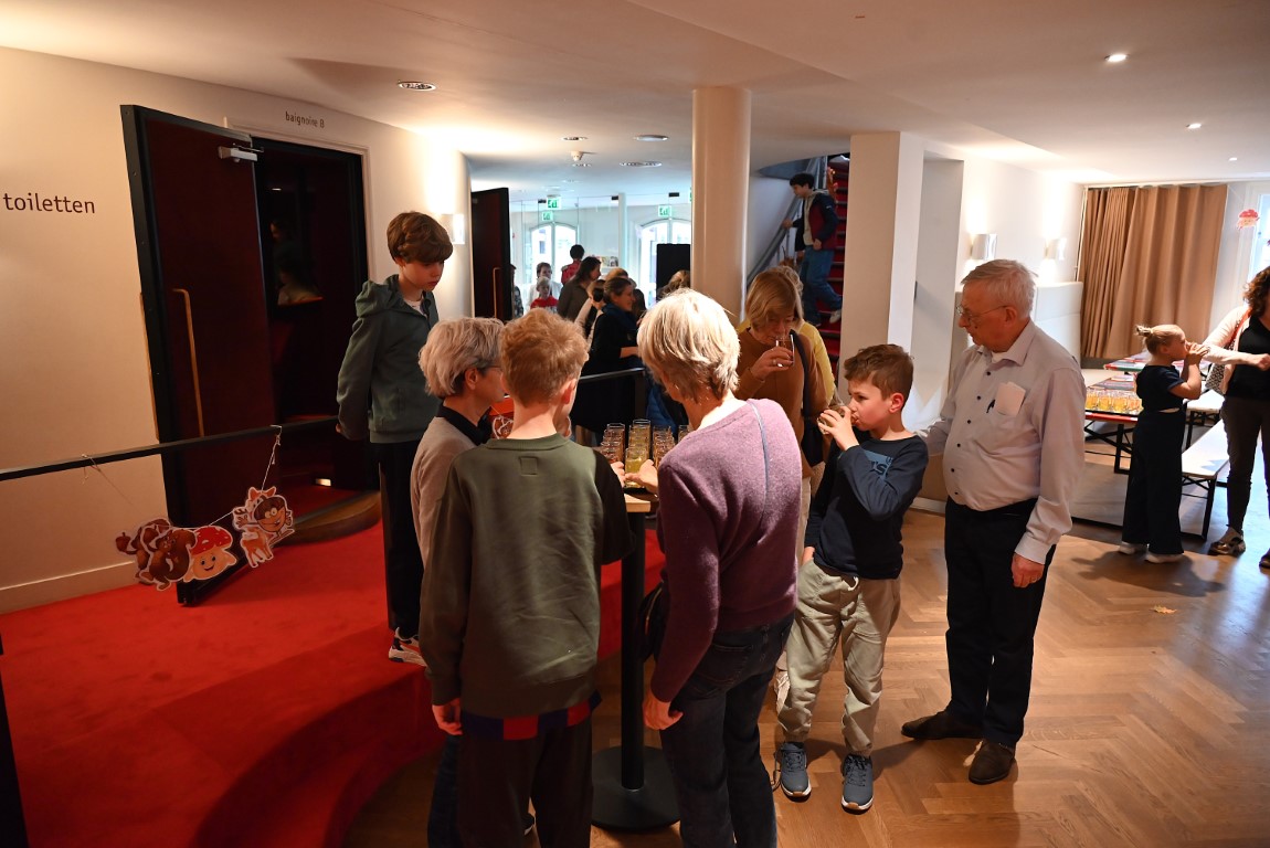 Op het moment dat de kinderen vragen mochten stellen over de Schouwburg en het beroep van acteur, vormde zich al snel een lange rij vragenstellers. De rij werd zo lang dat acteur Tijs Huys aanbood na afloop in de foyer alle niet aan bod gekomen vragen te beantwoorden.