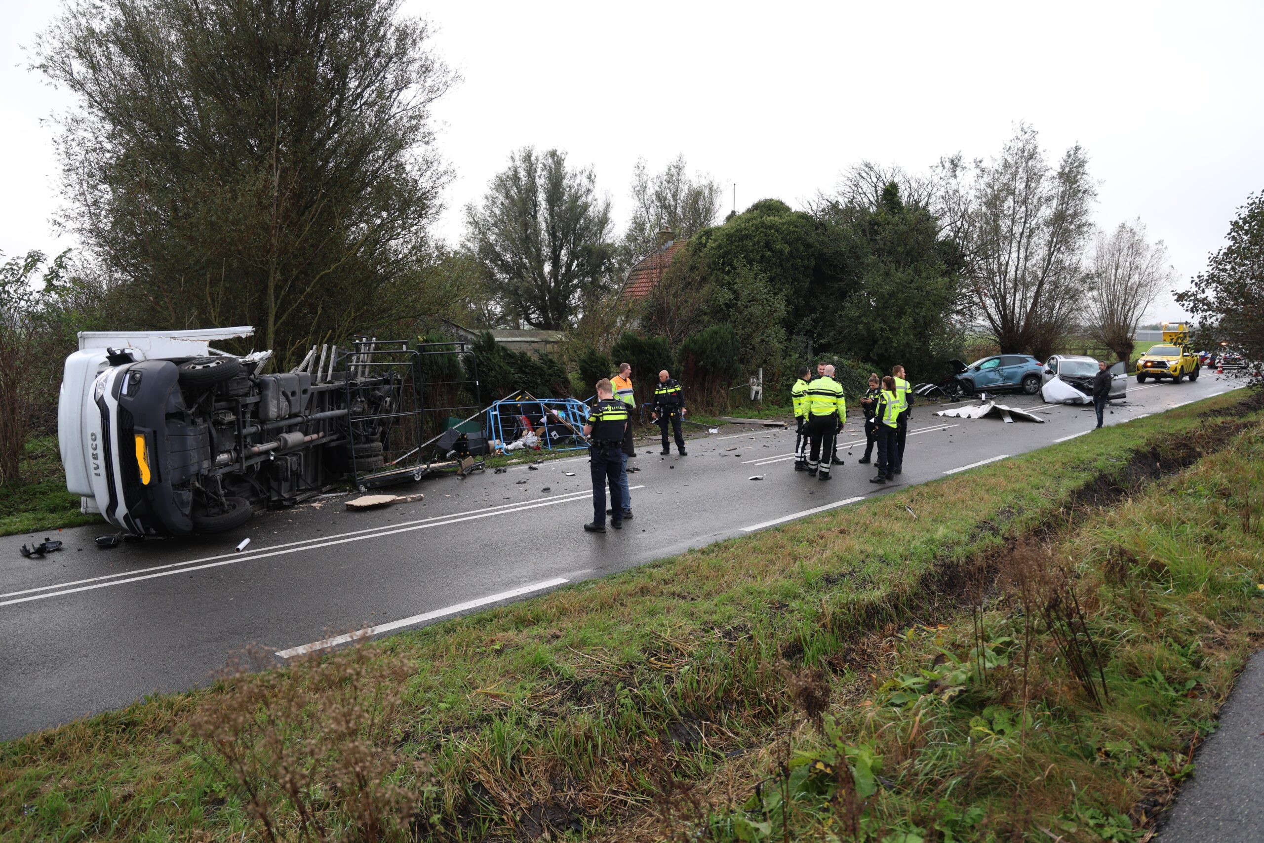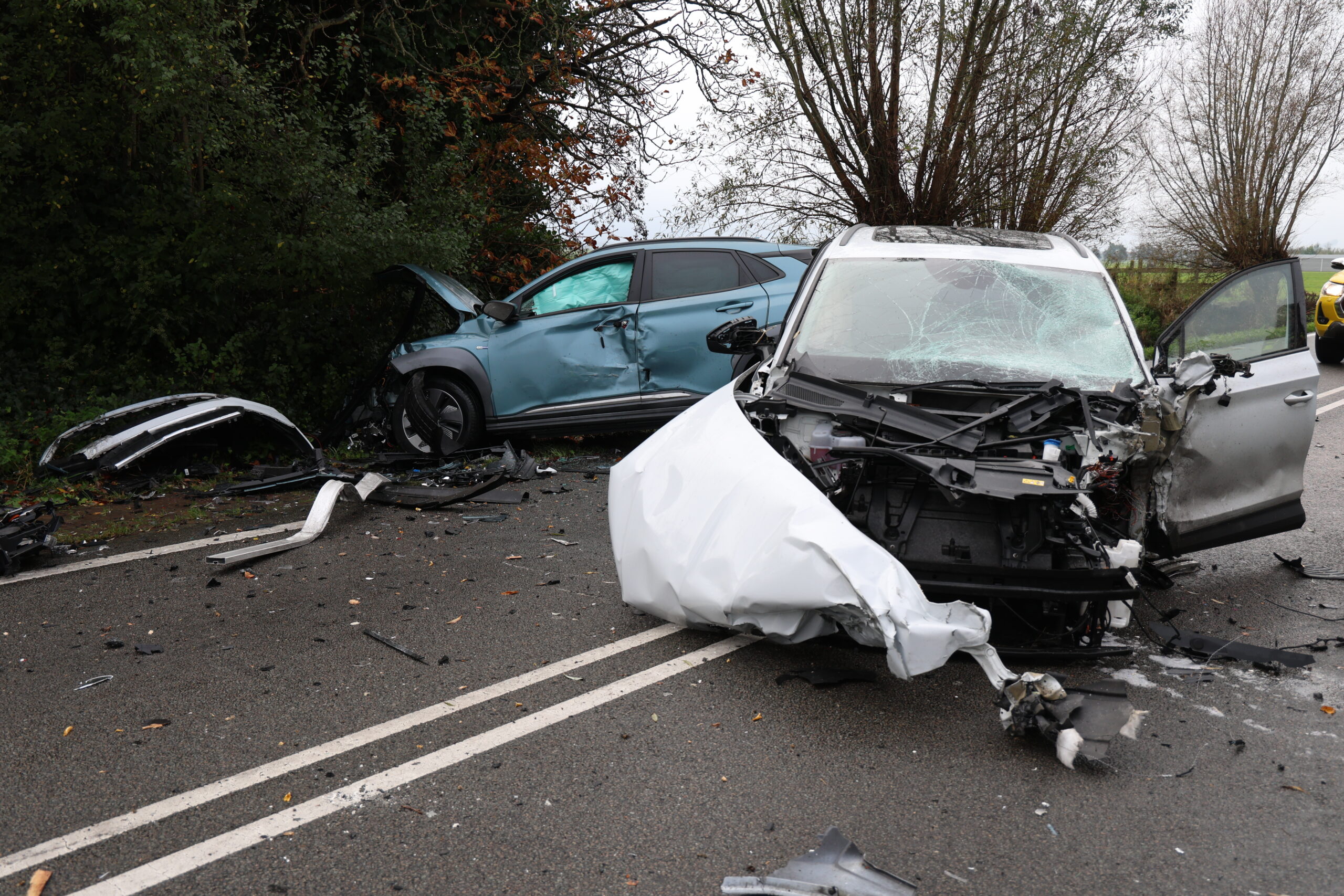 De weg is in beide richtingen afgesloten. De drie voertuigen zijn total-loss.