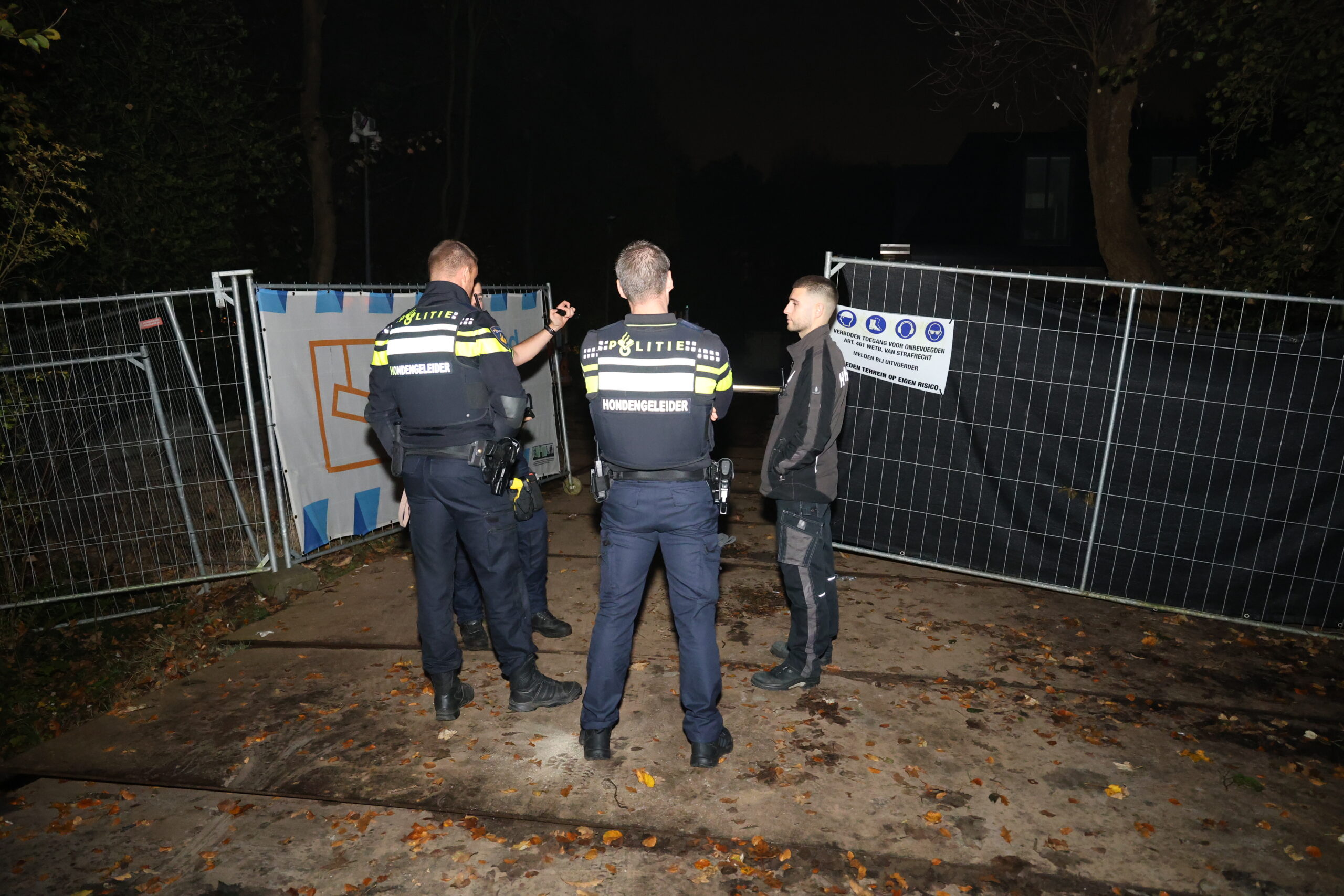 Aan de voorpui van het gebouw zou braakschade zijn gevonden Het gebouw en het bouwterrein zijn door de politie weer afgesloten.