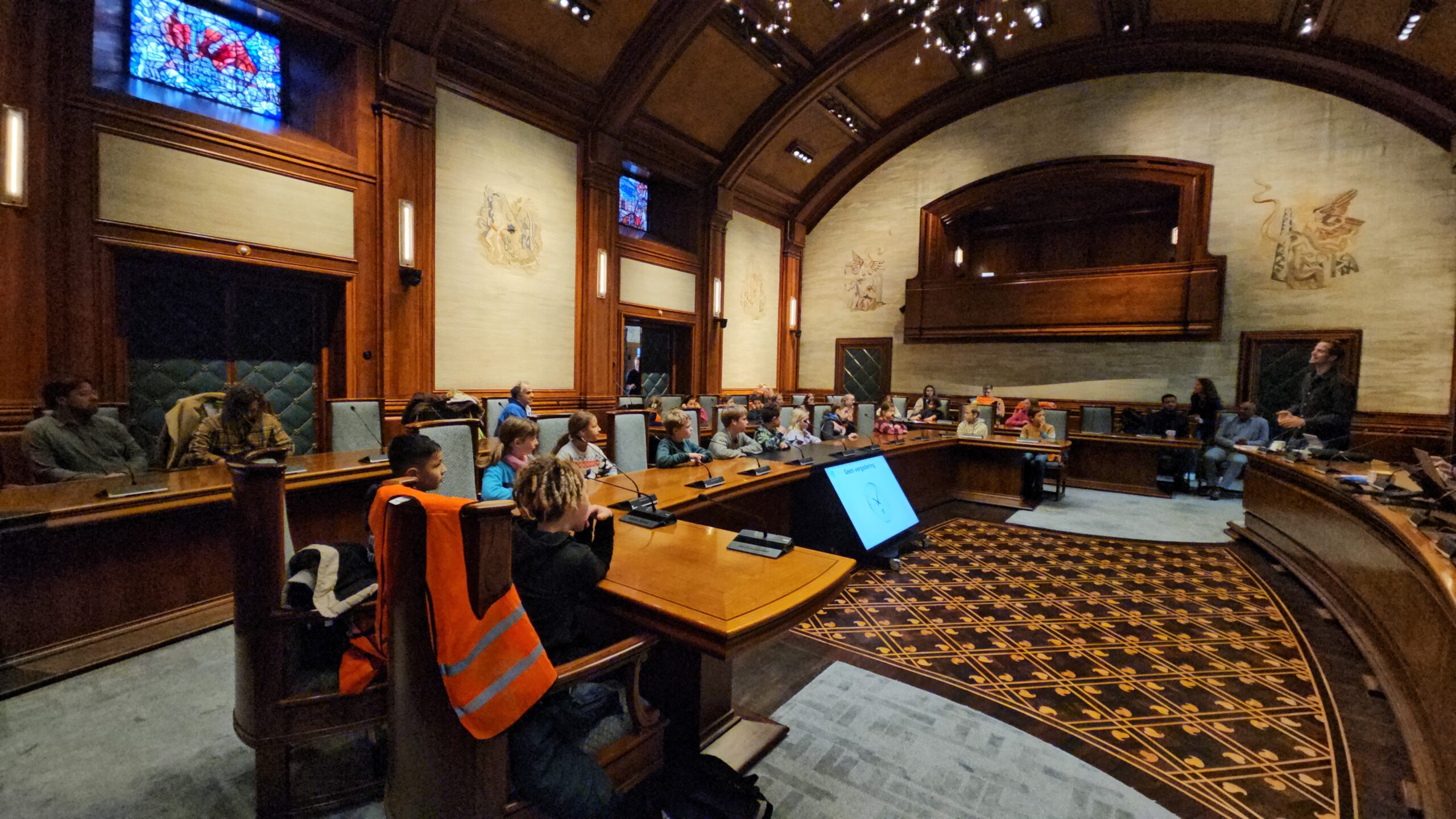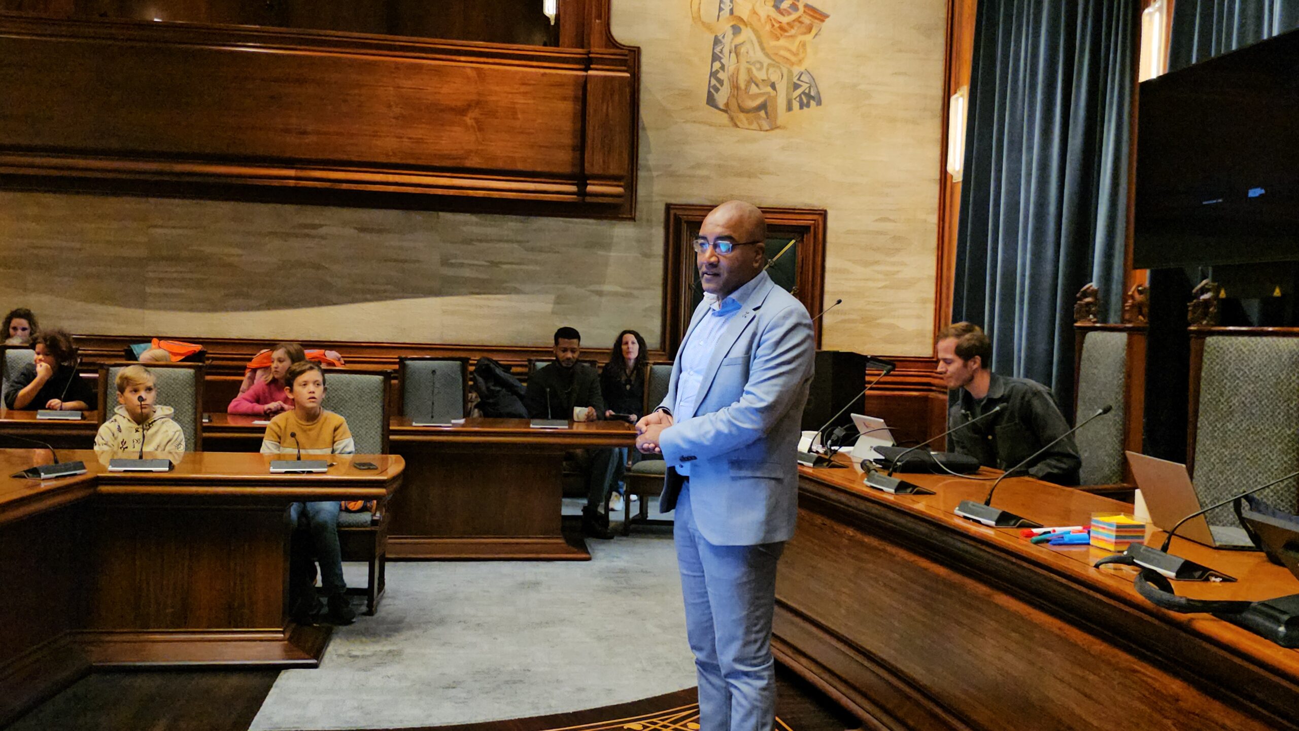 De kinderraad is voortaan elk jaar een groep zeven van een wisselende basisschool. Scholen konden zich aan het begin van het schooljaar opgeven om een groep af te vaardigen, hierna volgde een loting. Openbare Jenaplanschool de Dukdalf is uit de loting naar voren gekomen. “Leuk, want daar hebben mijn eigen kinderen ook op gezeten”, vertelt wethouder Jermoumi aan de aandachtig luisterende kinderen.