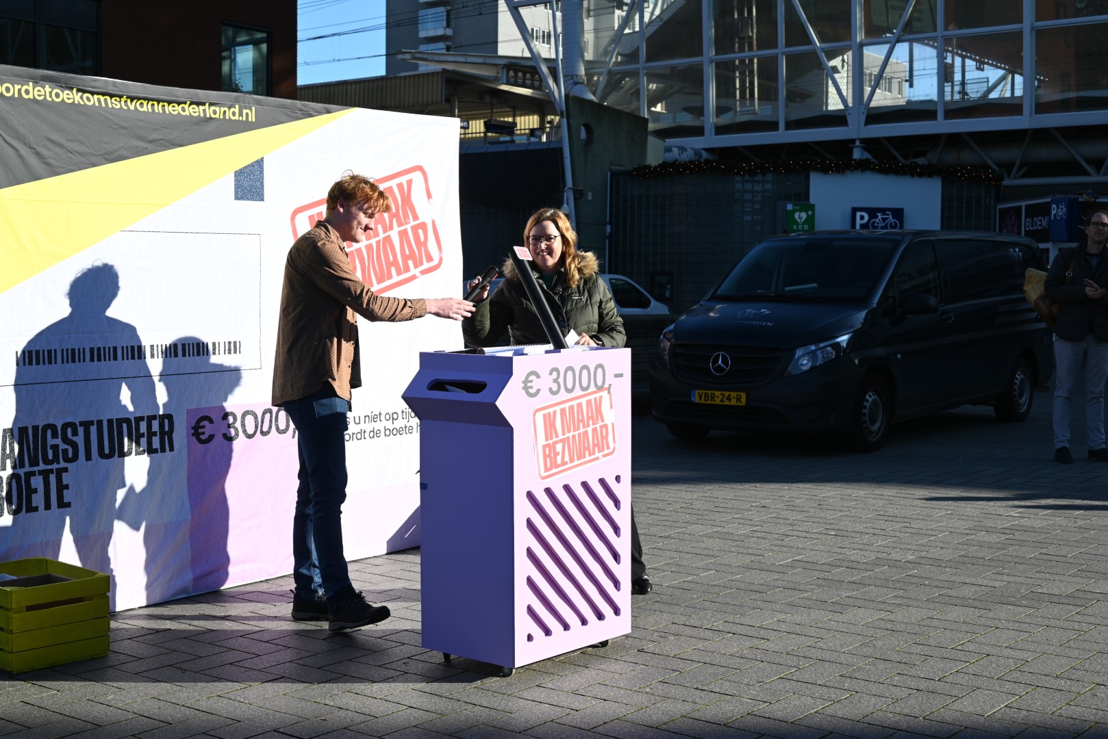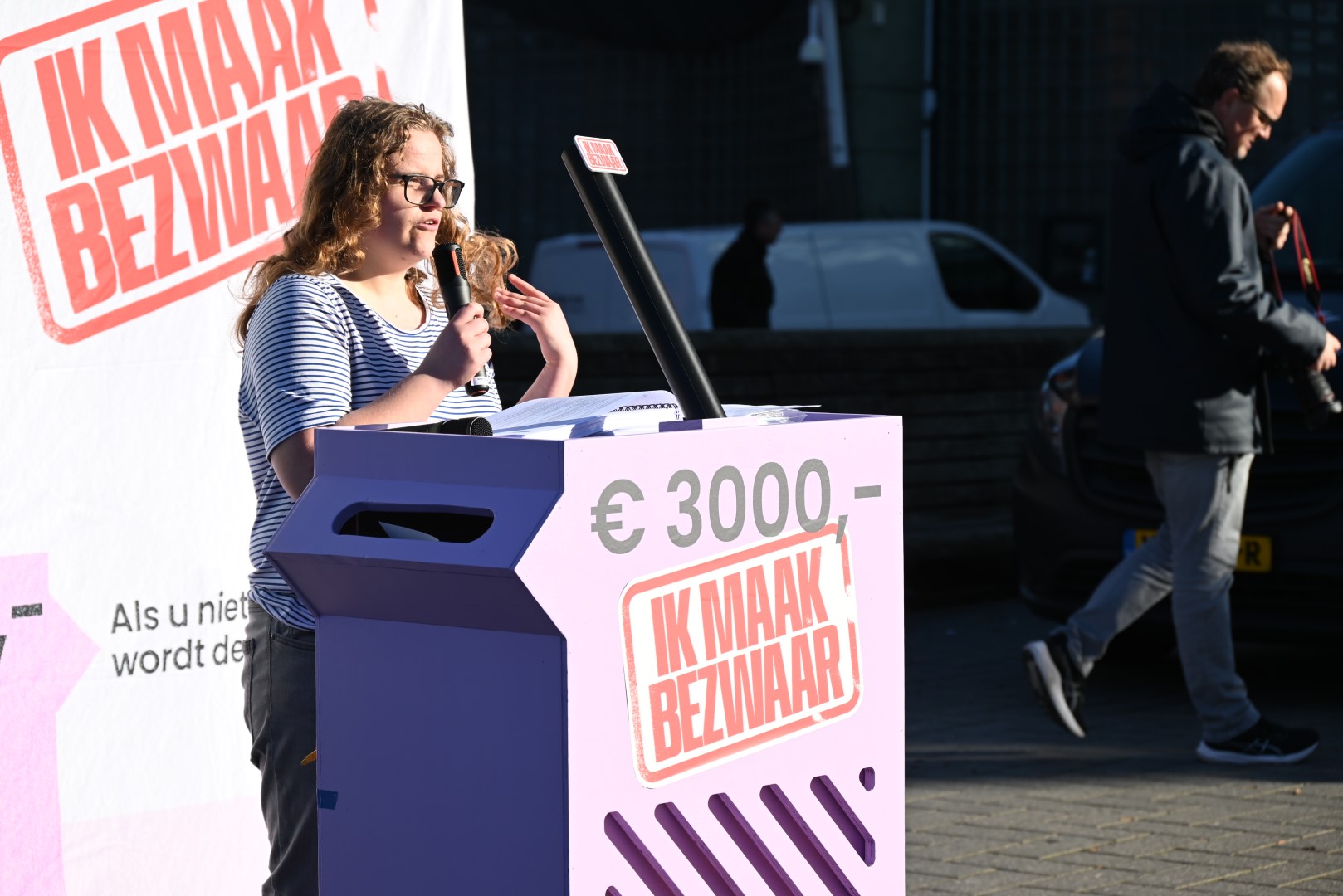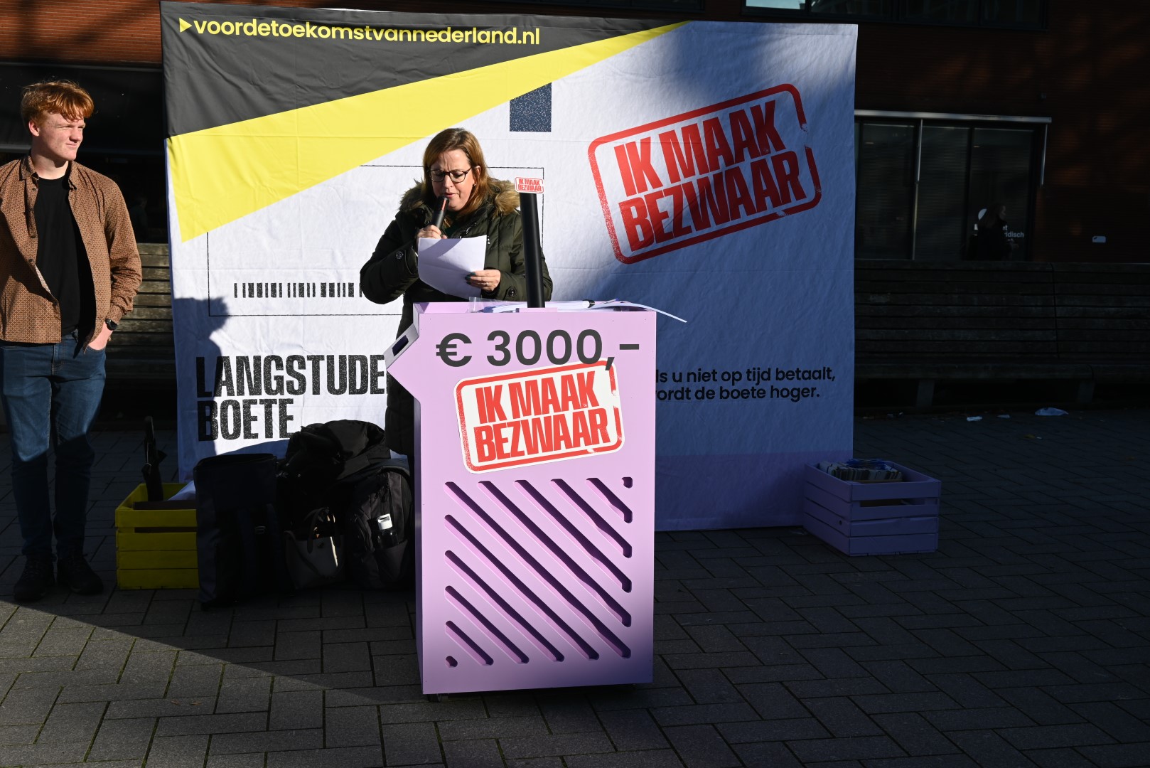 Student Frank Andriessen is een van de aanwezigen die een bezwaarschrift voorlas. “We hopen met dit protest aandacht te vragen voor dit probleem, en dat het niet doorgezet wordt”, hoopt hij. “Het werkt echt heel demotiverend. Denk bijvoorbeeld aan mensen met mentale of familieproblemen. Die doen er al wat langer over, en dan krijg je daar nog de langstudeerboete overheen.”