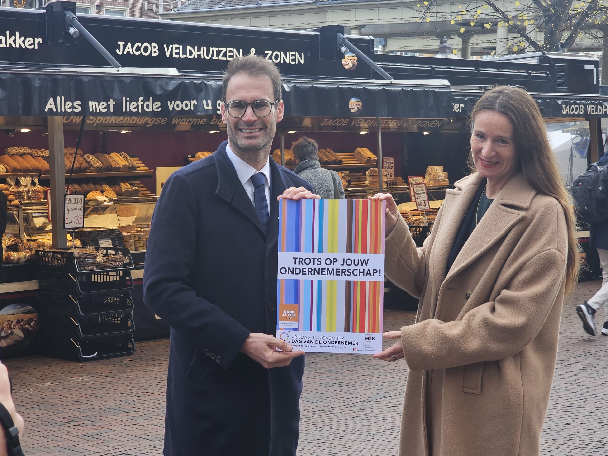 Vrijdag is het de ‘Dag van de Ondernemer’ en dat wil het Leidse stadsbestuur niet zomaar voorbij laten gaan. Economiewethouder Fleur Spijker gaat daarom langs bij wijkwinkelcentrum De Kopermolen in de Merenwijk. “Om met ondernemers te praten en ze in het zonnetje te zetten”, vertelt ze terwijl ze met burgemeester Peter Heijkoop over de Leidse woensdagmarkt loopt.