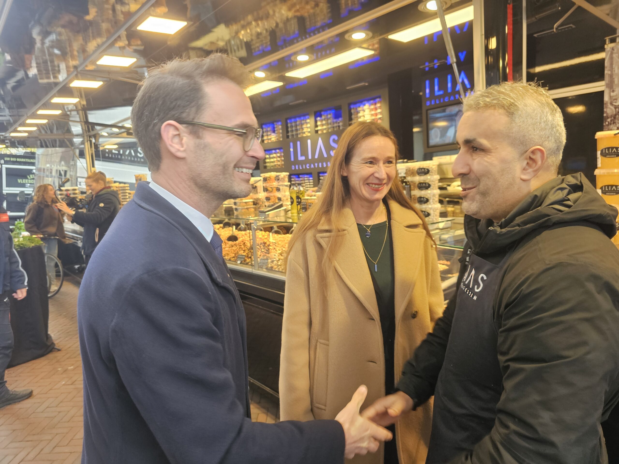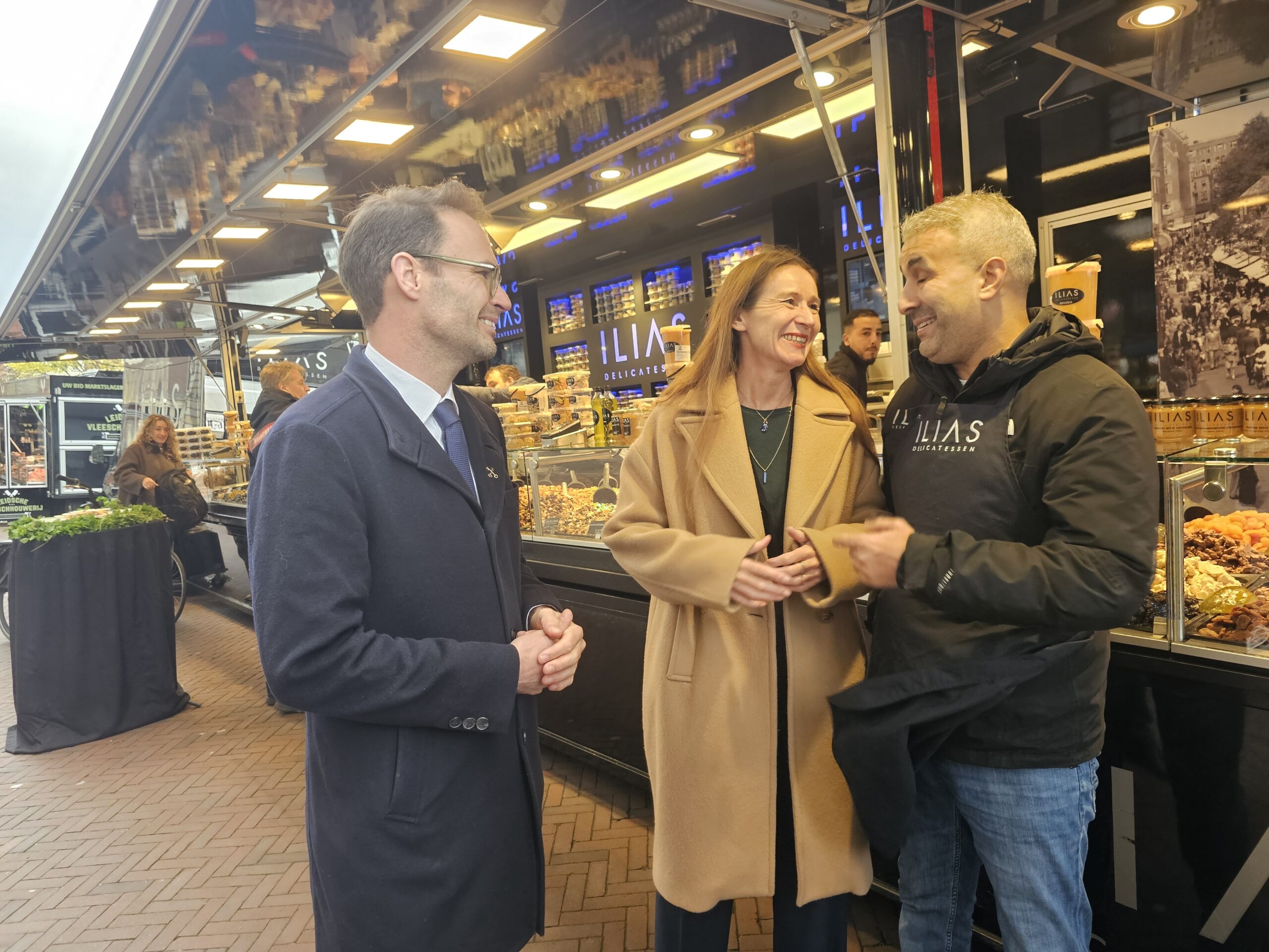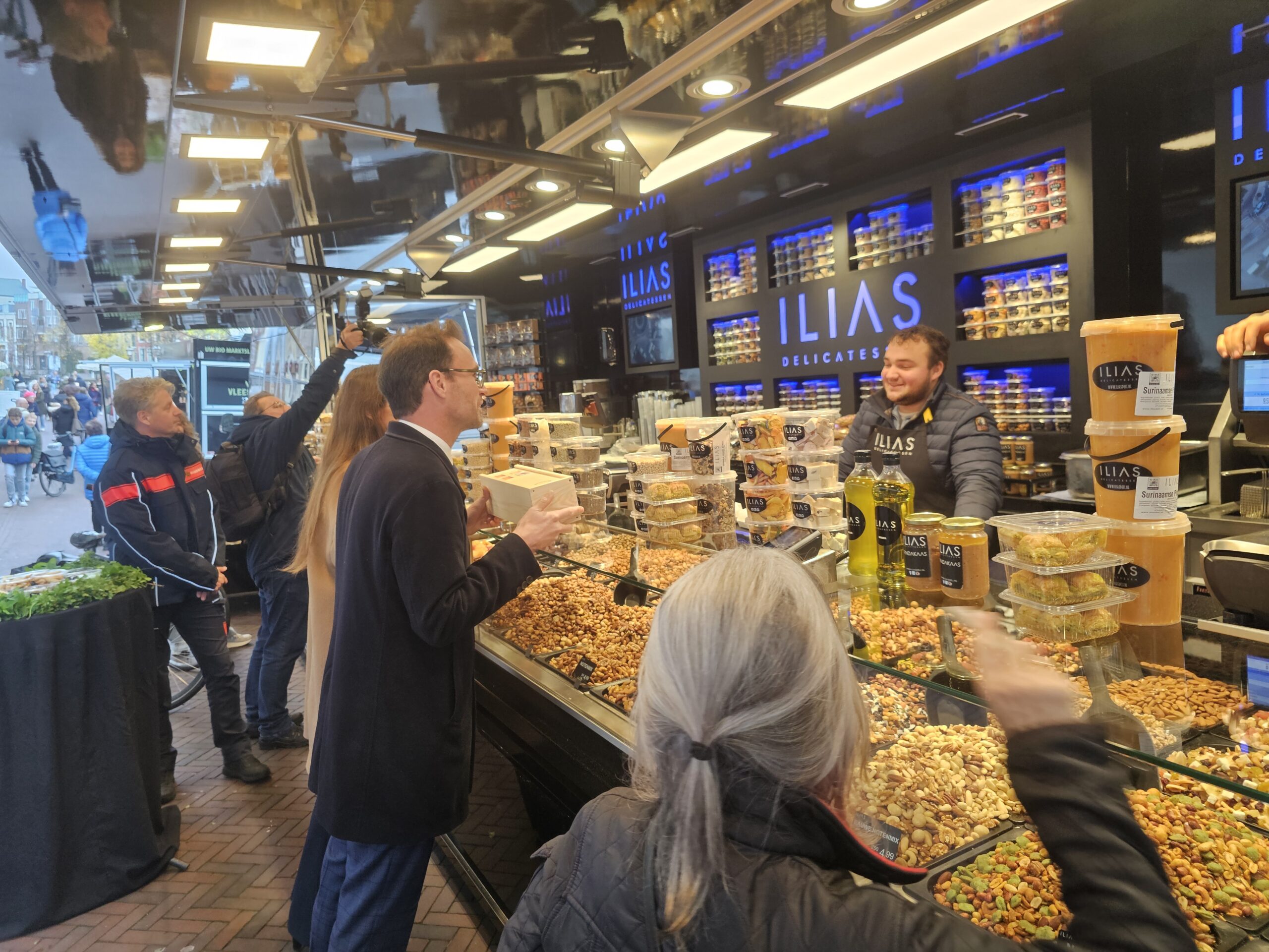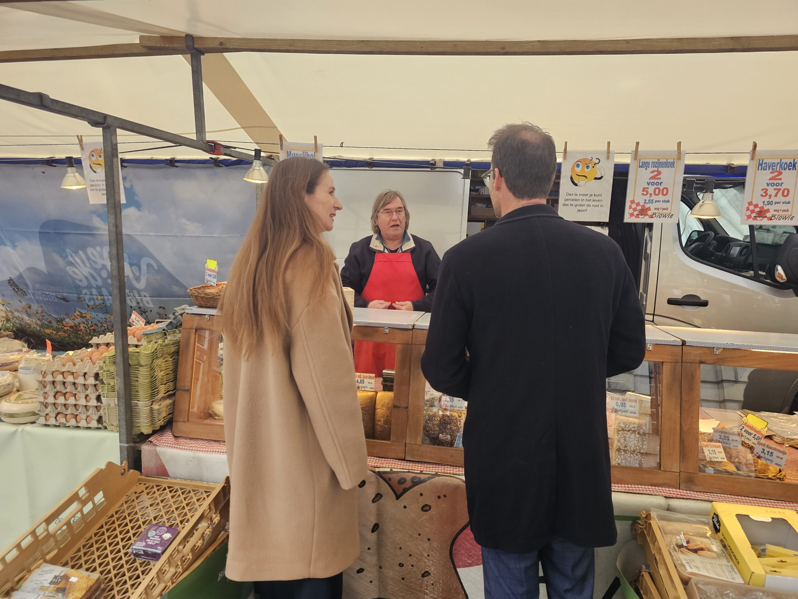 Dat marktbezoek werd ook afgelegd in het kader van de Dag van de Ondernemer, maar omdat er vrijdag geen centrummarkt is, koos het college voor de woensdag om een rondje langs de kramen te maken. Het wordt gewaardeerd. “Echt leuk dat onze nieuwe burgemeester op deze manier aandacht aan de markt schenkt”, zegt voorzitter Soufian El Marsse van de marktcommissie.