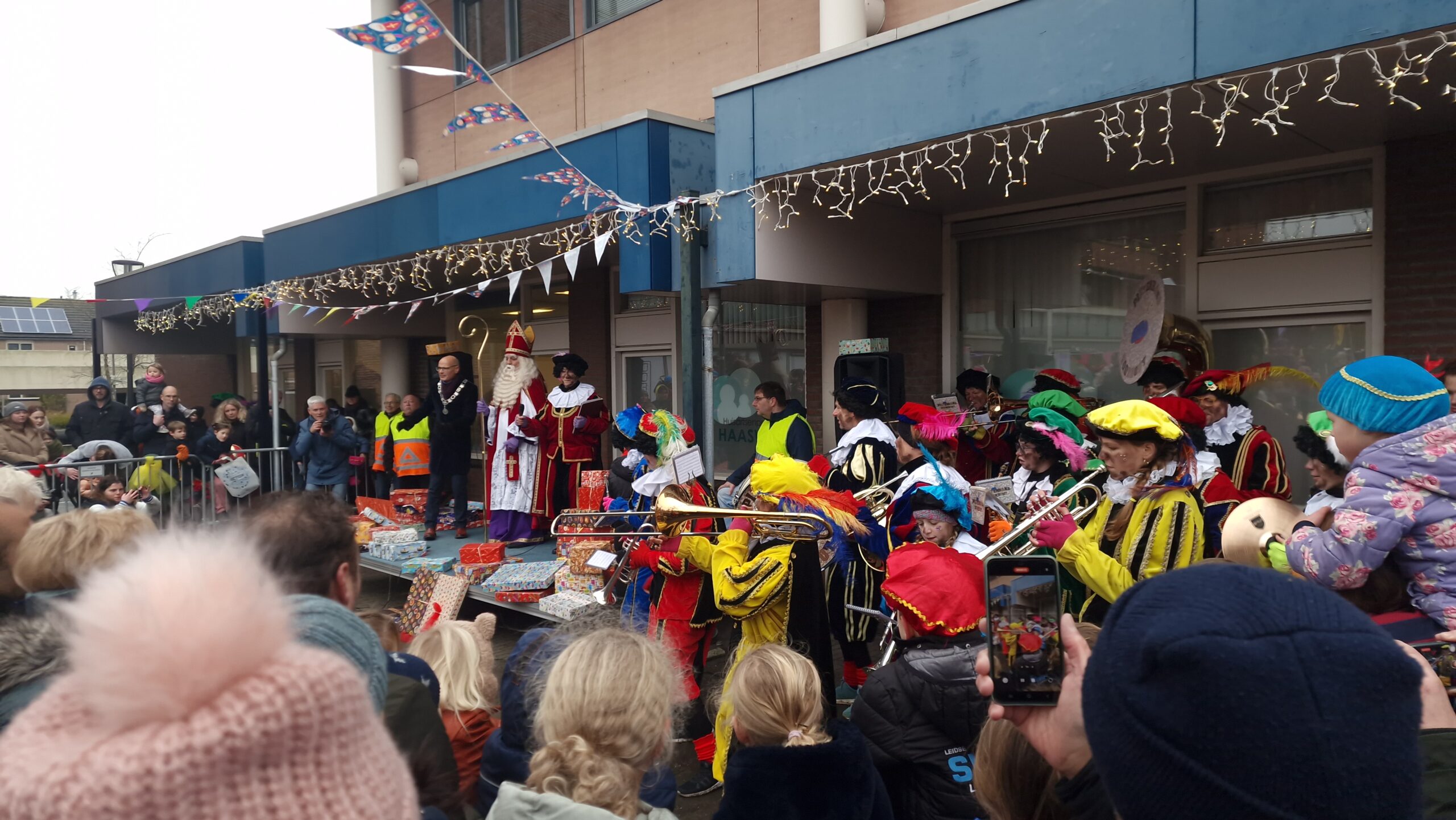 Omringd door honderden mensen betrad de Sint de kade. Hij werd muzikaal ondersteund door een speciale Pietenband. Van andere pieten kregen alle kinderen wat kruidnoten. En voor het eerst kregen kinderen met een glutenallerlie ook wat kruidnoten. Eén van de pieten had namelijk een zak met glutenvrije kruidnoten.