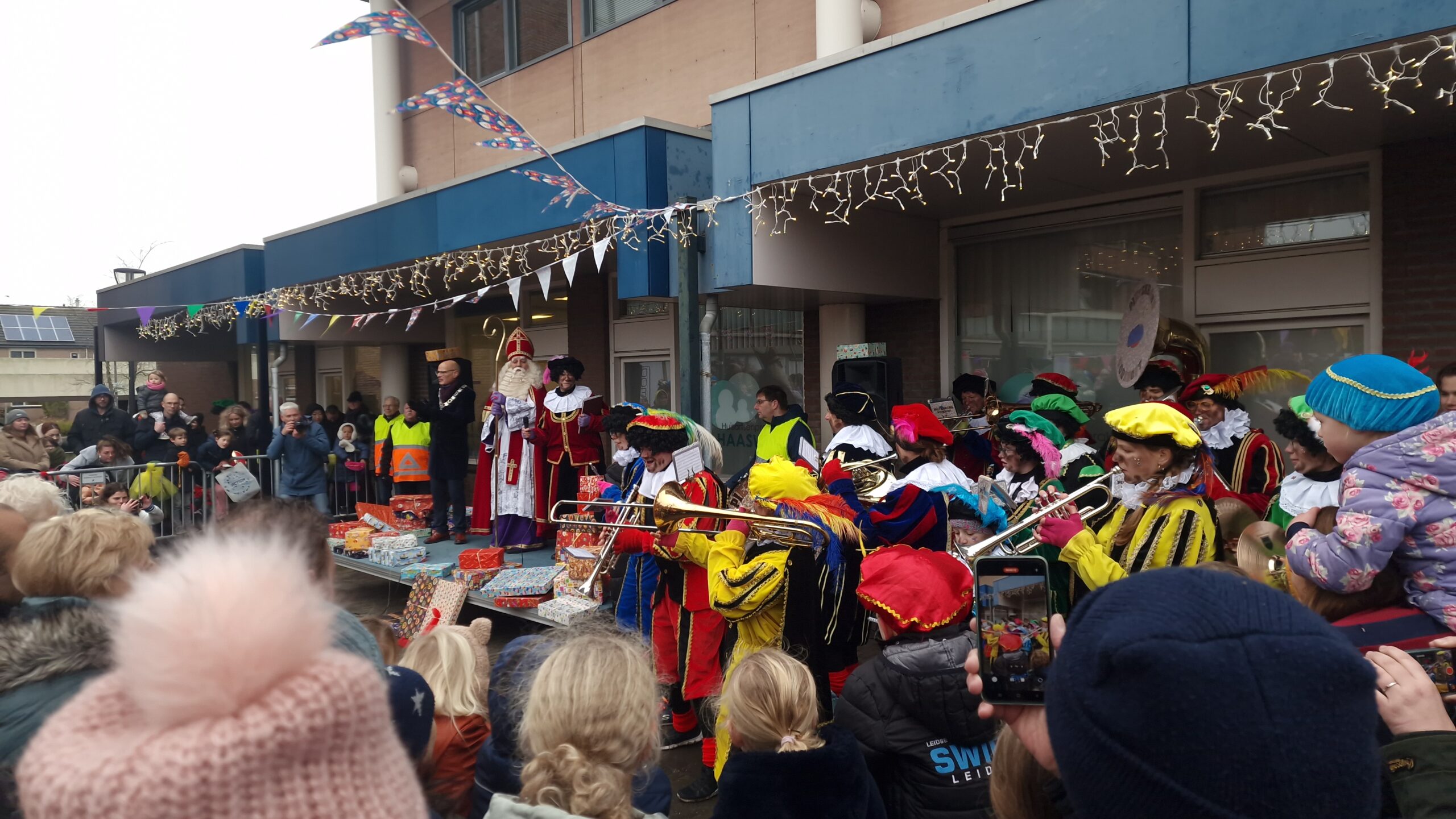 De Sint kwam traditiegetrouw aan bij het Boerhaaveplein, alwaar hij ontvangen werd door de organisatie van de intocht en de burgemeester. Maar ook de burgemeester had een probleem. Hij dreigde namelijk voormalig Leidse burgemeester Lenferink achterna te gaan: hij was zijn ambtsketting kwijt.