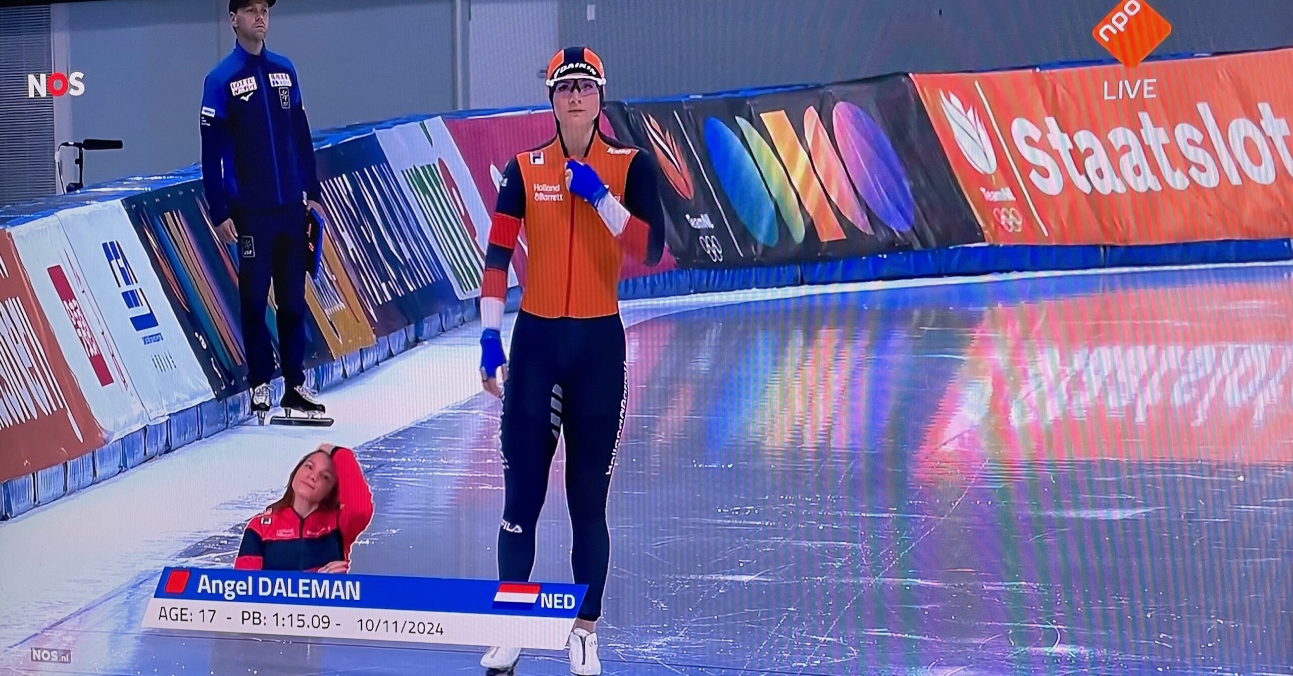 De Leiderdorpse schaatsster Angel Daleman ontpopt zich deze weken als de schaatssensatie bij de vrouwen. In de rit tegen Miho Takagi moest Daleman de winst aan de Japanse laten. Maar ze reed wel een nieuw persoonlijk record 1.14,90.