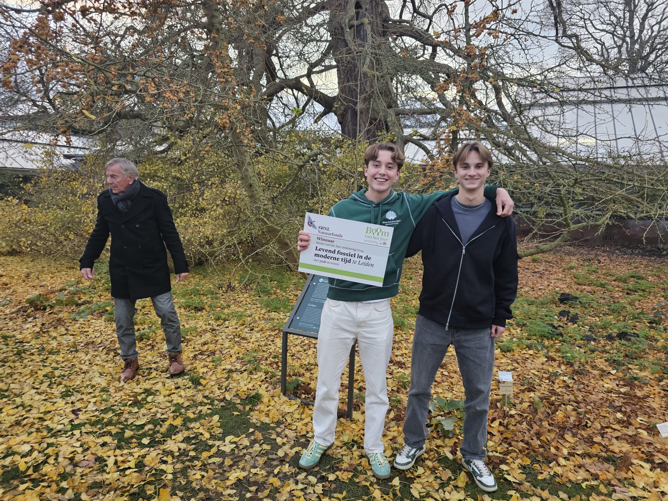 De cheque van 750,00 euro die aan de eerste prijs was verbonden ging naar de hortus. Prefect Paul Keßler gaat het geld gebruiken voor de aankoop van bomen in de botanische tuin. De oorkonde ging naar Teun Honsbeek die er met een enthousiaste campagne voor zorgde de de Ginkgo won. “Die oorkonde gaat boven m’n bed”, straalt de 17-jarige scholier.