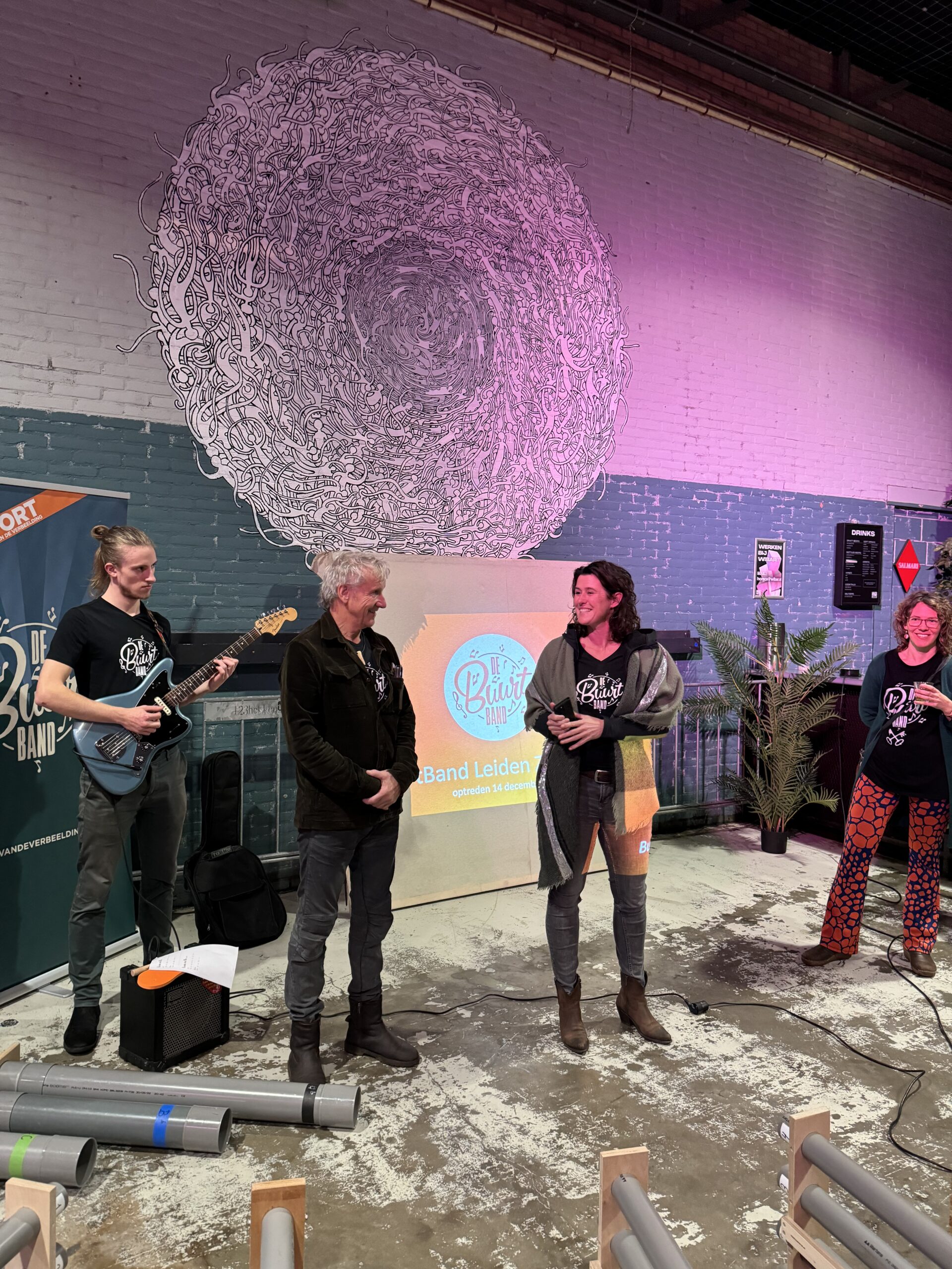 Van Loon: “De Buurtband is een project van stichting Fort van de Verbeelding. In het hele land zetten zij buurtbands op en het is voor iedereen en heel laagdrempelig. Samen muziek maken is een goede verbinding en manier om in contact te komen. Wij hebben ons eigen repertoire dat bestaat uit bekende popliedjes van bijvoorbeeld Bob Marley en Stevie Wonder. Vaak maken we daar onze eigen teksten op en we zingen zowel in het Nederlands als in het Engels. En mensen mogen natuurlijk ook zelf liedjes aandragen.”