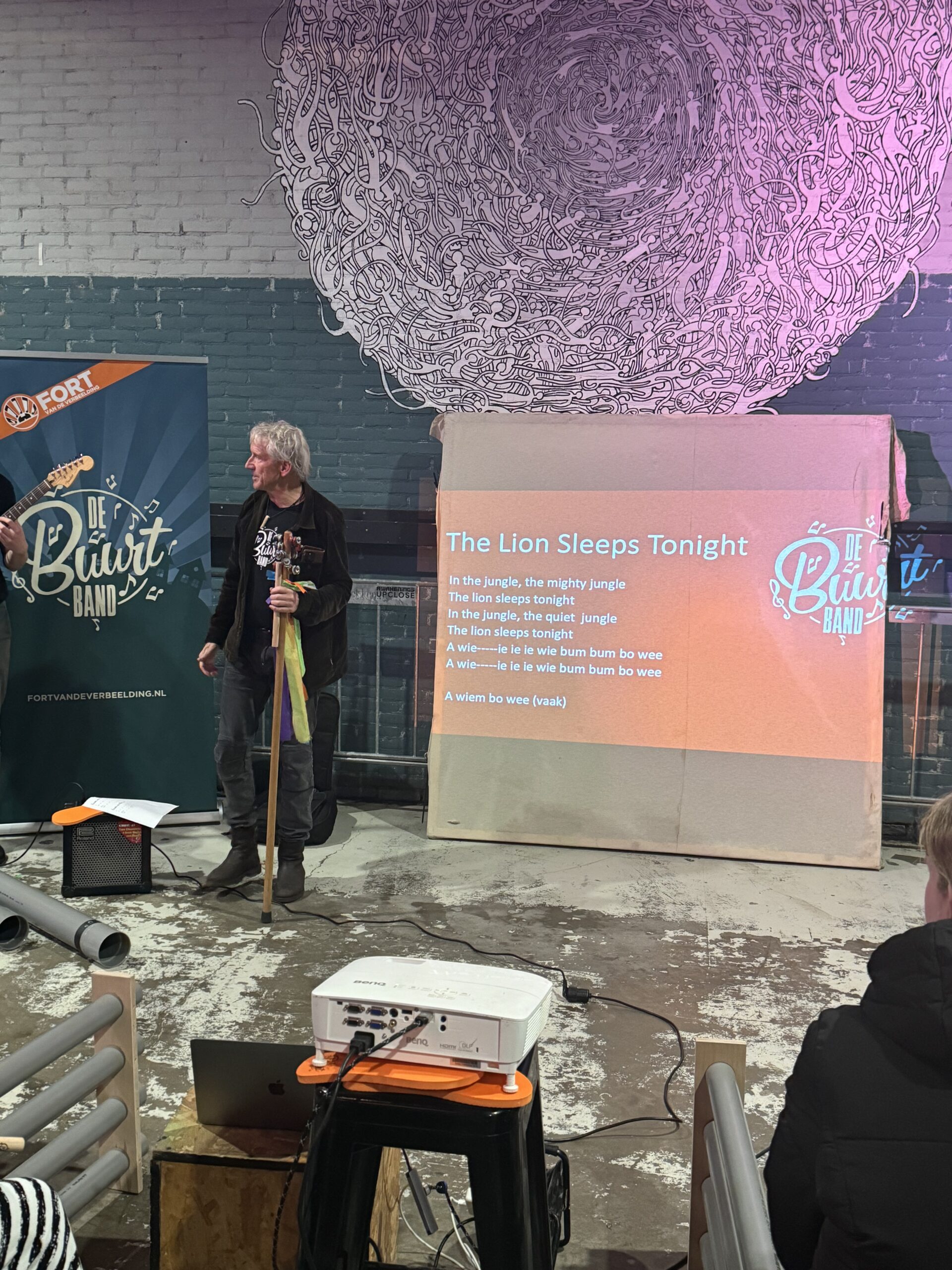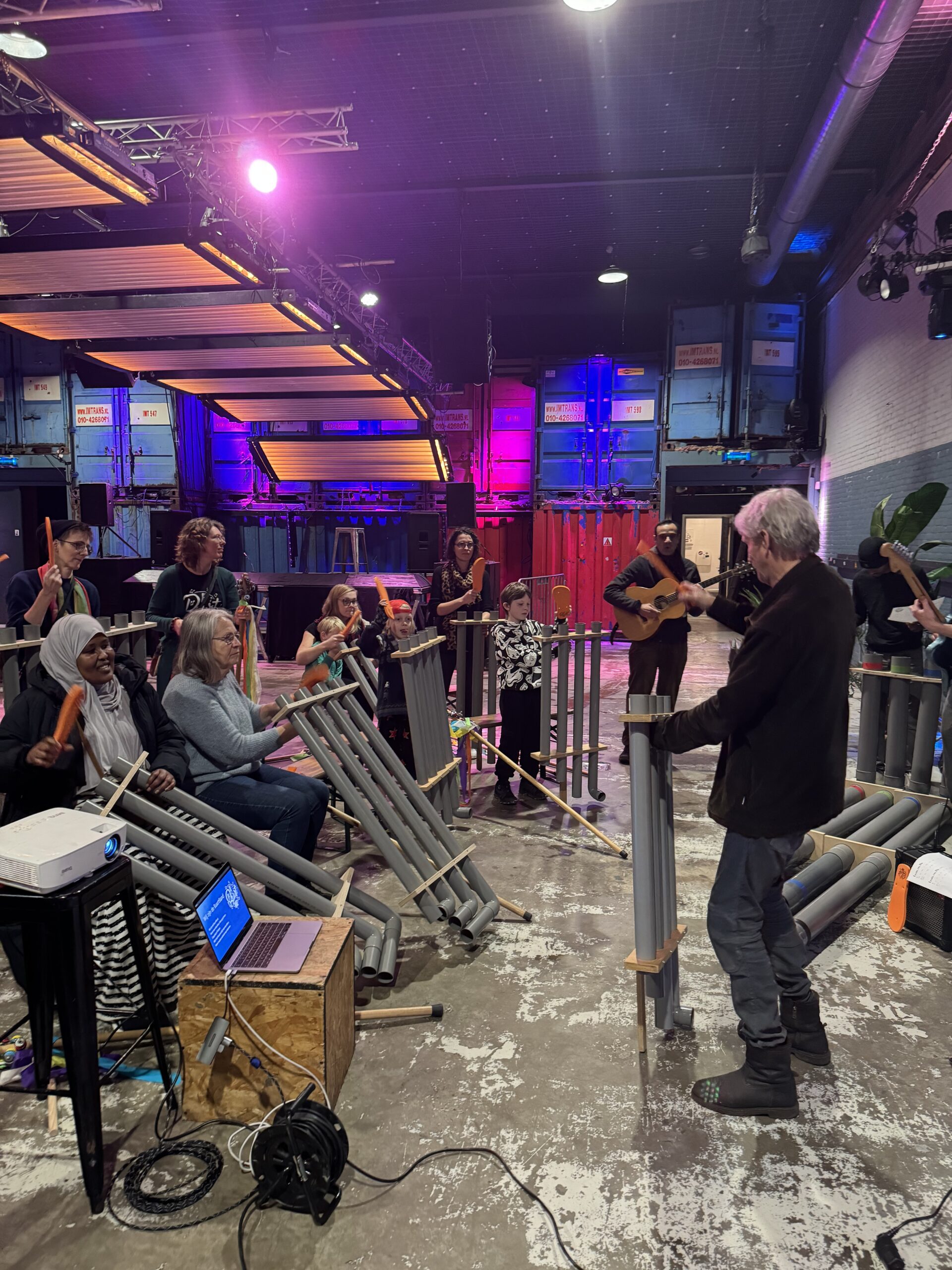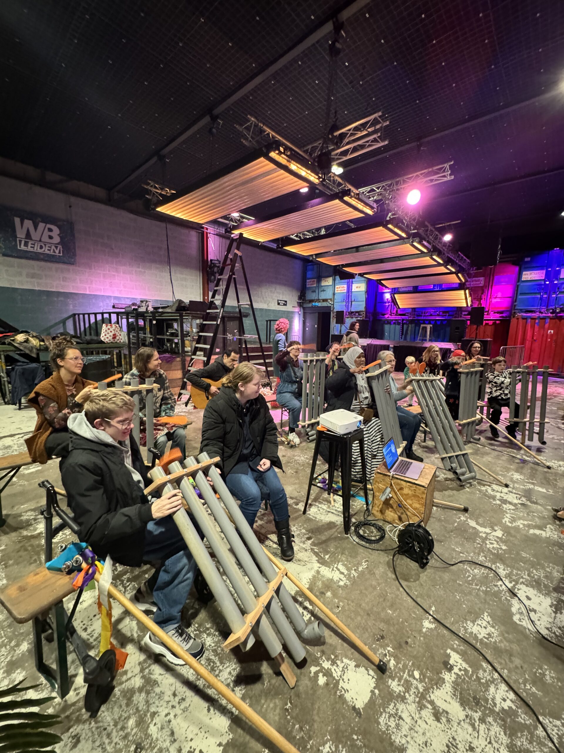 Bij binnenkomst werden de bezoekers hartelijk ontvangen door Jiske van Loon van BplusC en Peter de Boer van Fort van de Verbeelding. Na een korte uitleg startte De Boer, tevens bandleider, met het zelfontworpen instrument: de schellenbomen. Al snel ontstond er een vrolijk en gezellig orkest.