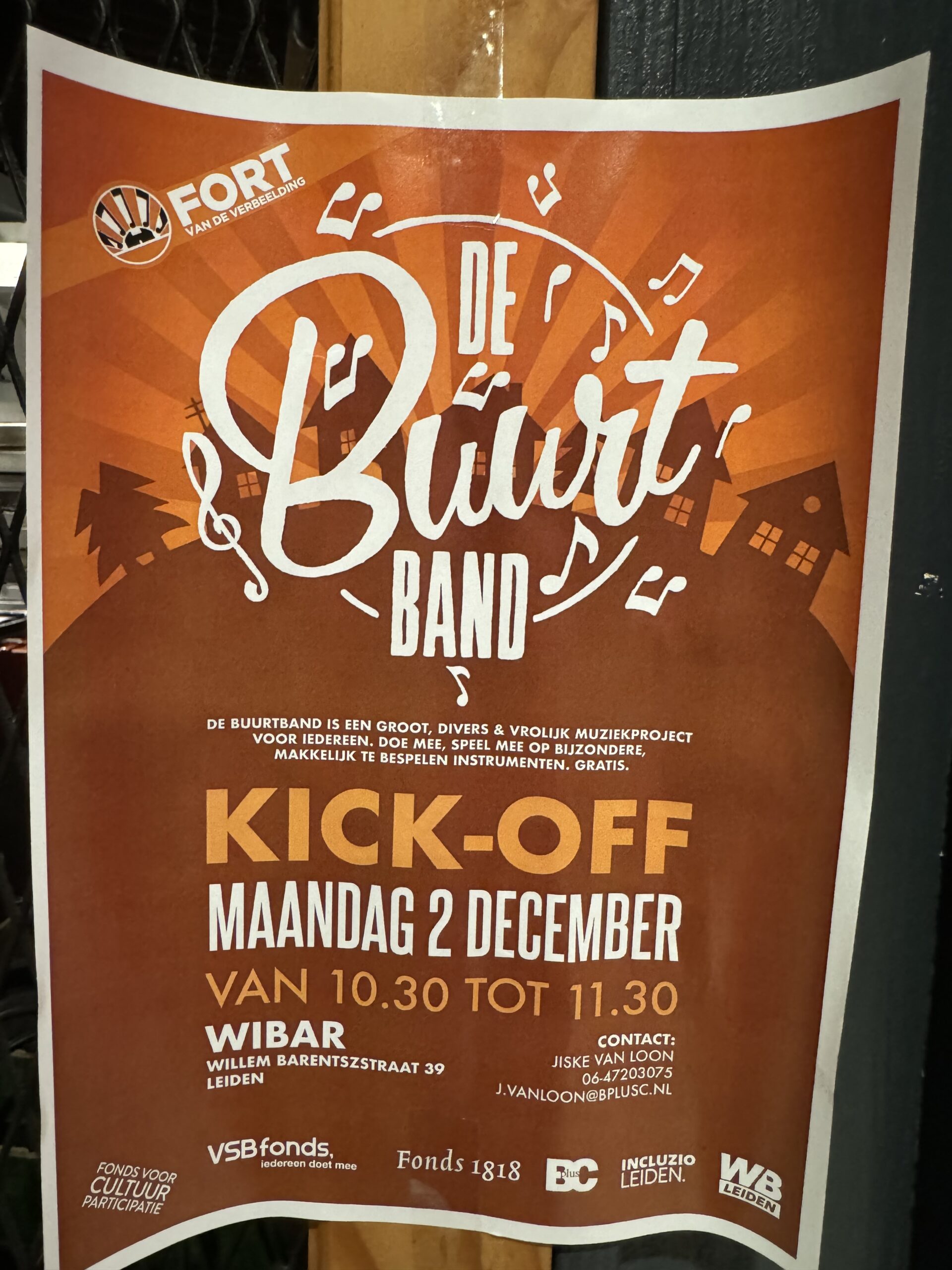 Afgelopen maandag was de kick-off van Buurtband De Waard in de Wibar. Dit project voor jong en oud is een initiatief van stichting Fort van de Verbeelding in samenwerking met BplusC, Buzz en Incluzio. Na Leiden Noord en Zuid West is dit de derde wijk in Leiden waar dit muziekproject is gestart.