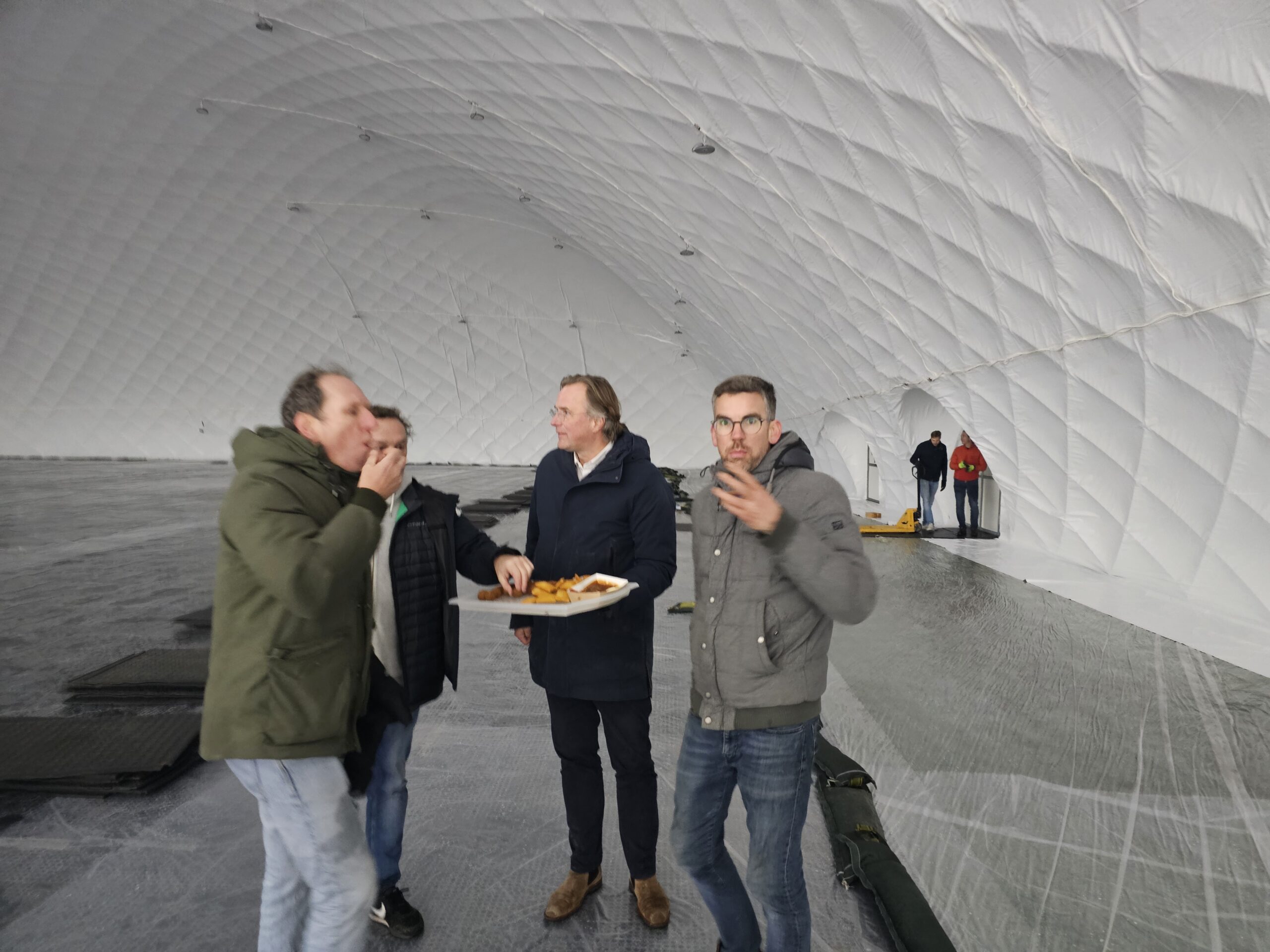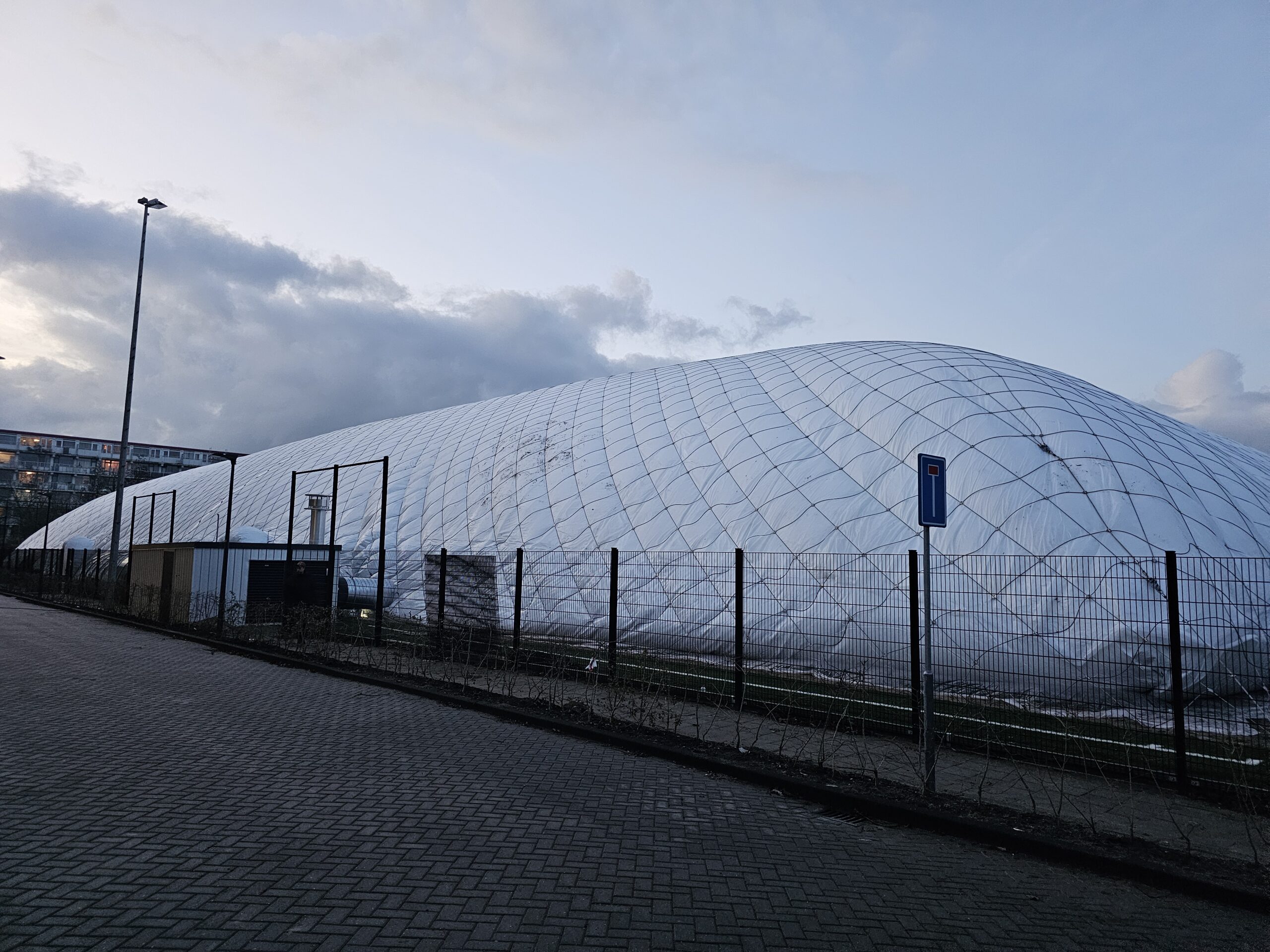Voorzitter Bas Pietersen van LHC Roomburg doet ook nog een oproep: “We zoeken nog een goede invulling voor overdag. Dus iedereen die in Leiden wil sporten; meld je en stuur een mail naar zaalhockey@roomburg.nl. Dit weekend is de hal meteen al in gebruik genomen, want de zaalcompetitie is begonnen. De hal staat er tot maart 2025 en ook de komende jaren wordt hij elke winter opgebouwd. Kokx: “Hij moet zomaar een jaar of vijftien meegaan.”